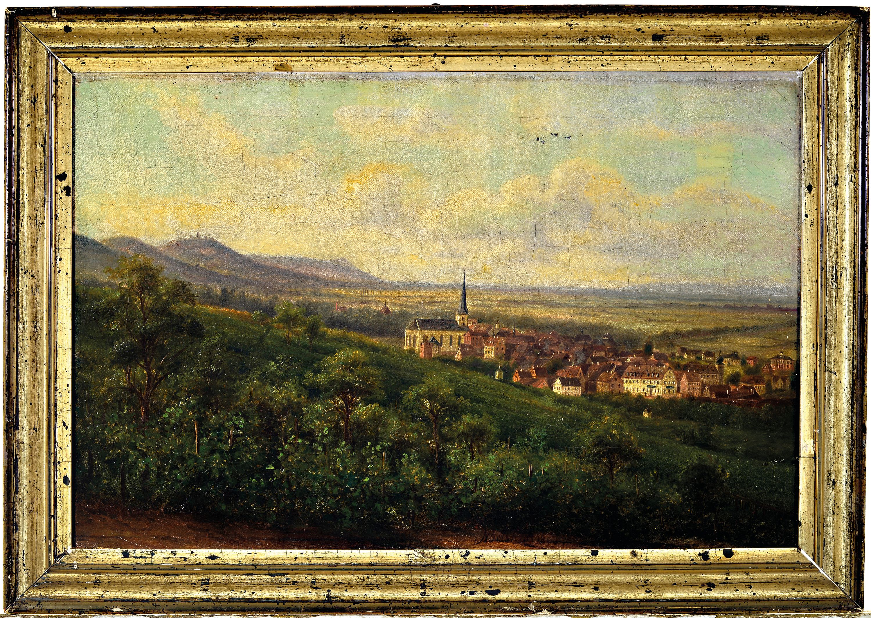 Ungedeuteter Künstler des 19.Jh., Ansicht von Bensheim, Blick über die Stadt in