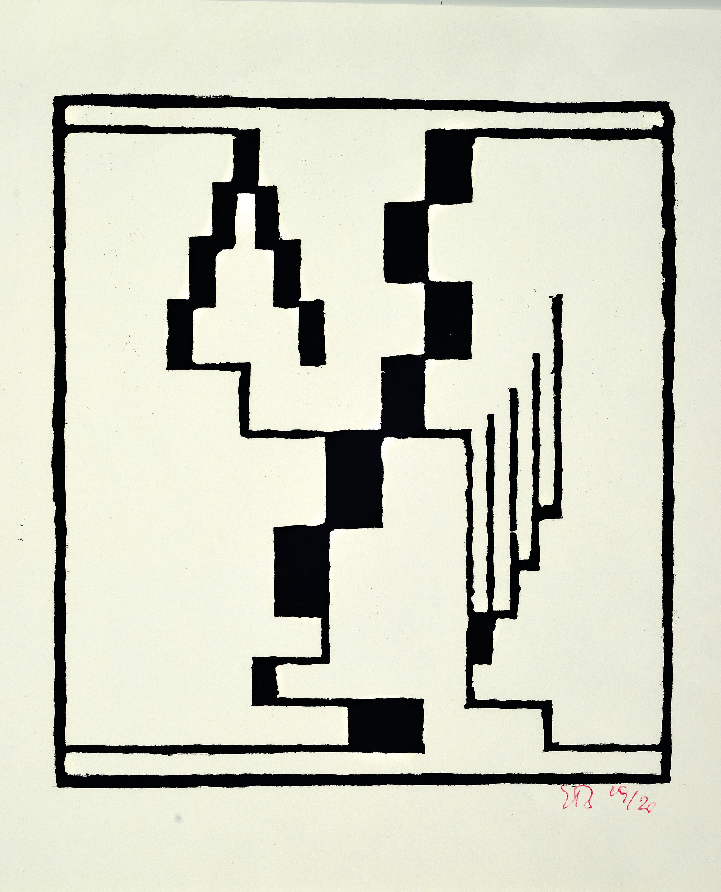 Erich Buchholz, 1891-1972, 2 Holzschnitte: Kreis mit Gegenbewegung, rückseitig mit Nachlaßstempel und Unterschrift Ella Buchholz, ca. 19.5x19cm; Steigend, monogr. und num. 19/20, ca. 28x28cm