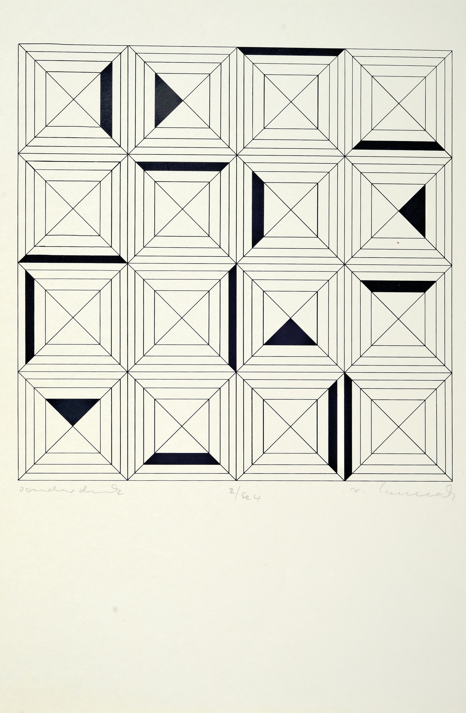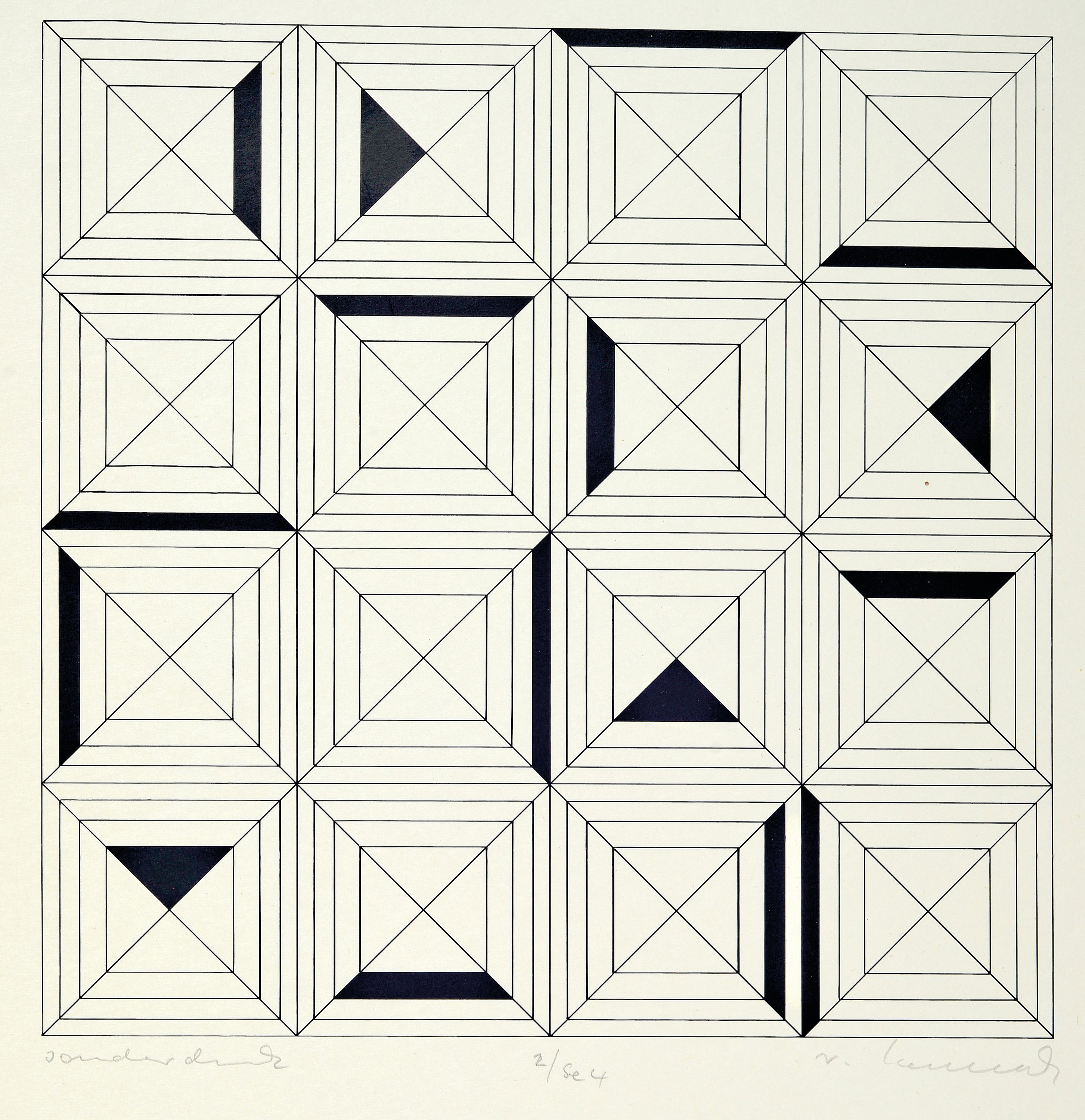 from 1968, signed, approx. 36x36cm; Series of four variations on permutation, b/w