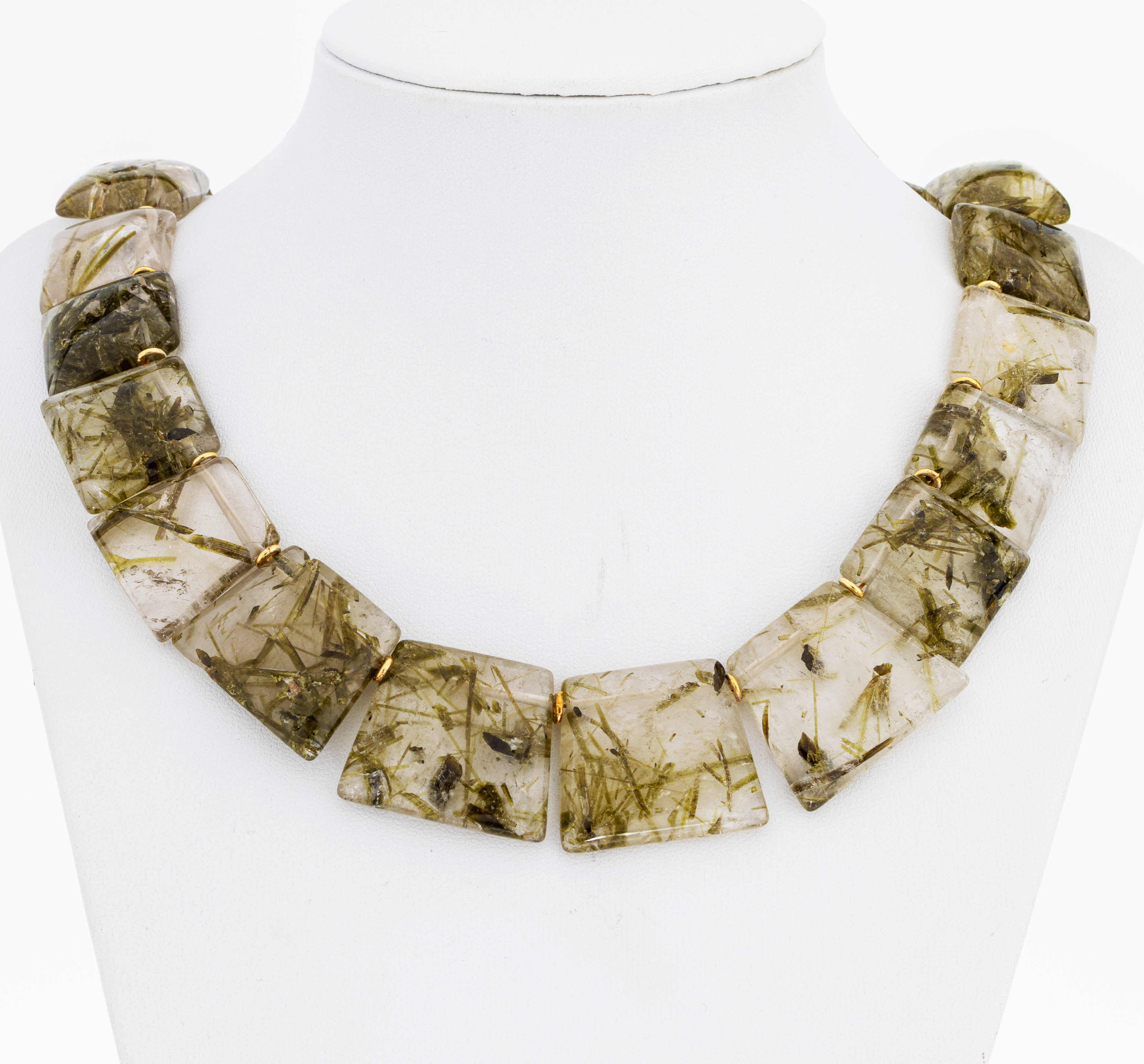 Bergkristall-Collier, im Verlauf l. muggelige Bergkristall-Glieder mit Epidot- Einschlüssen, Karabinerschließe und Zwischenglieder 925er Silber verg., L. ca. 48 cm