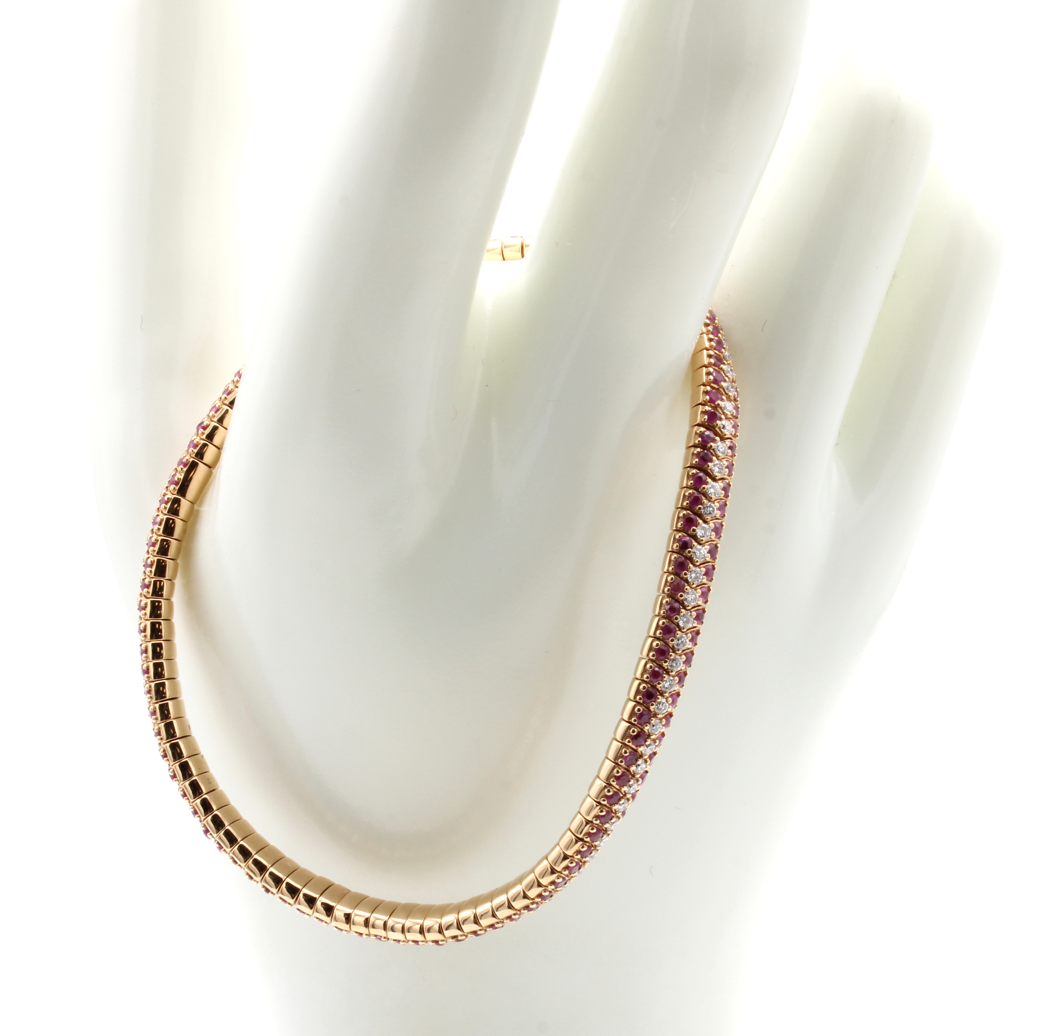 Armreif mit Rubinen und Brillanten, RG 750/ 000, l. dehnbar, 200 Rubine zus. ca. 2.6 ct und 100 Brill. zus. ca. 0.95 ct feines Weiß/ vs, D. ca. 6.5 cm Schätzpreis: 16500, - EUR