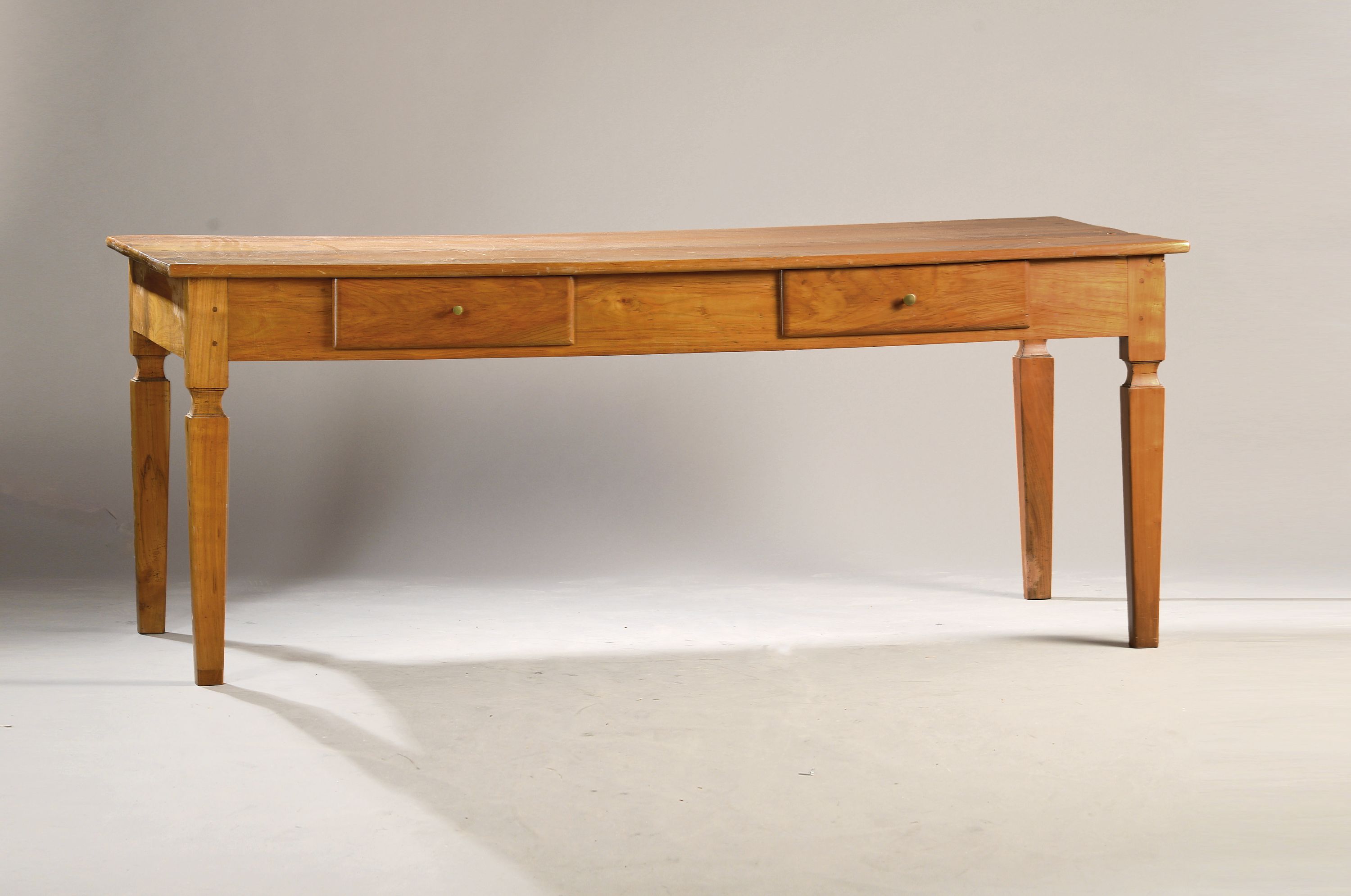 Großer Biedermeier Tisch, um 1830/40, Kirschbaum, auf jeder Seite jeweils 2 Schubladen,