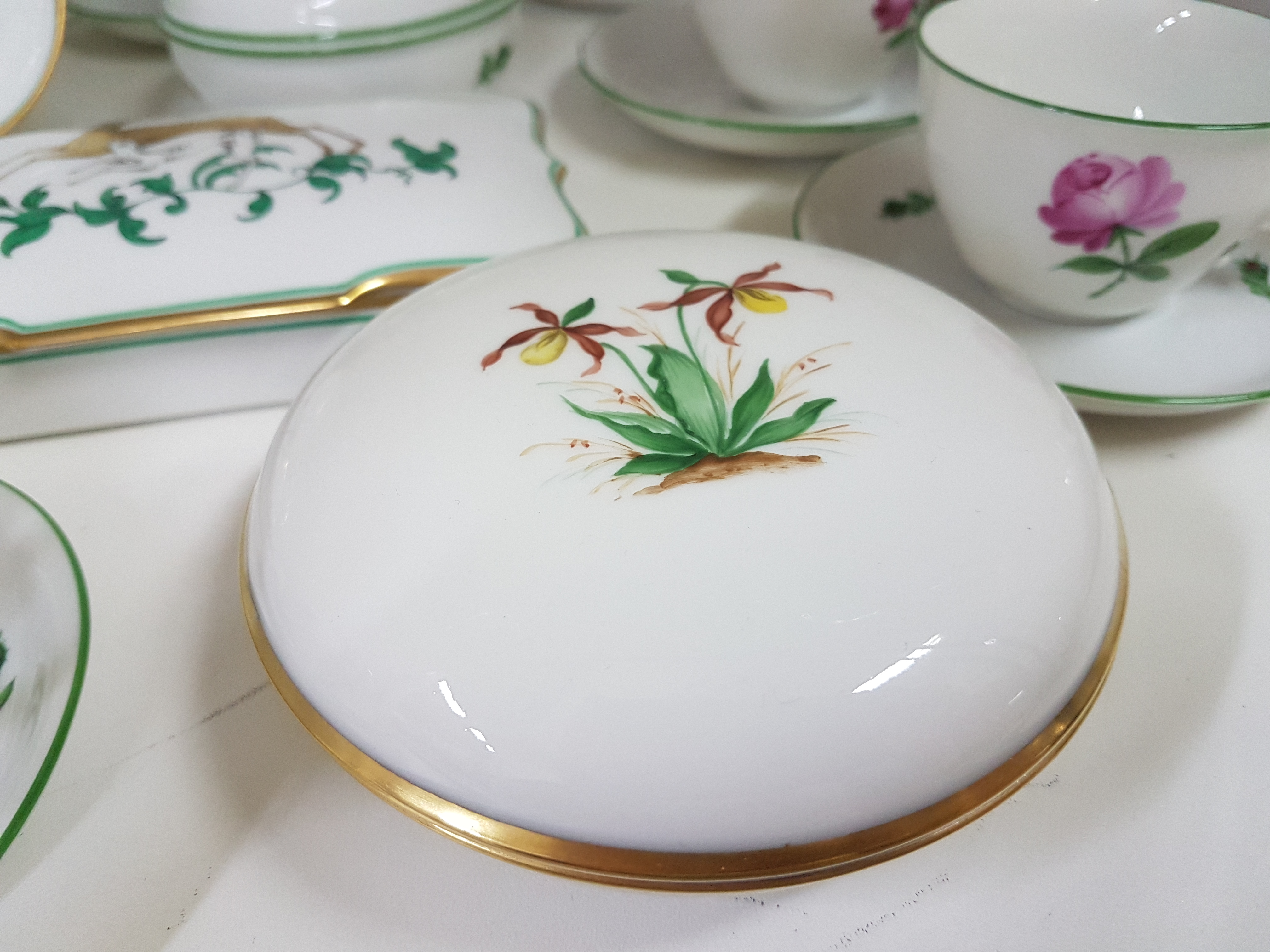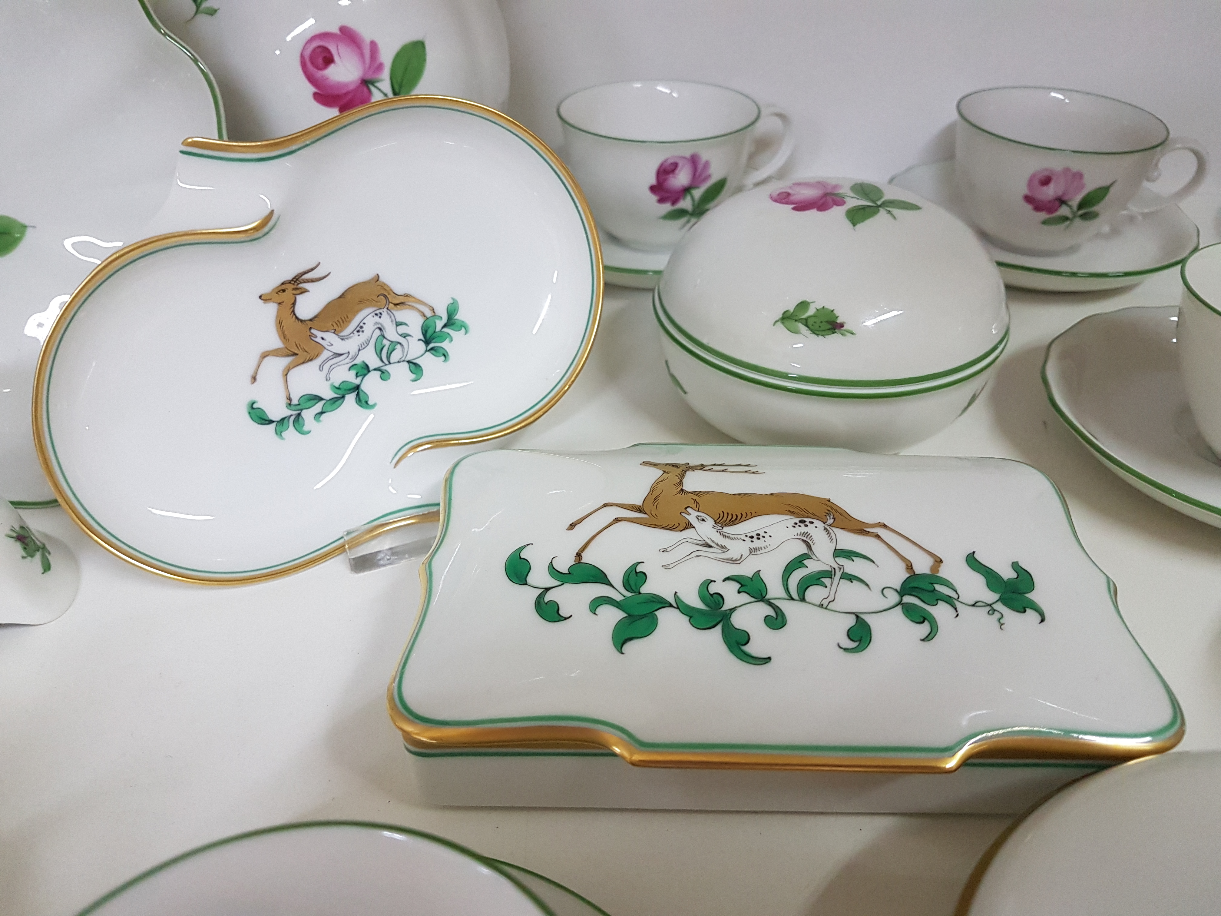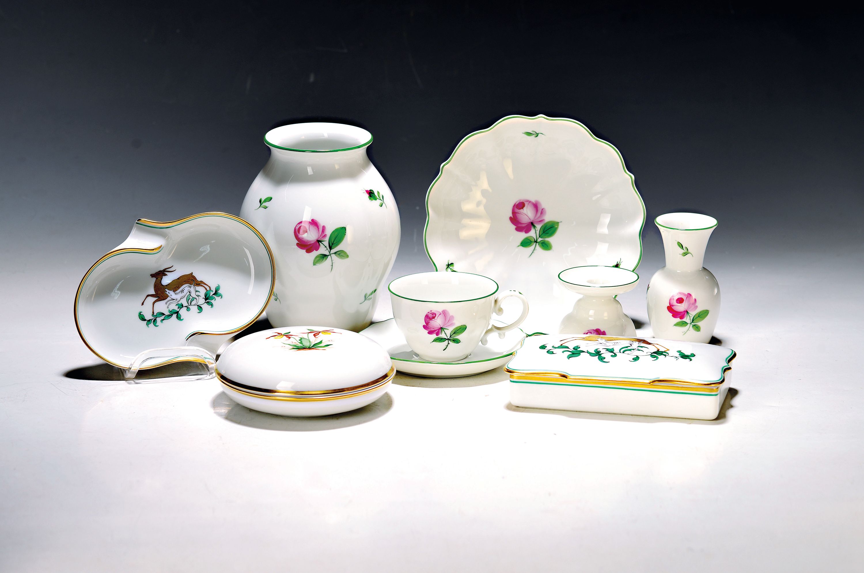 Umfangreiches Geschirrlot, Wien, Augarten, u.a. rote Rose: zwei Vasen, Deckeldose,