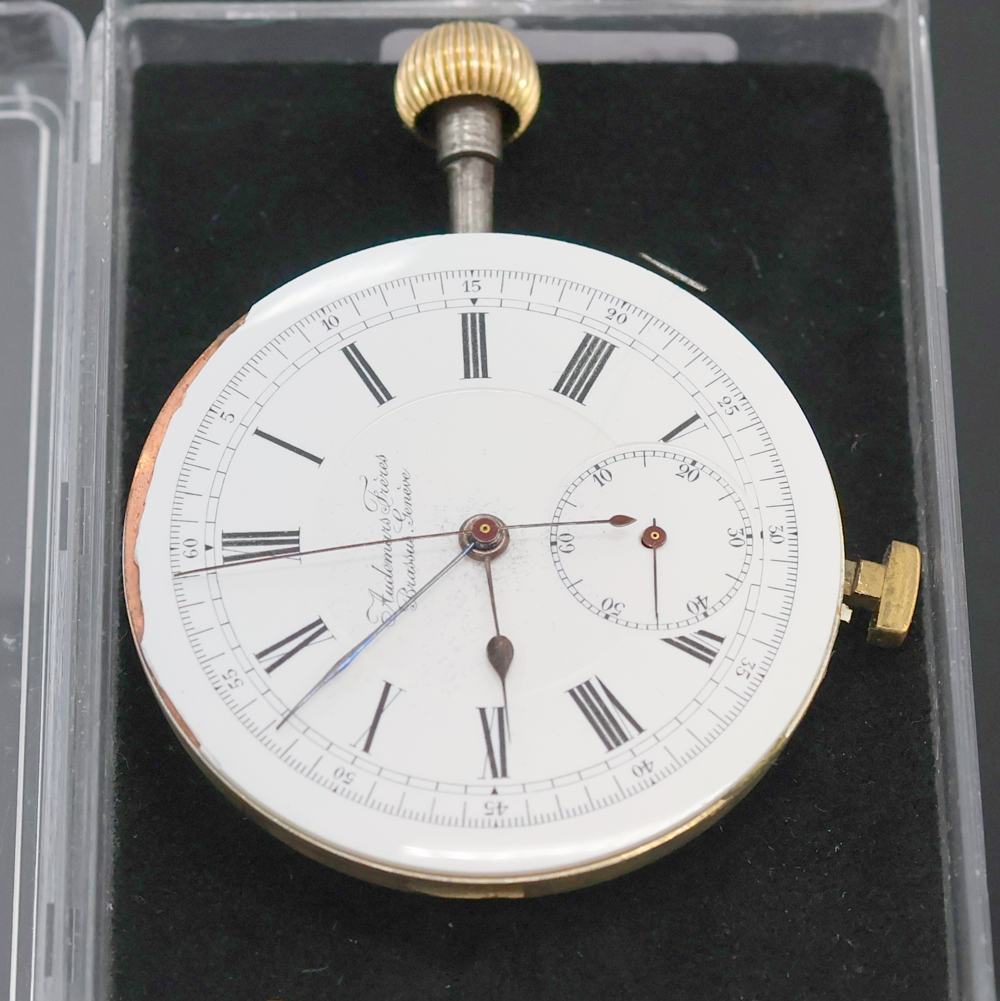 Taschenuhrwerk mit Repetition und Schaltradchronograph, Schweiz um 1900, verg. Ankerwerk,
