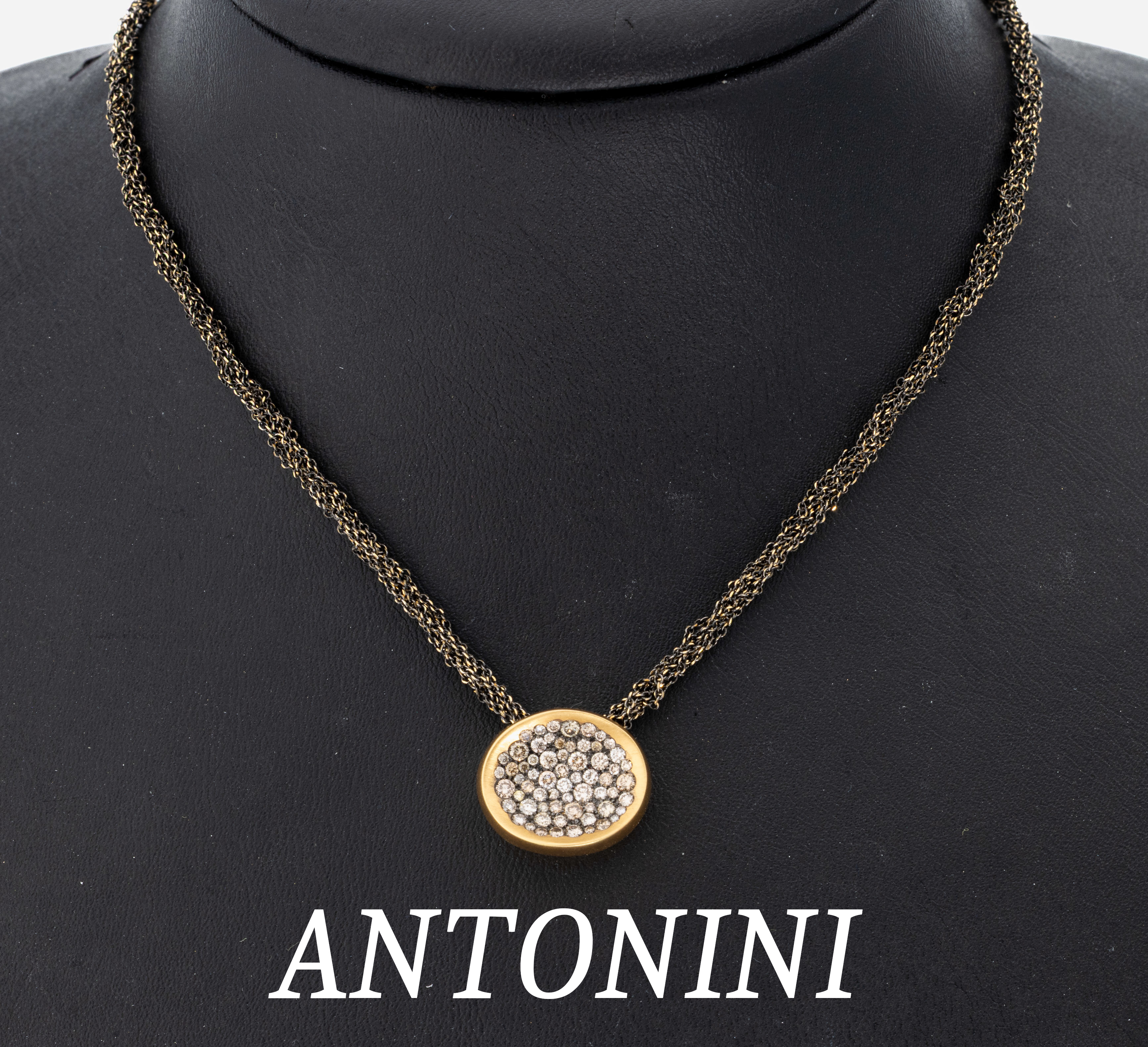 18 kt Gold ANTONINI MATERA Brillant-Collier, GG 750/000, ovales Mittelteil mit Brillanten