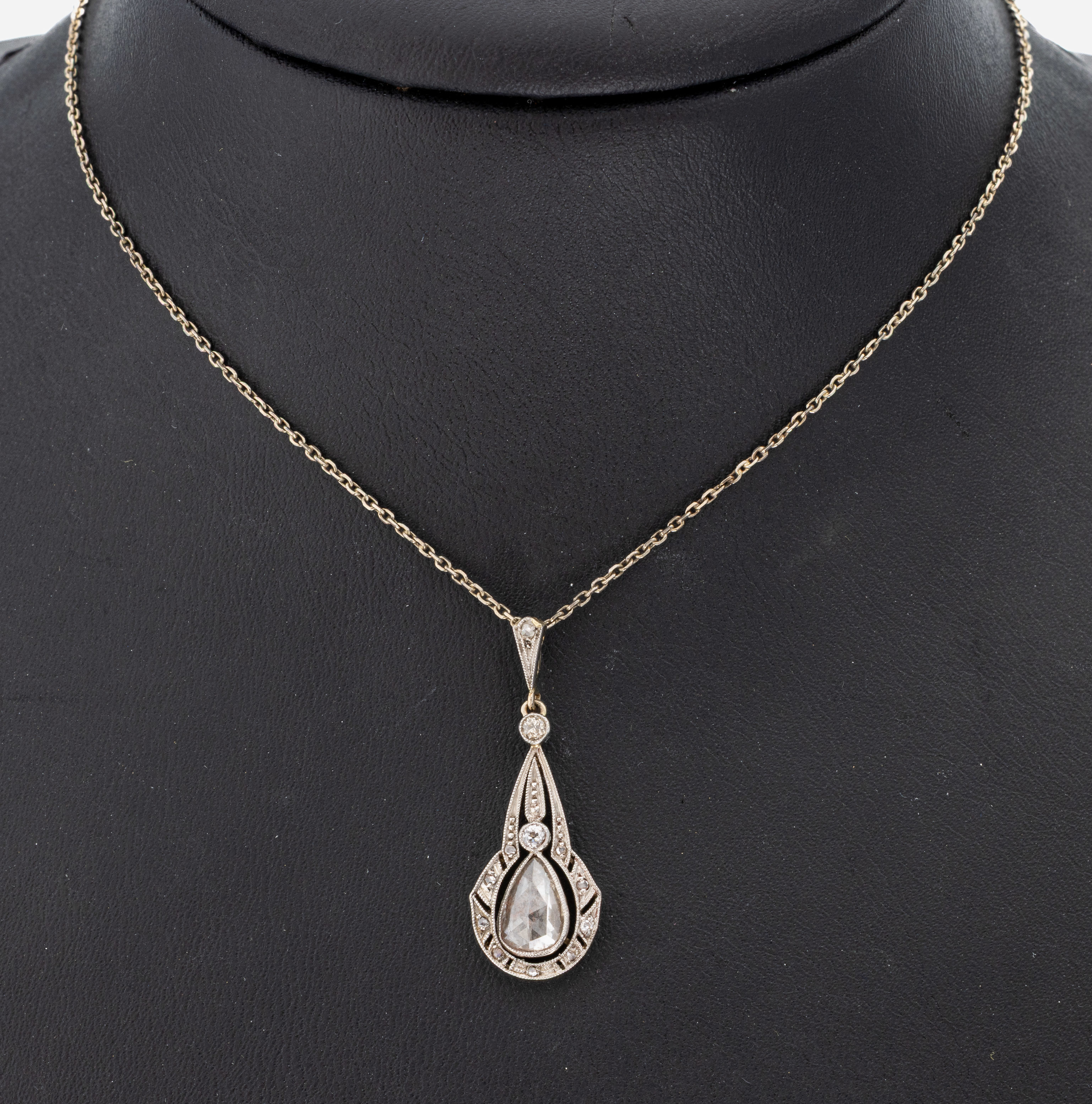 ca. 0.15 ct Weiß-l.get.Weiß/p, L. ca. 3.2 cm, an Kette, WG 585/000, L. ca. 40.5