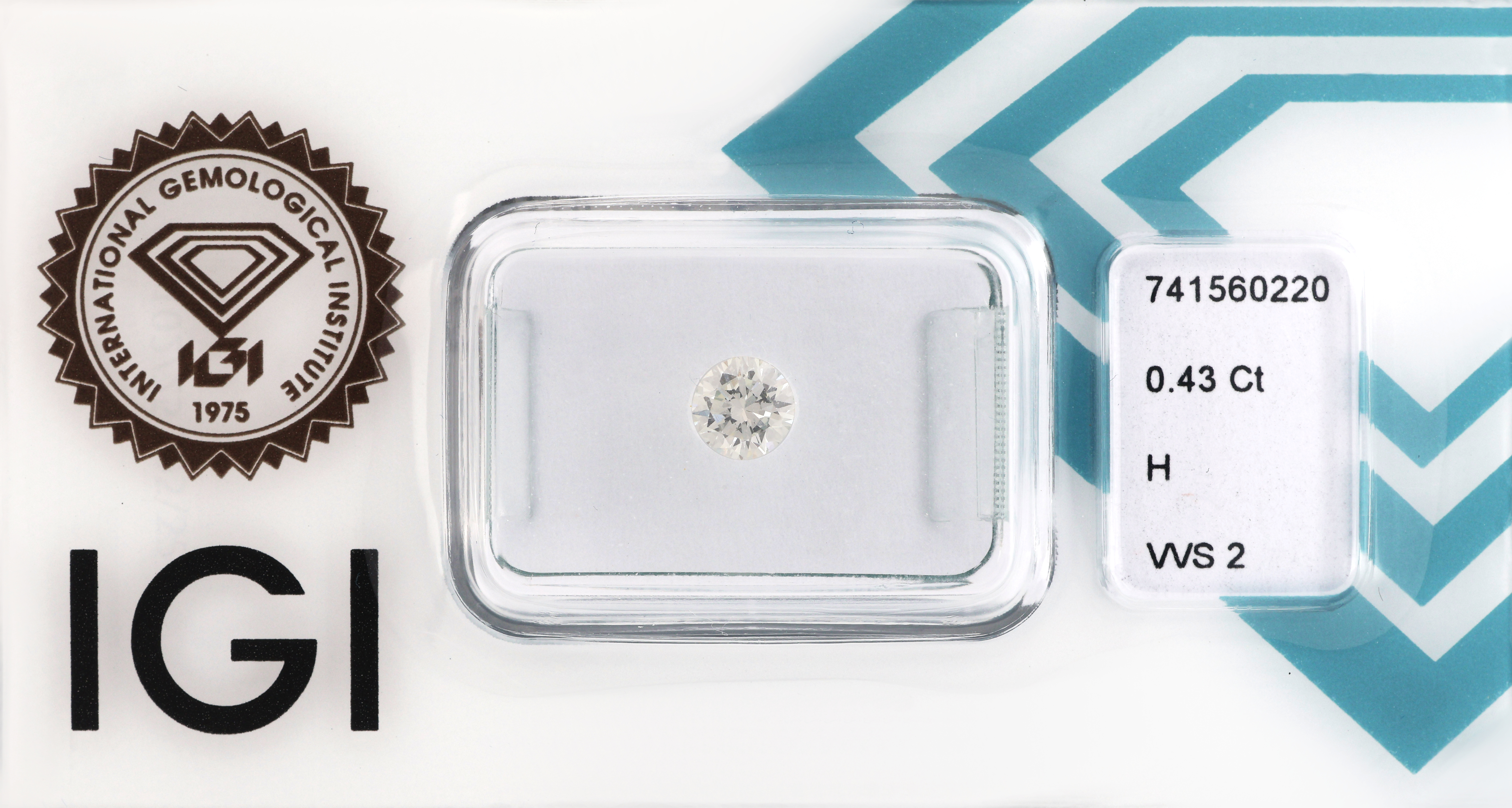 Loser Brillant, 0.43 ct Weiß(H)/vvs2, eingeschweißt, IGI-Expertise Schätzpreis: 1650, - EUR