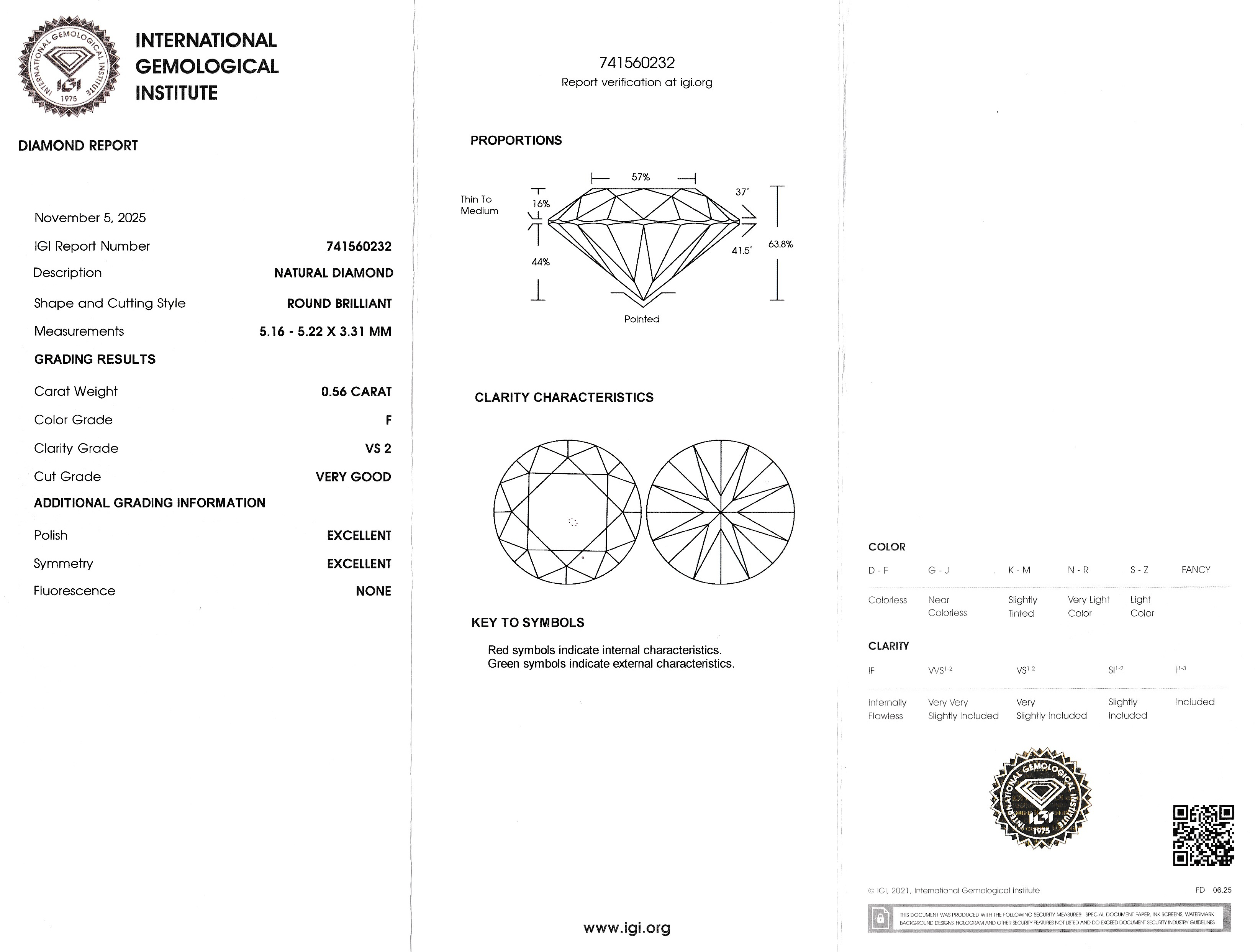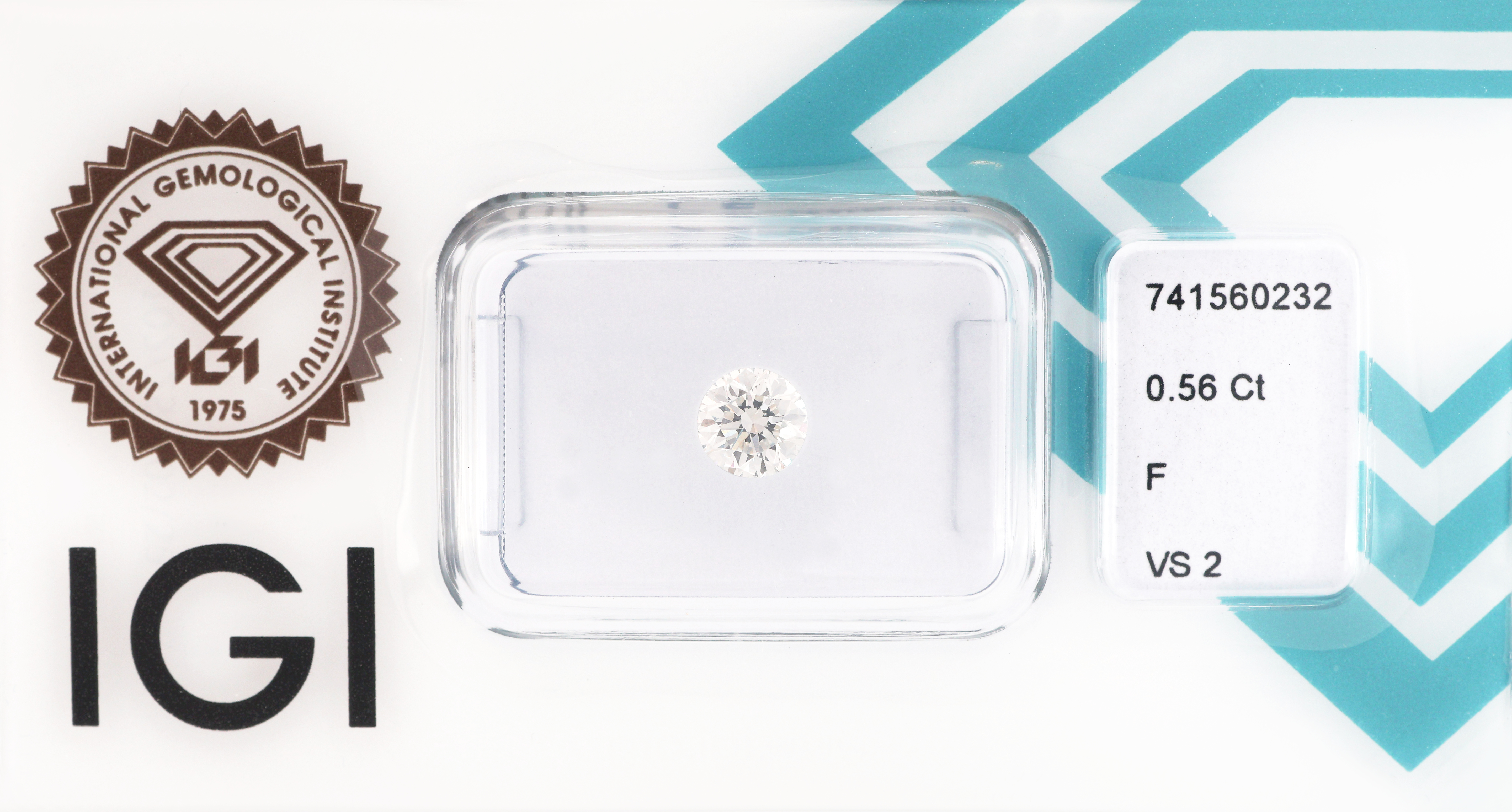 Loser Brillant, 0.56 ct feines Weiß+(F)/vs2, eingeschweißt, IGI-Expertise Schätzpreis: 2300, - EUR
