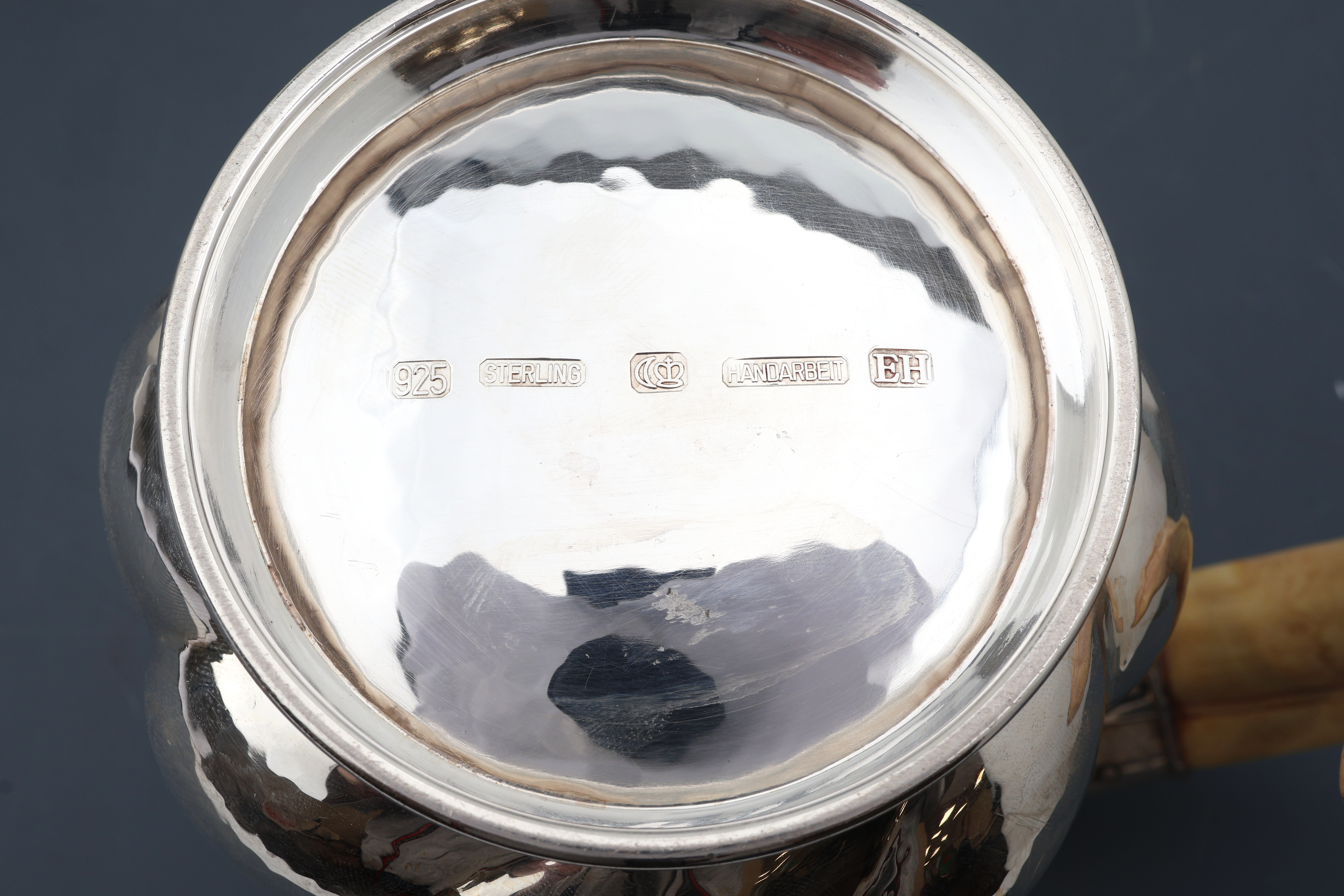 balusterförmiger Korpus, innen feuervergoldet,Hammerschlagdekor, Griff Warzenschweinhauer,