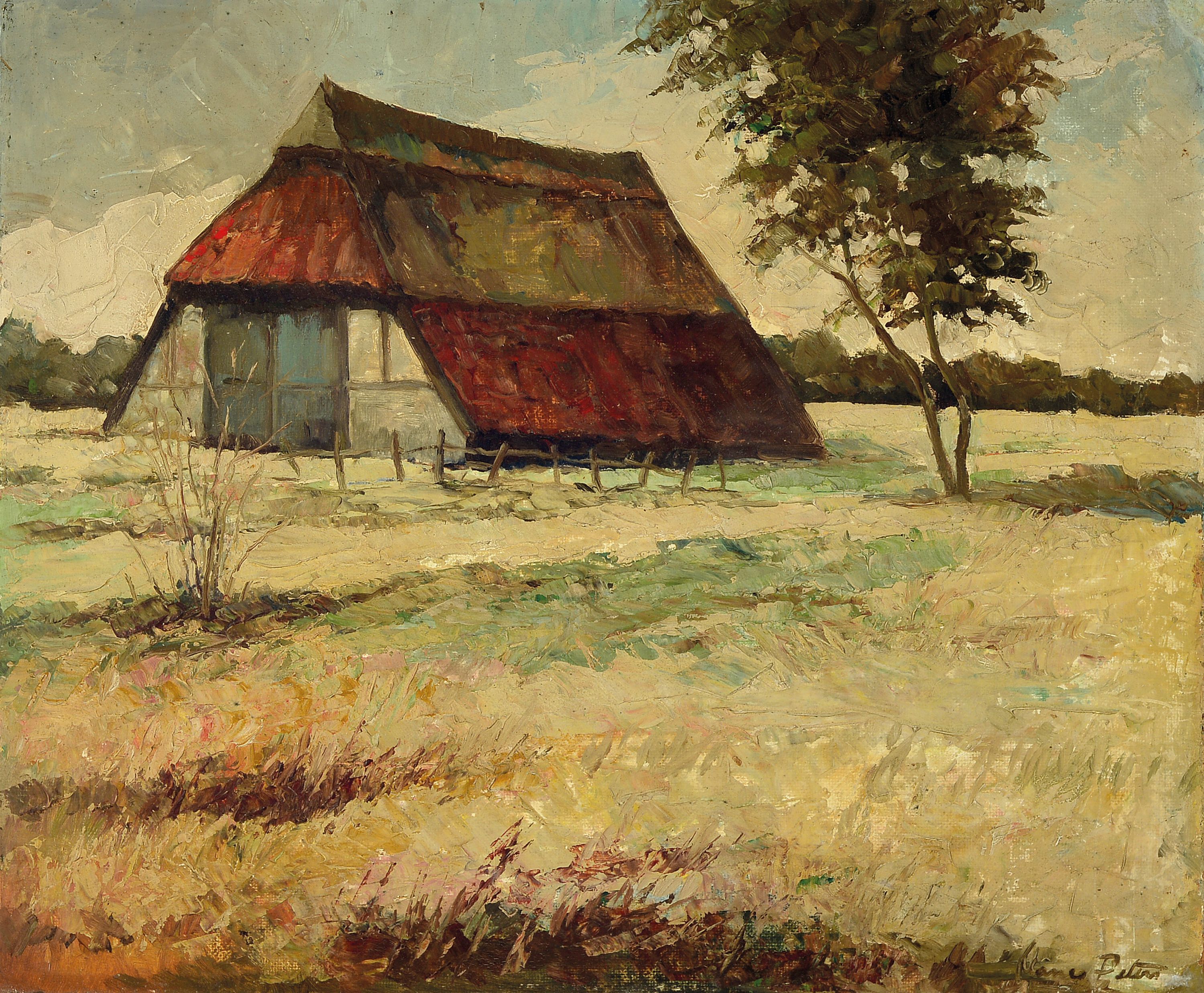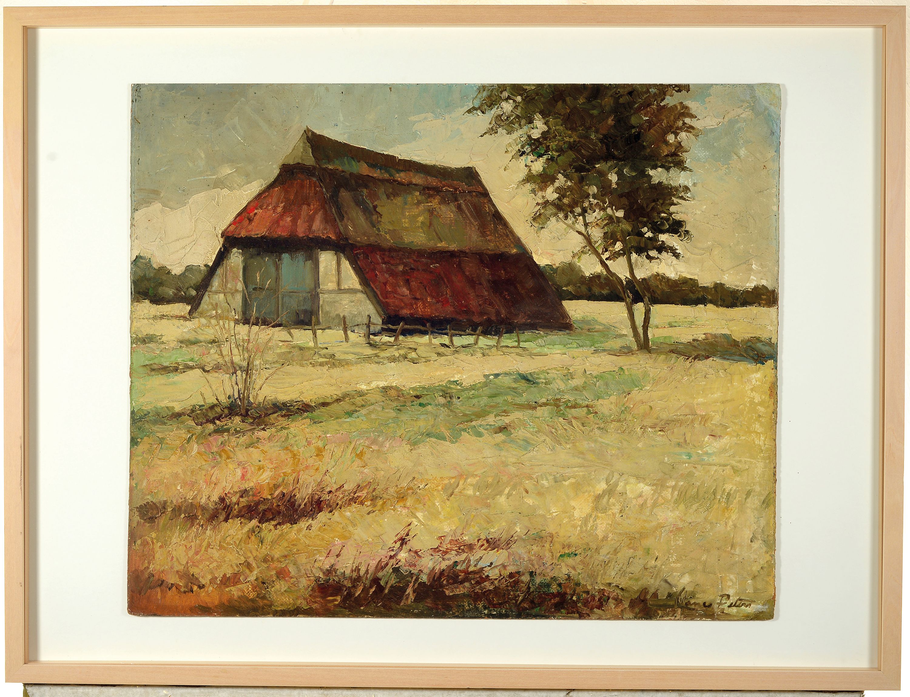 Manes Peters, 1906-1980, Norddeutsches Bauernhaus, Öl/Malkarton, rechts unten sign.,