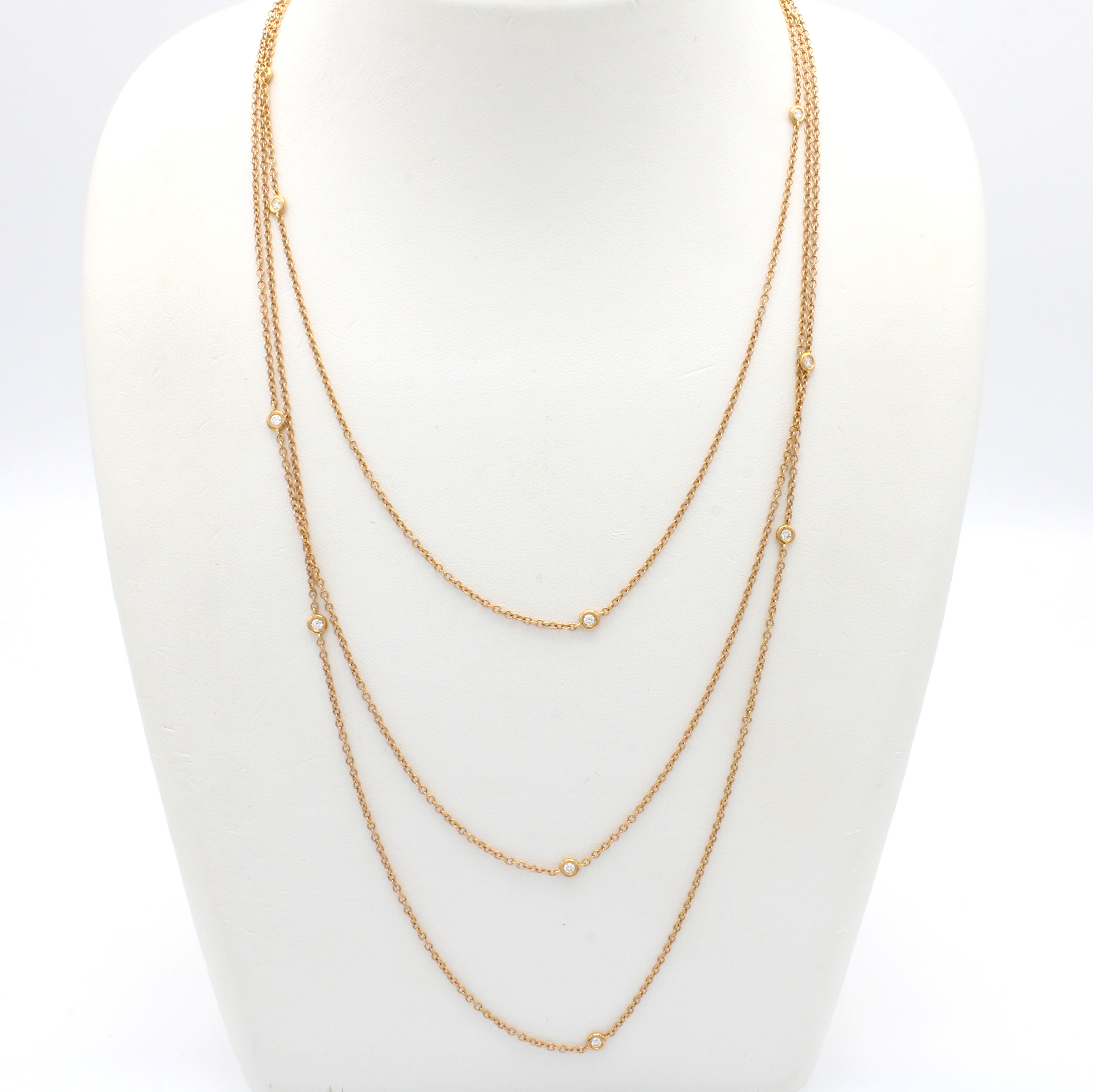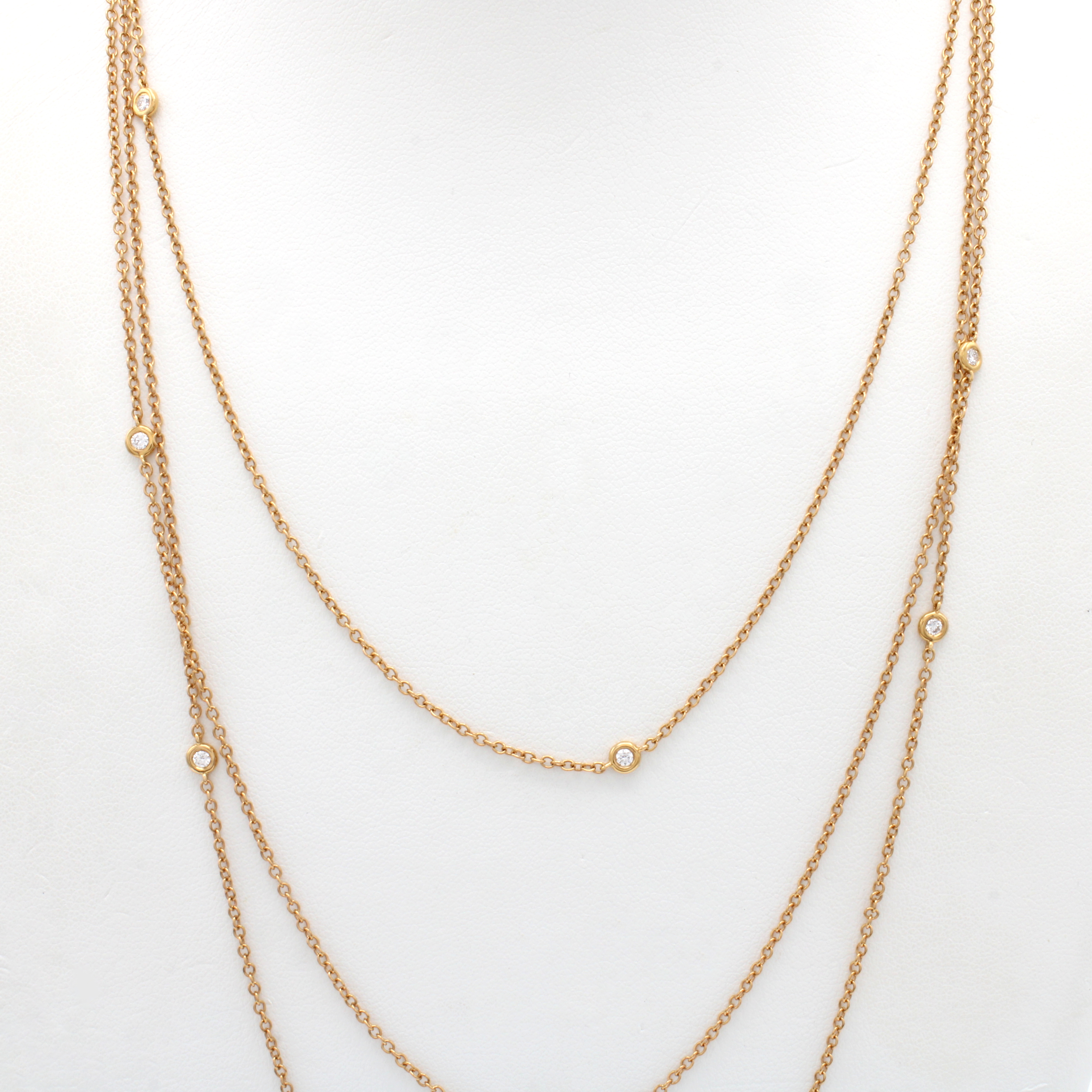 3-reihiges Collier mit Brillanten, RG 750/ 000, 15 Brill. zus. ca. 0.45 ct Weiß/si, L. 50, 60 u. 68 cm Schätzpreis: 4650, - EUR