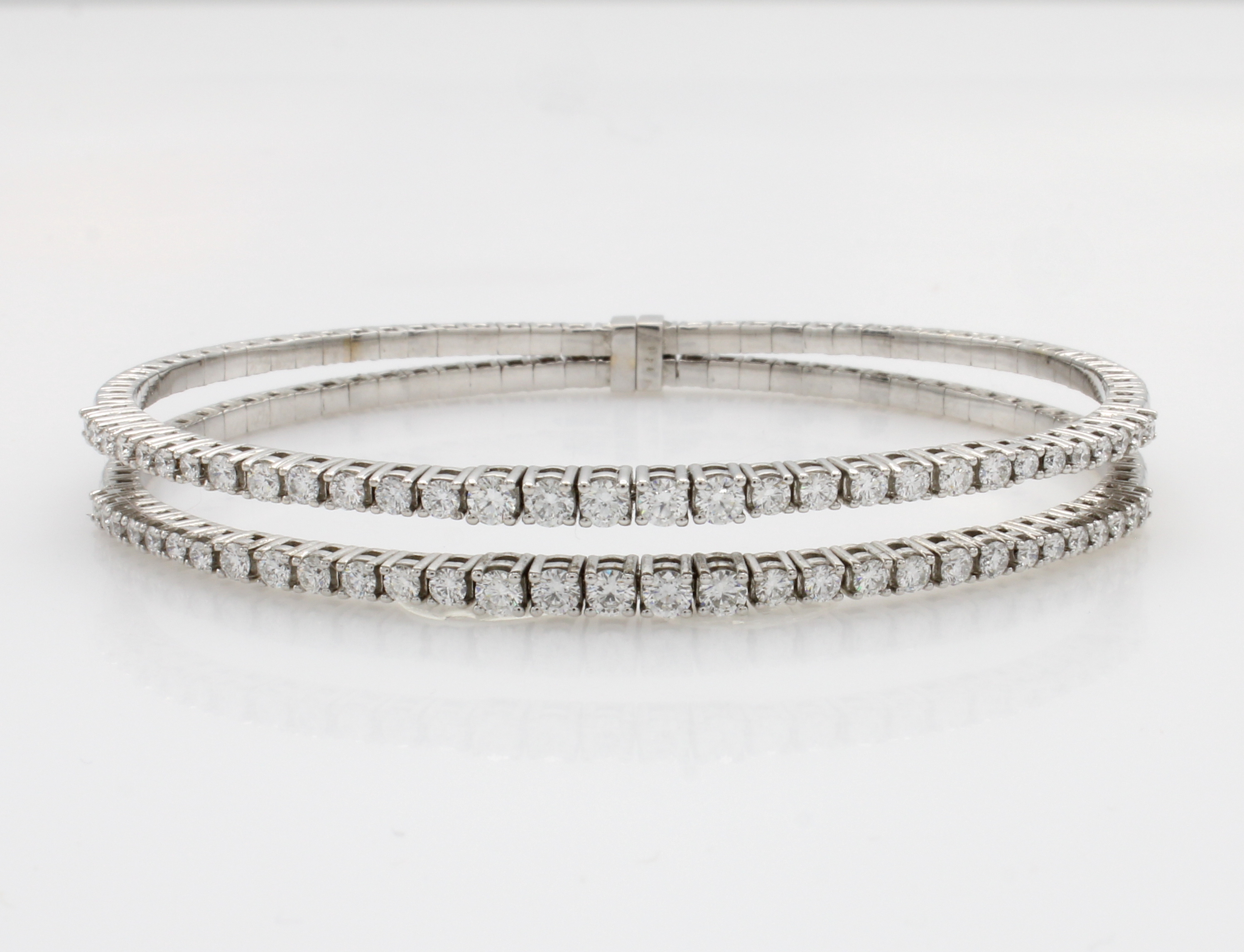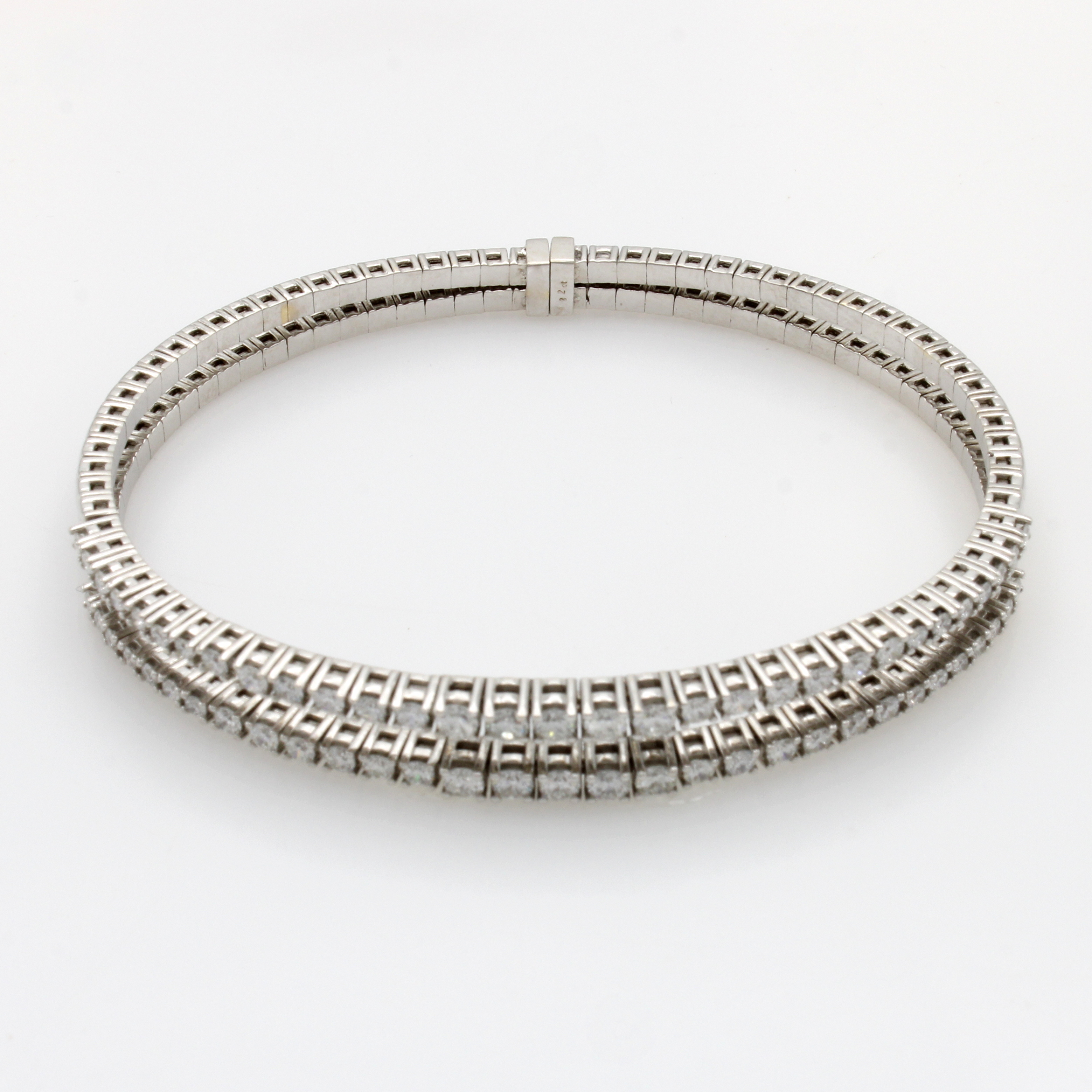 2-reihiger Armreif mit Brillanten, WG 750/ 000, 62 Brill. zus. ca. 1.90 ct Weiß/si, mit flexibler Steckschließe