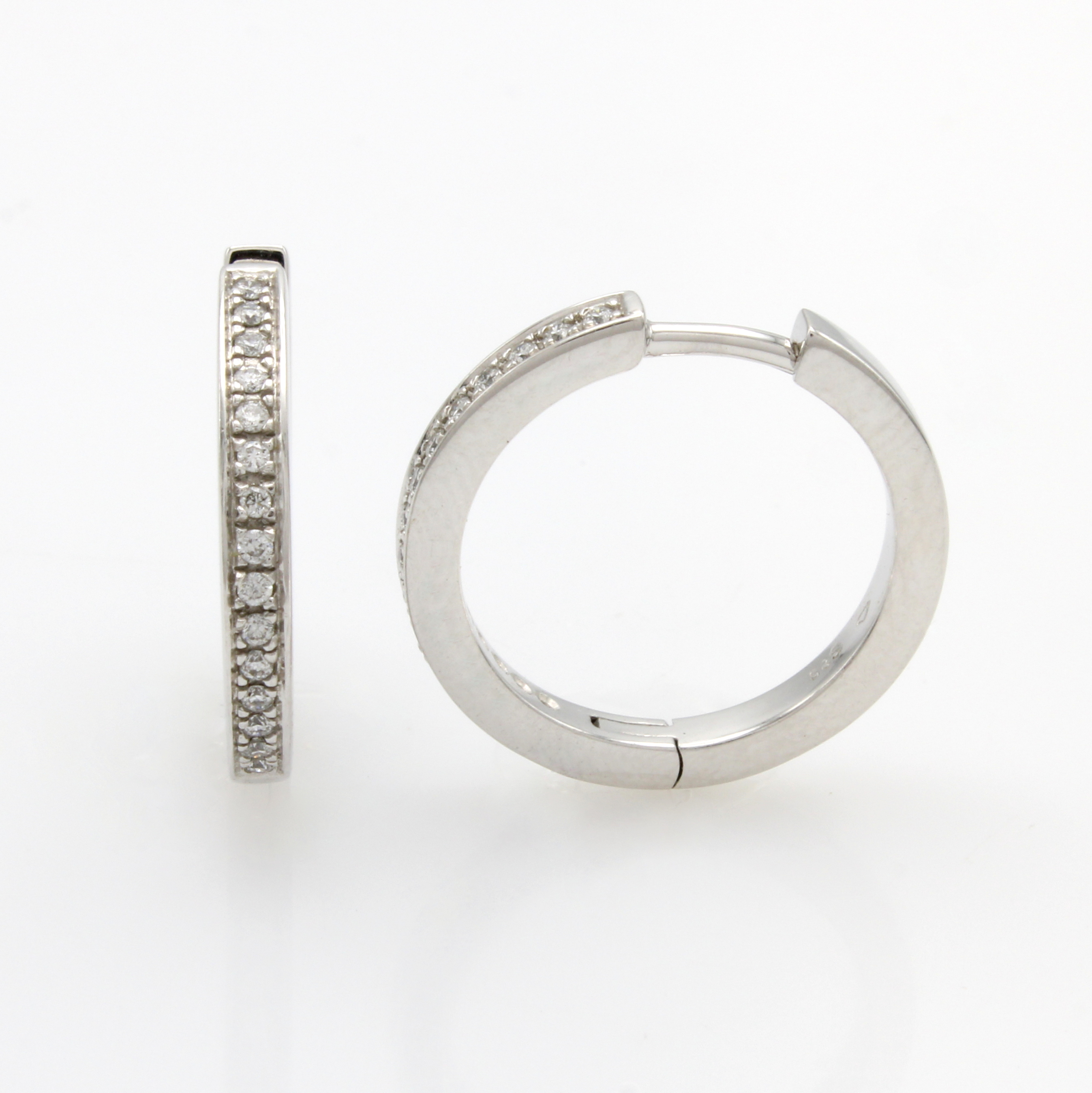 Paar Creolen mit Brillanten, WG 585/000, Brill. zus. ca. 0.10 ct Weiß/si