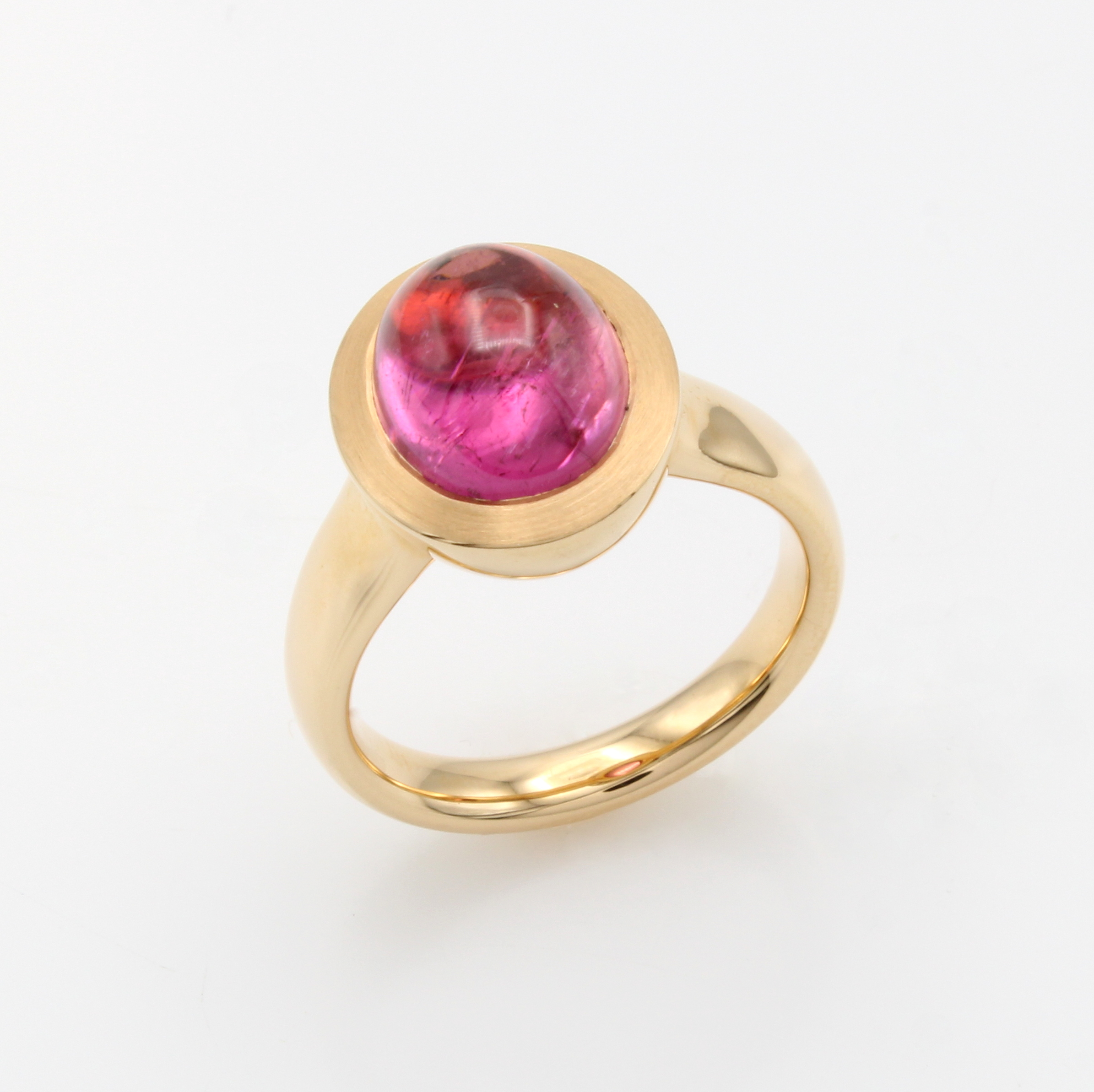 Massiver Ring mit Rubellit, RG 750/000, ovaler Rubellitcabochon ca. 5.10 ct, RW ca. 54