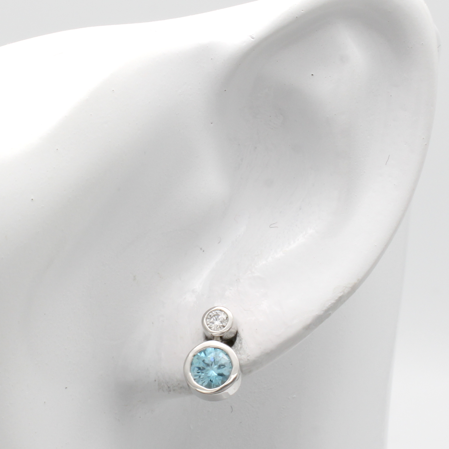 Paar Ohrstecker mit Zirkonen und Brillanten, WG 750/000, 2 Zirkone zus. ca. 1.36 ct, Brill. zus. ca. 0.14 ct Weiß/si Schätzpreis: 2170, - EUR