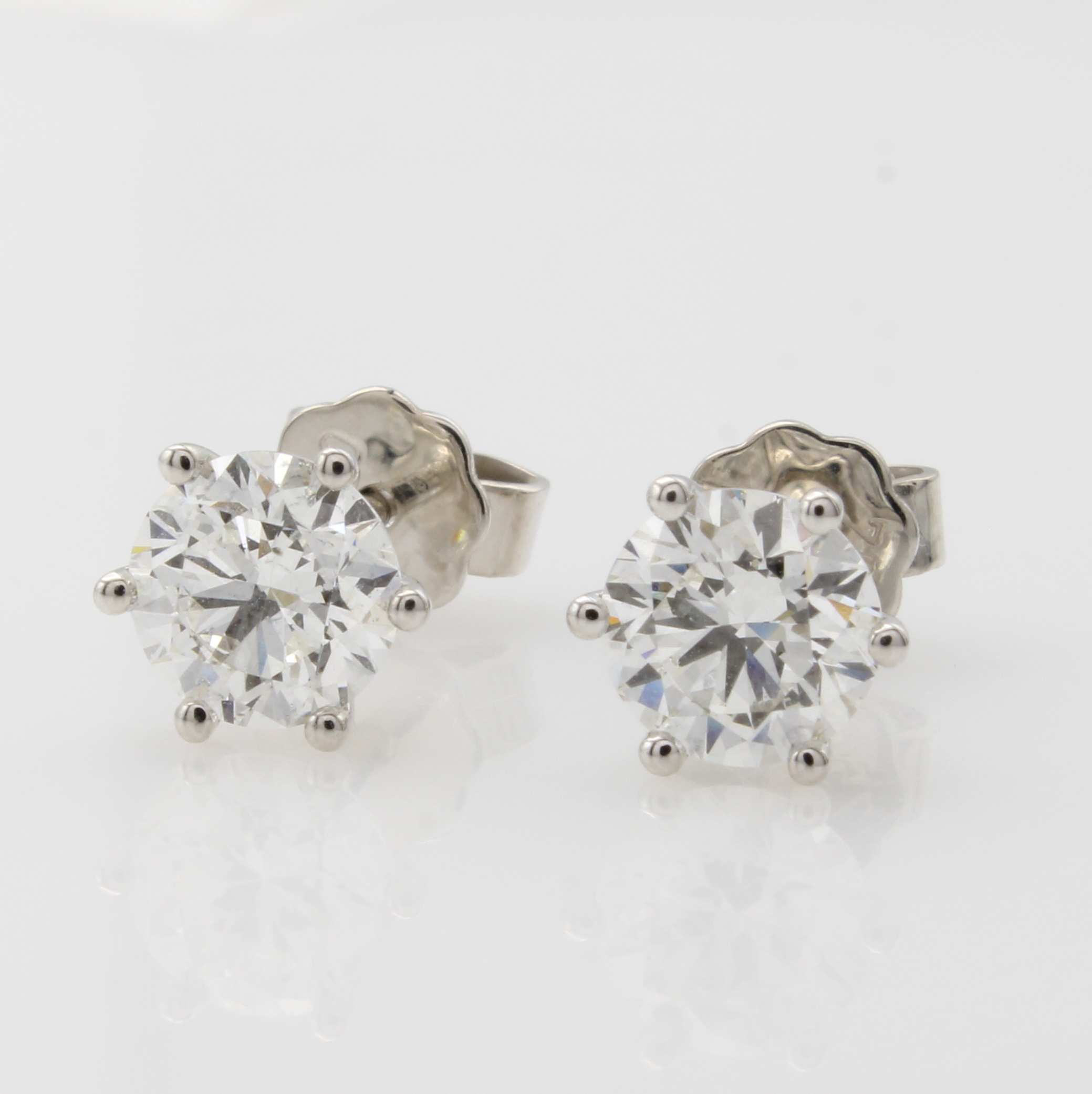 Paar Ohrstecker mit Brillanten, WG 750/000, 2 Brill. zus. 2.03 ct feines Weiß/si mit Ex- pertise Schätzpreis: 17000, - EUR