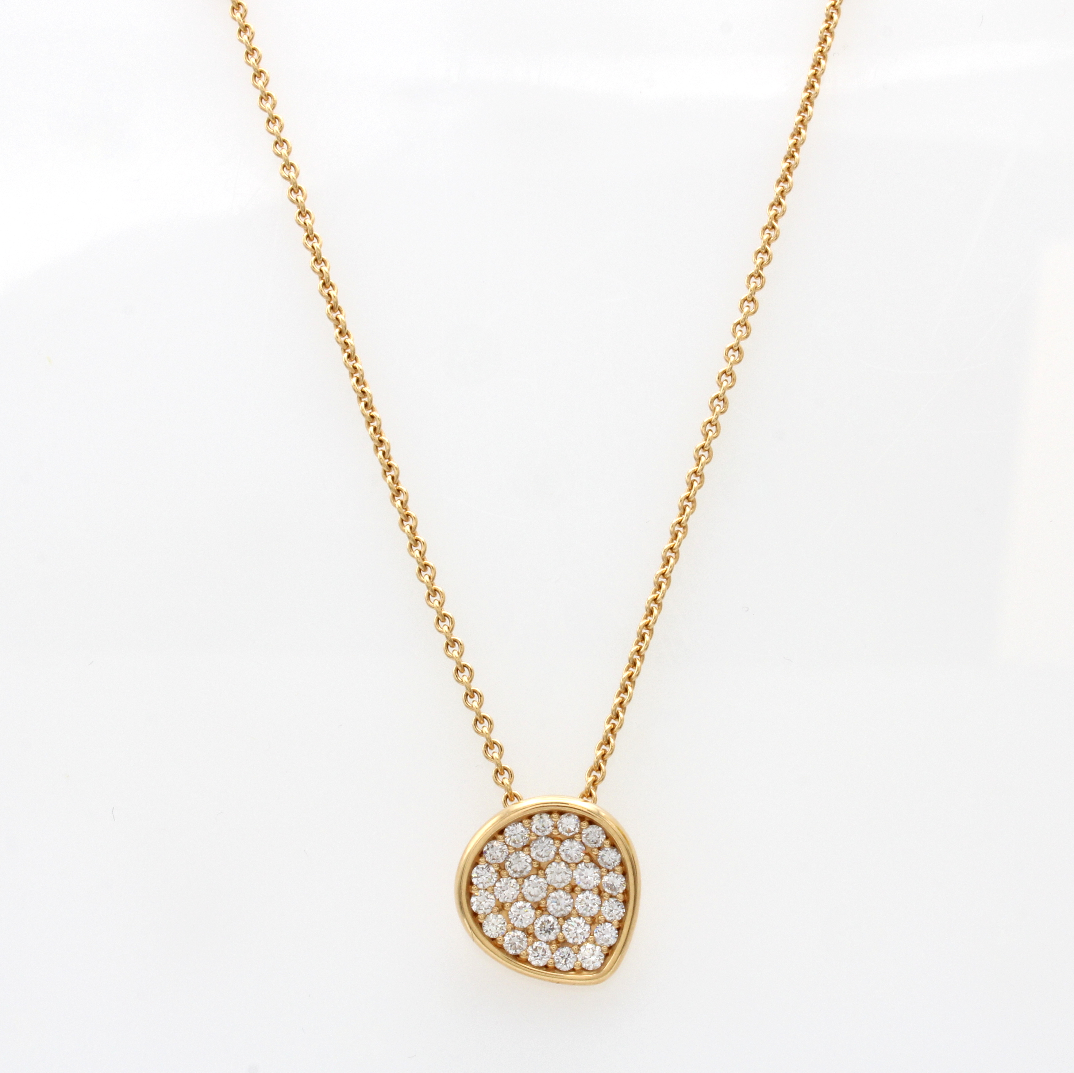 Tropfenförmiger Anhänger mit Brillanten, RG 750/000, Brill. zus. ca. 0.70 ct Weiß/si, L. ca. 42 u. 45 cm Schätzpreis: 3850, - EUR