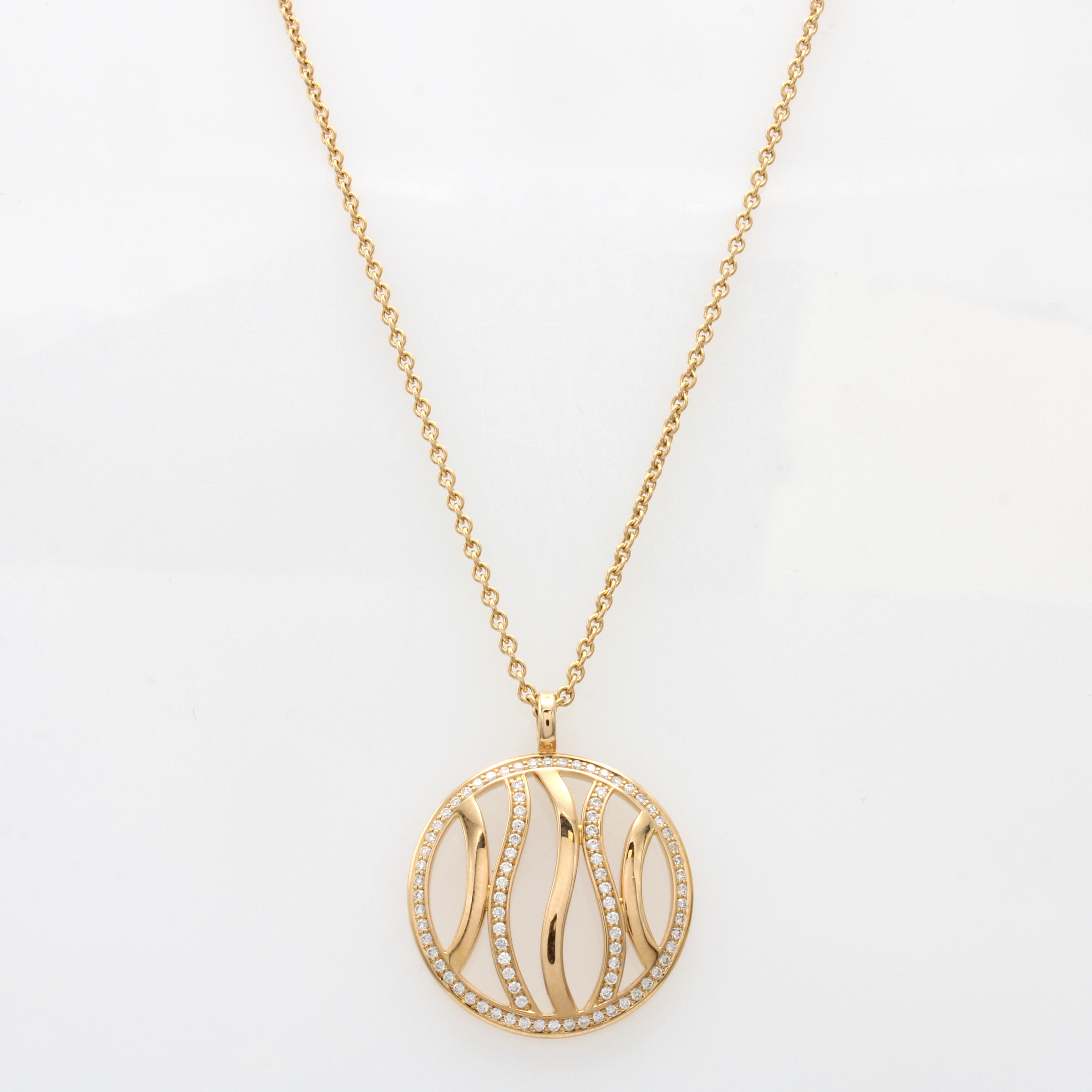 Runder Anhänger mit Brillanten an Kette, RG 750/000, Brill. zus. ca. 0.36 ct Weiß/si, L. ca. 42 cm Schätzpreis: 4000, - EUR