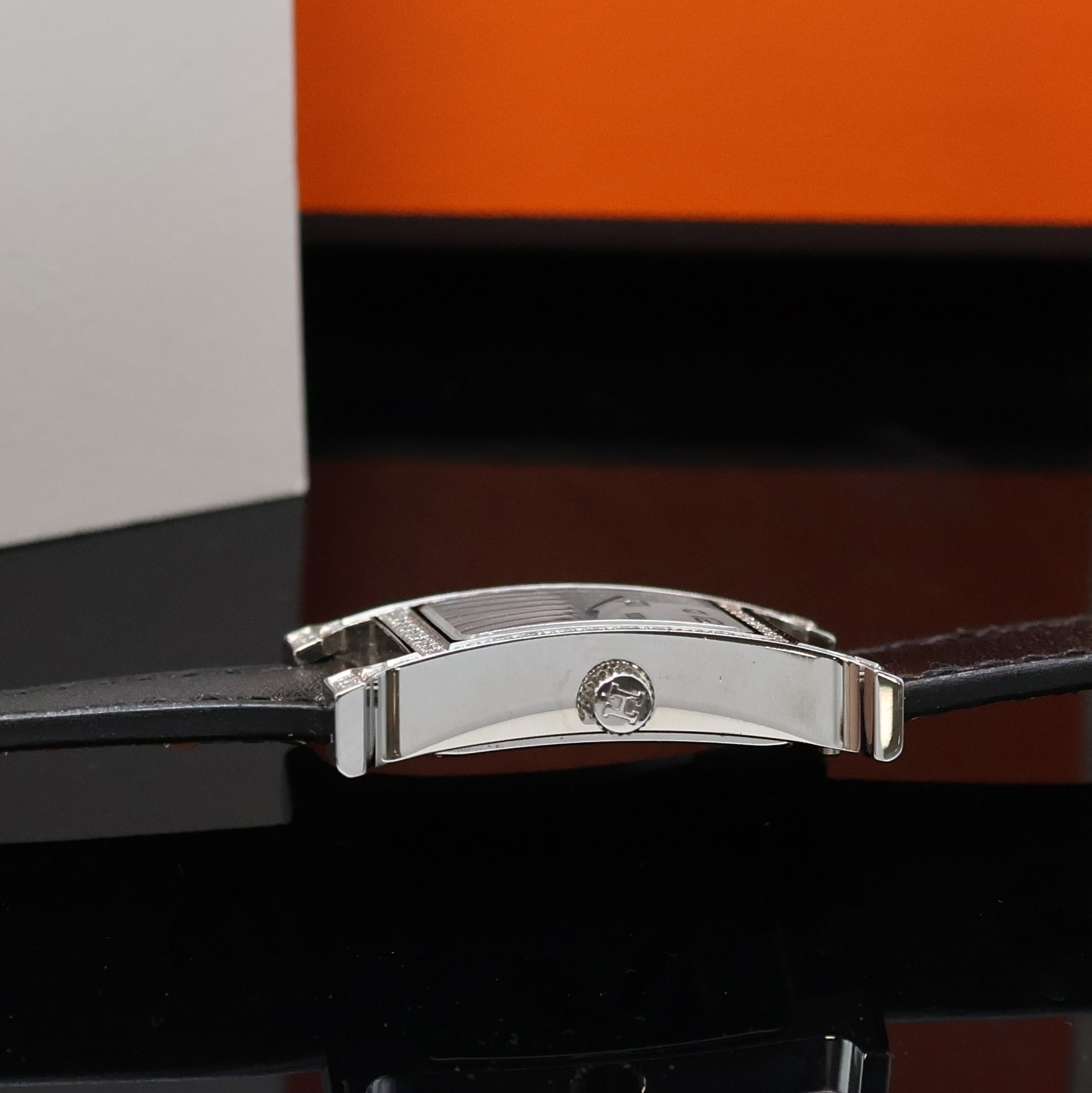 HERMES Heure H diamantbesetzte Armbanduhr in Stahl Referenz HH1.230, quarz, orig.