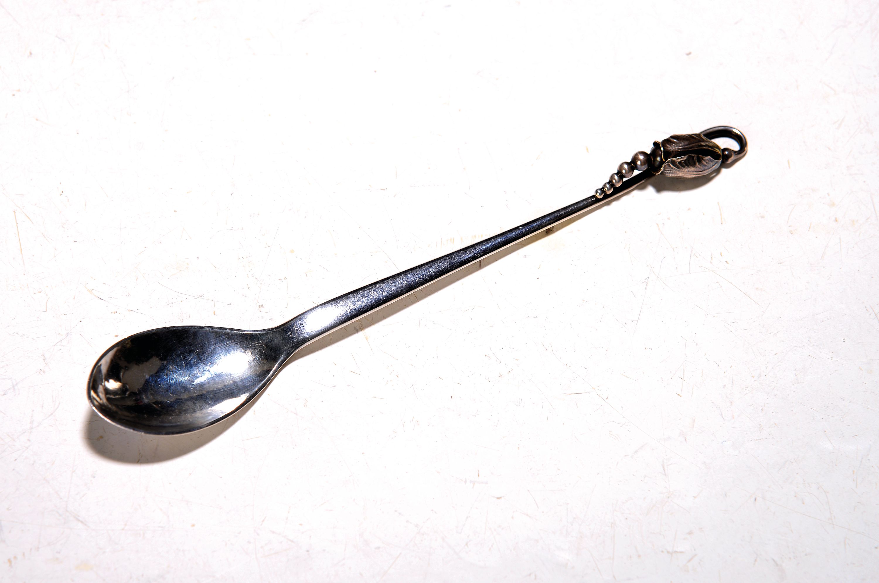 Zierlöffel aus Silber, Georg Jensen, Dänemark, nach 1945, 925er-Silber, Hammerschlagdekor,