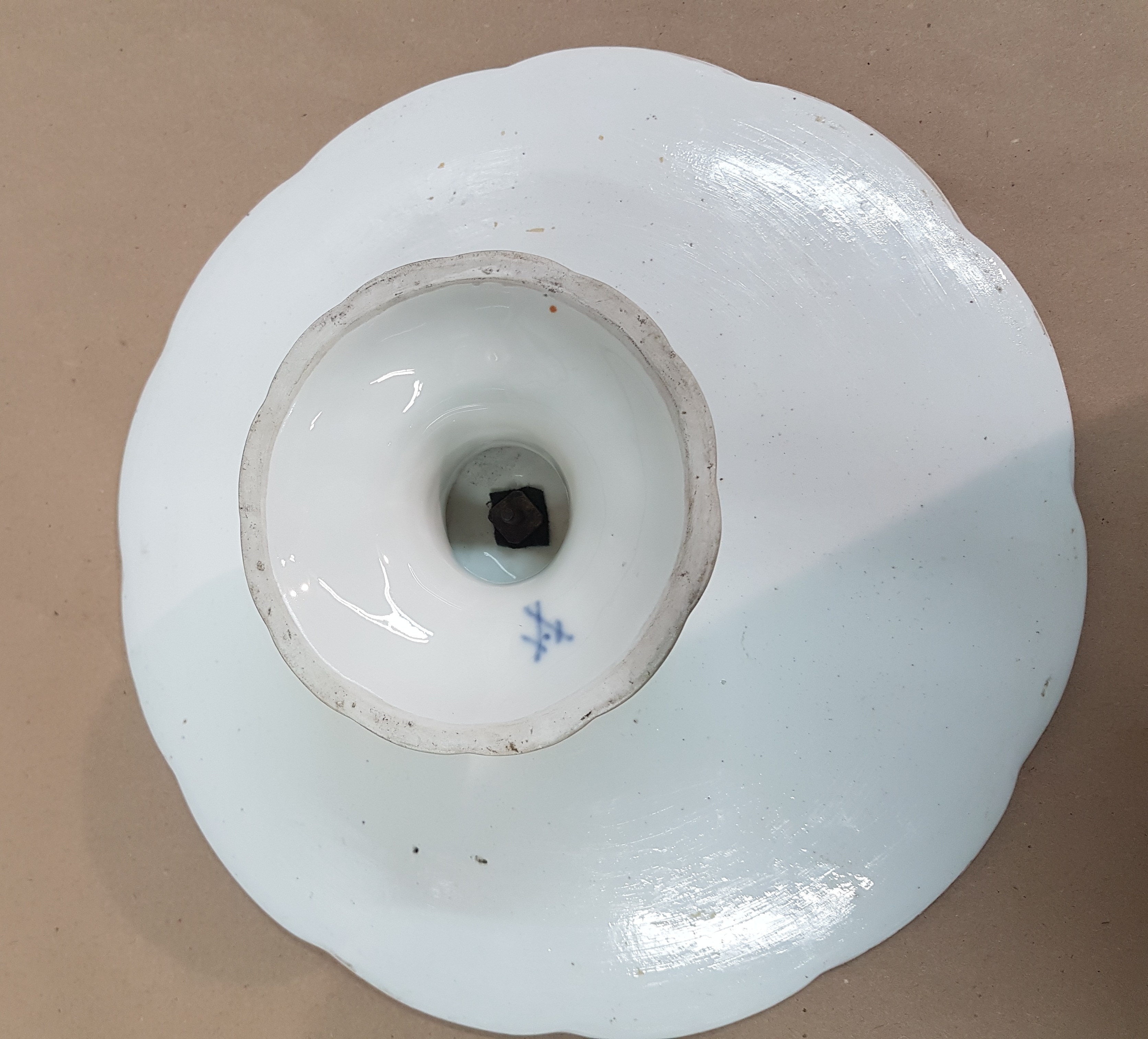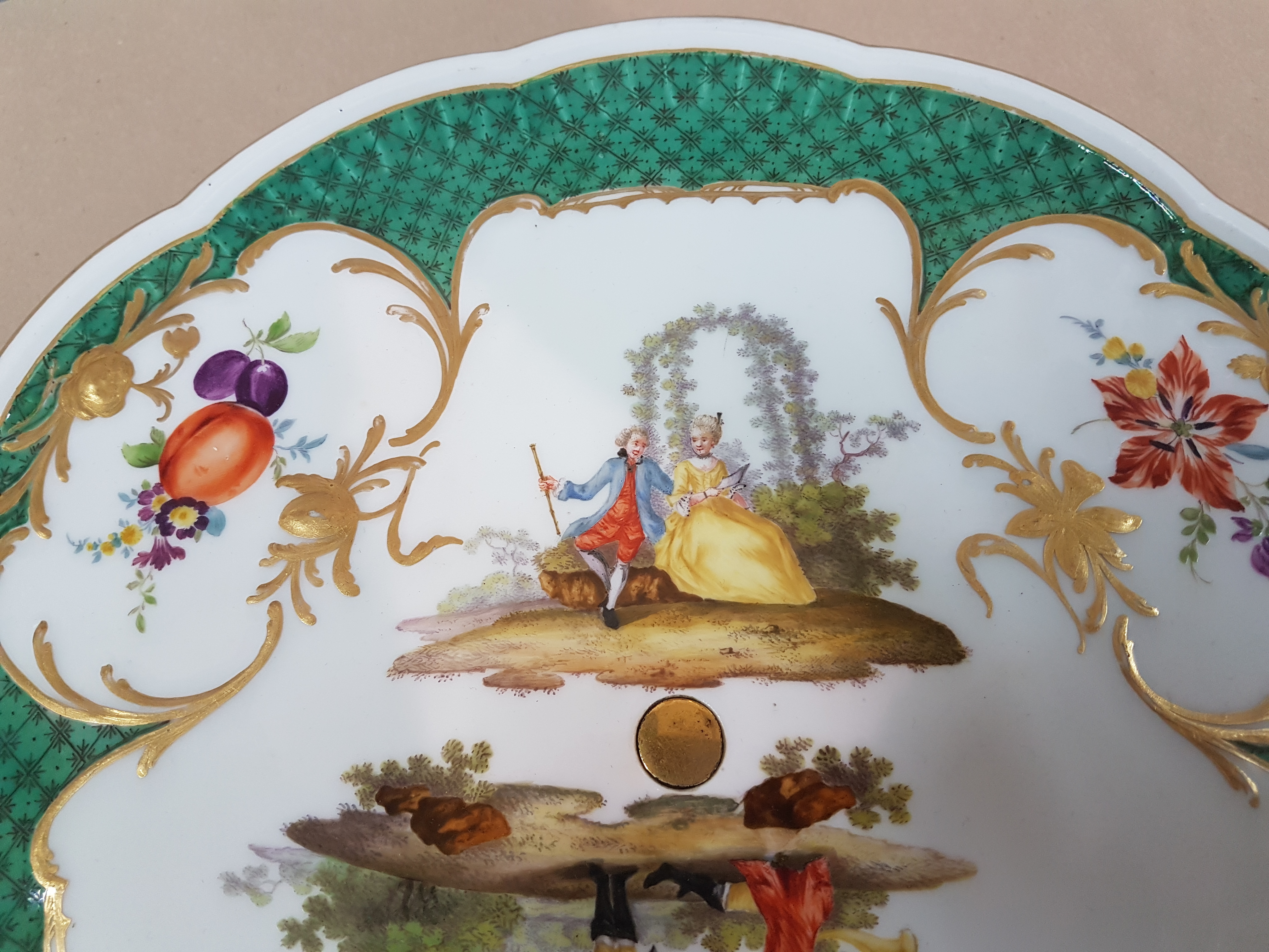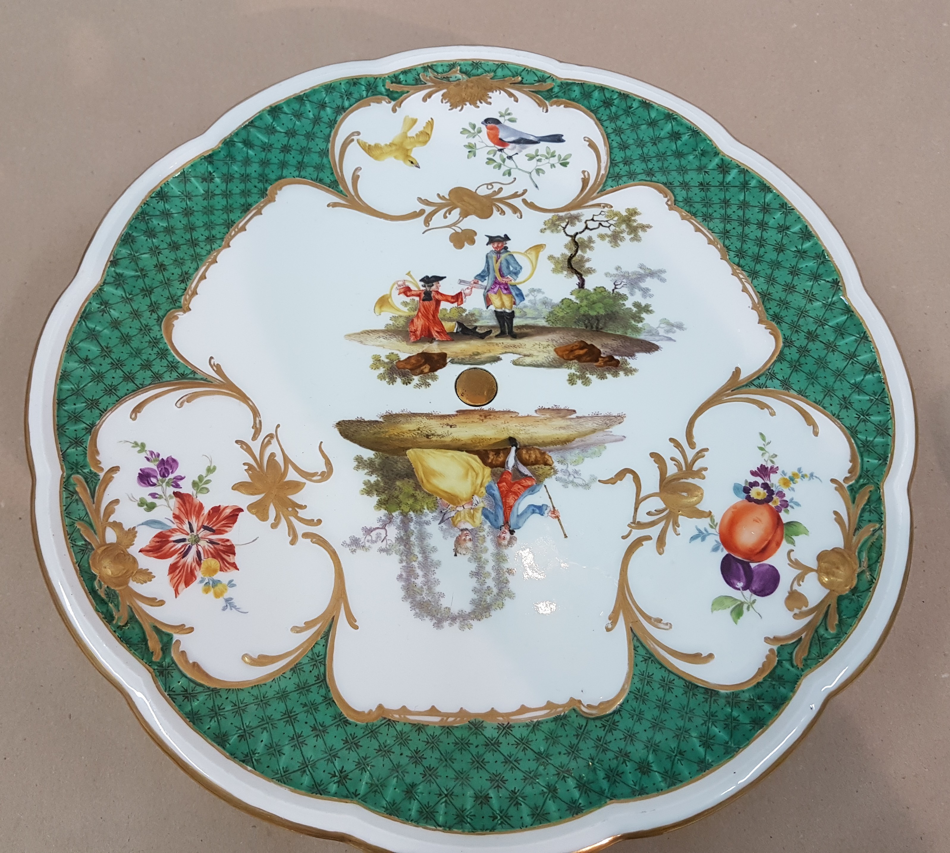 Seltener Tafelaufsatz, Platte mit Fuß, Meissen, um 1765, Porzellan, grüner Dekor,