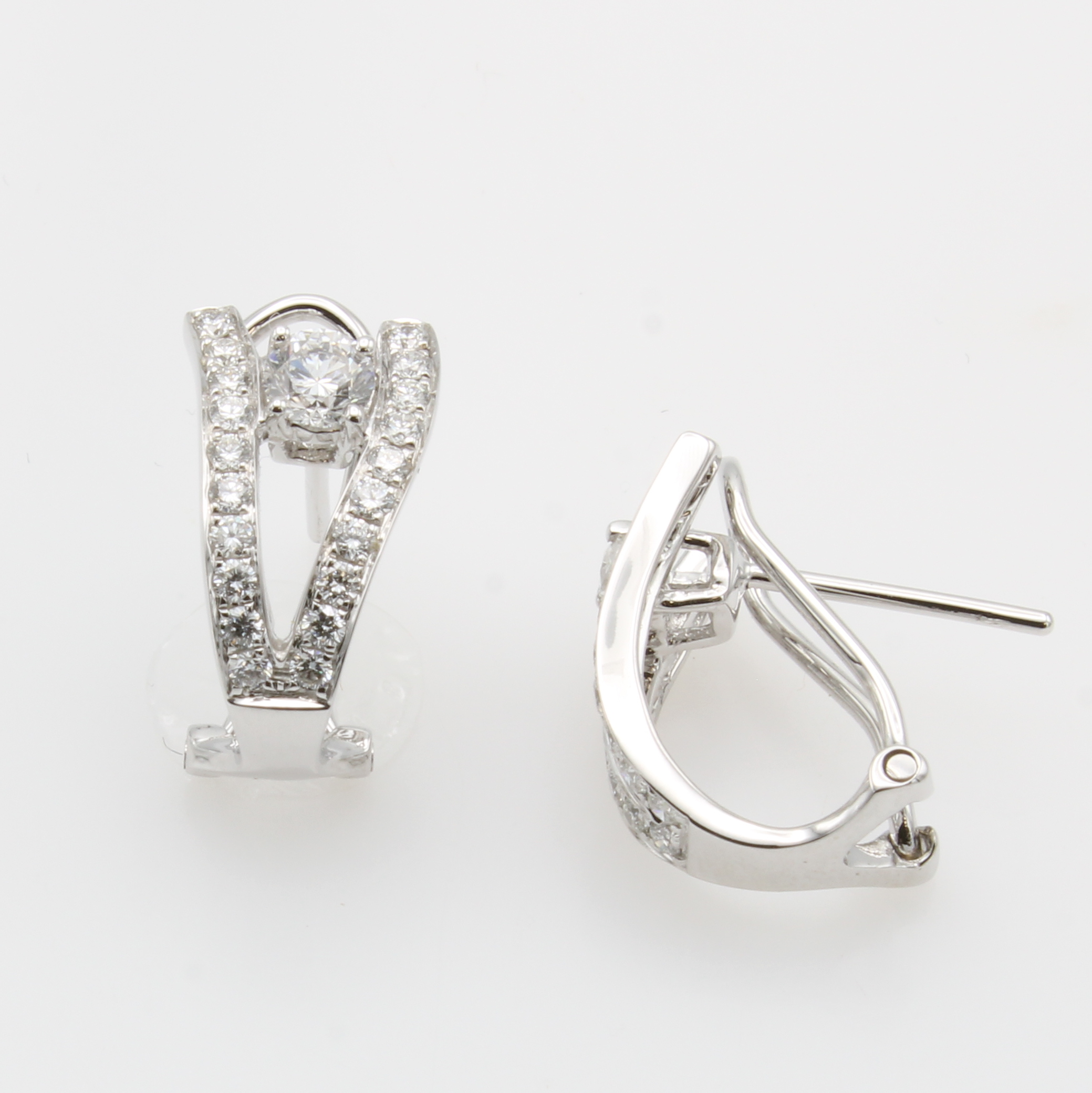 Paar Steckerclip mit Brillanten, WG 750/000, 2 Brill. zus. ca. 0.48 ct u. 40 Brill. zus. ca. 0.52 ct feines Weiß/si
