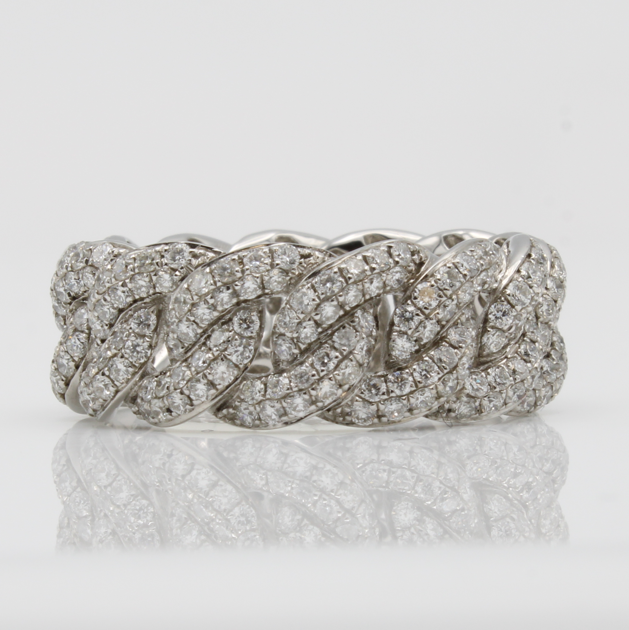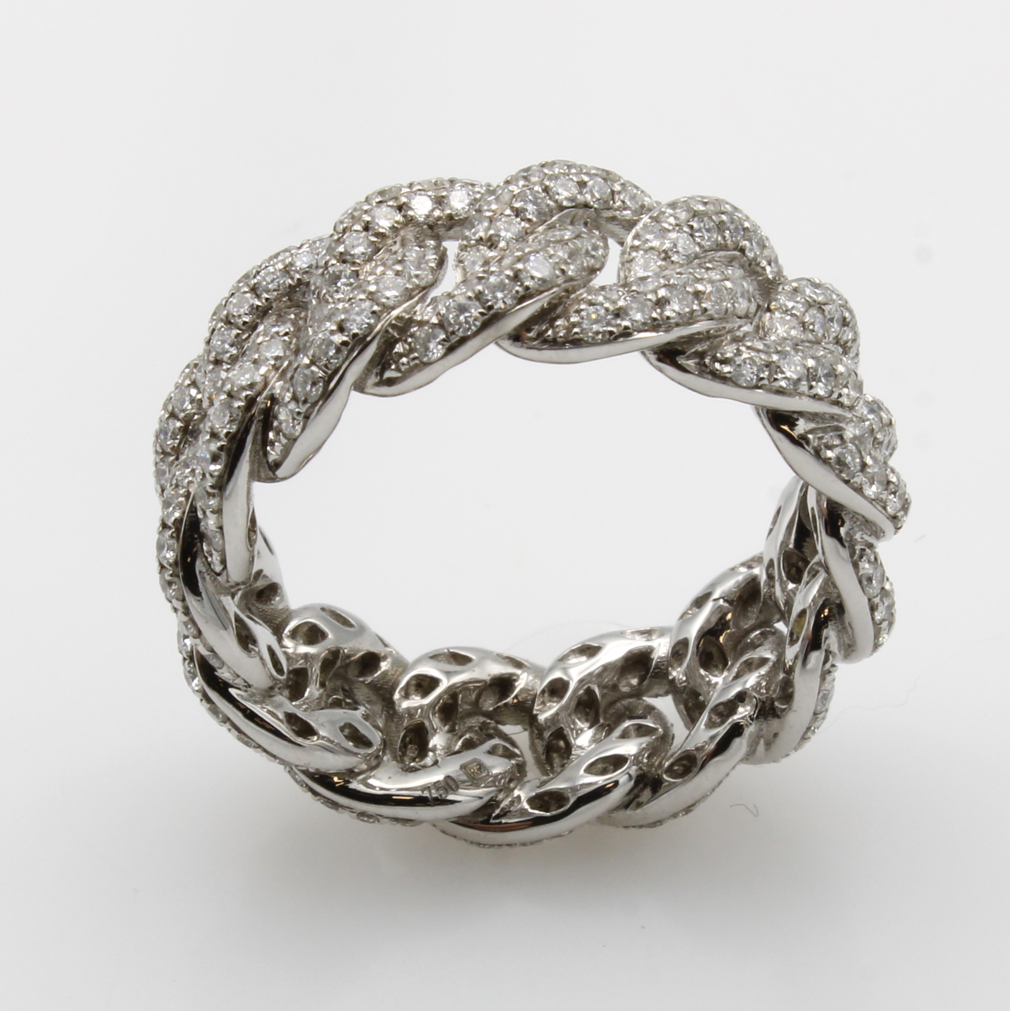 Ring mit Brillanten im Rundpanzerkettendesign, WG 750/000, rundum bes. m. 312 Brill. zus. ca. 2.14 ct feines Weiß/si, RW ca. 56
