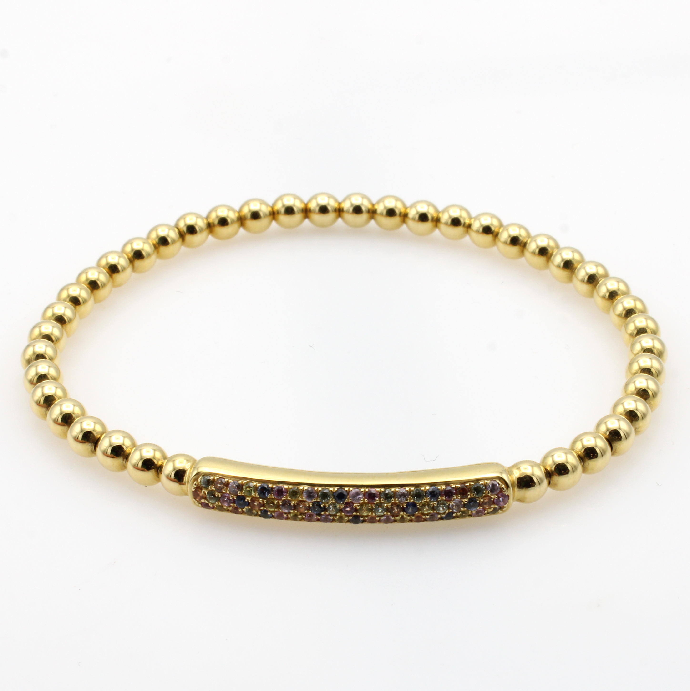 Flexibles Armband mit Saphiren, GG 750/000, 61 bunte Saphire zus. ca. 0.69 ct Schätzpreis: 3900, - EUR