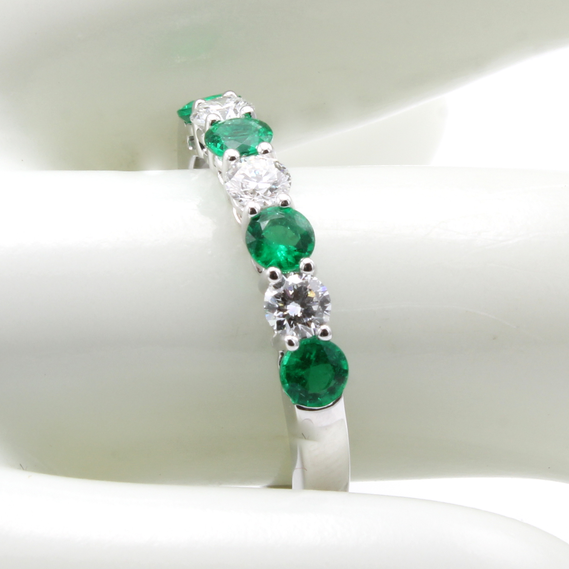 Ring mit Smaragden und Brillanten, WG 750/ 000, 3 Brill. zus. ca. 0.35 ct feines Weiß/vs,4 Smaragde zus. ca. 0.53 ct, RW ca. 54 Schätzpreis: 5100, - EUR