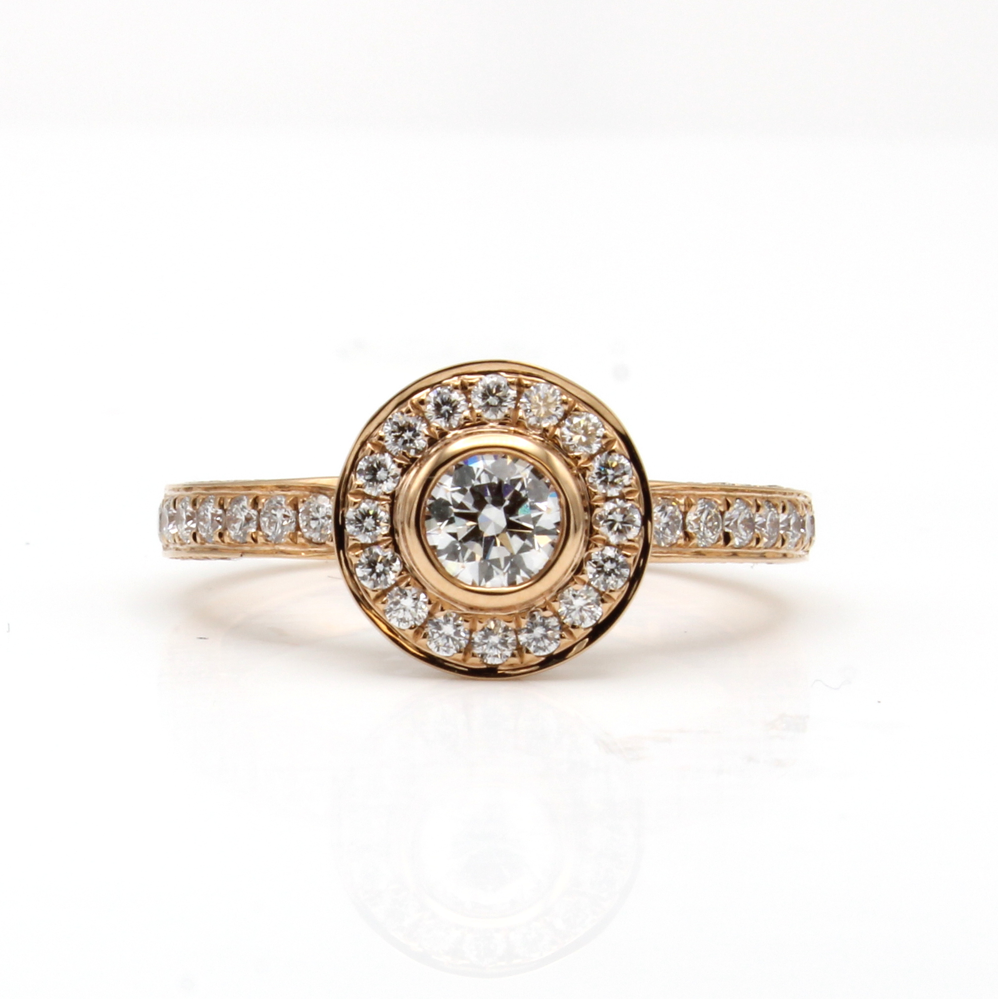 Ring mit Brillanten, RG 750/000, Mittelstein ca. 0.30 ct und Besatzbrill. zus. ca. 0.82 ct feines Weiß/vs, RW ca. 55