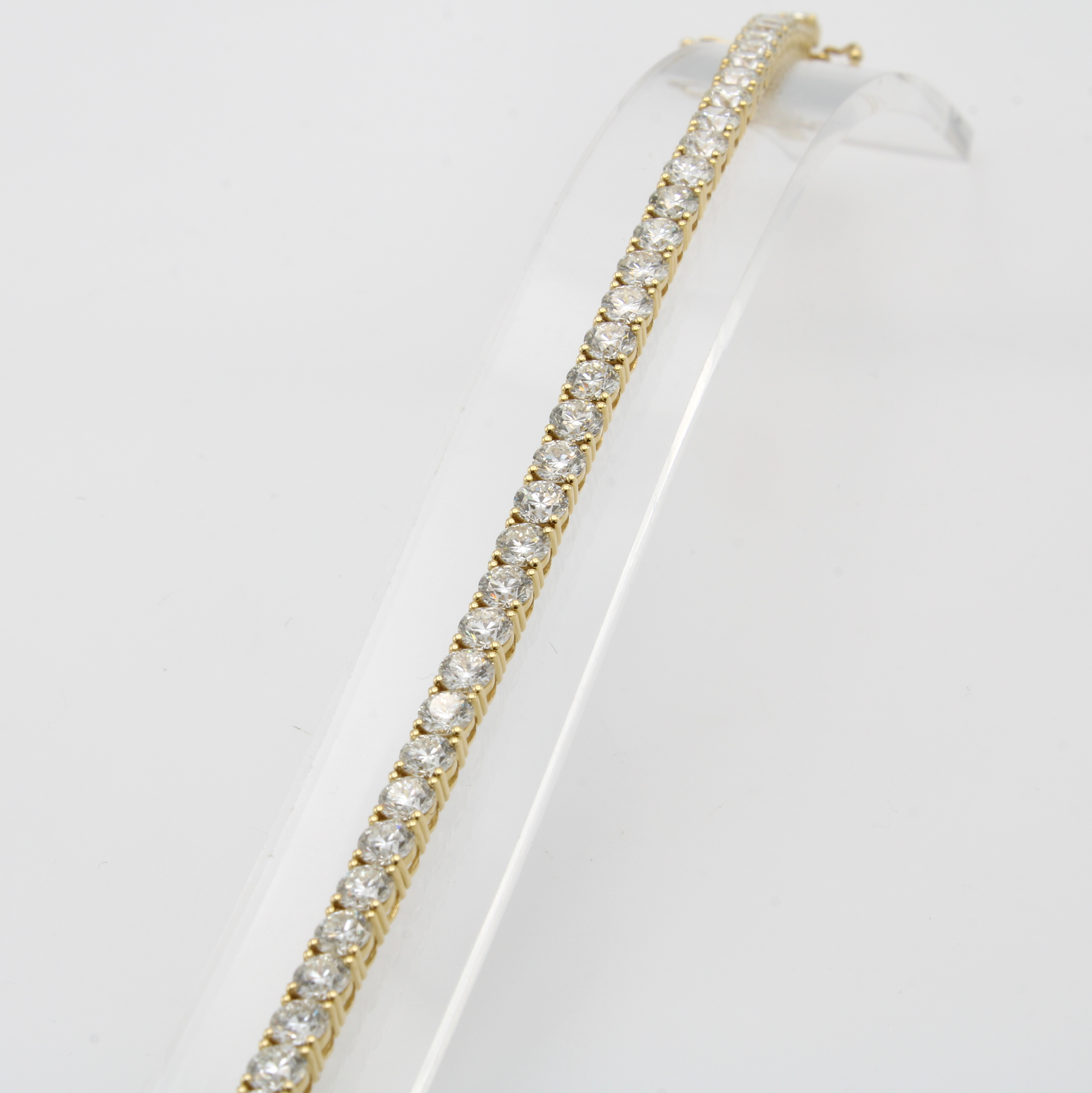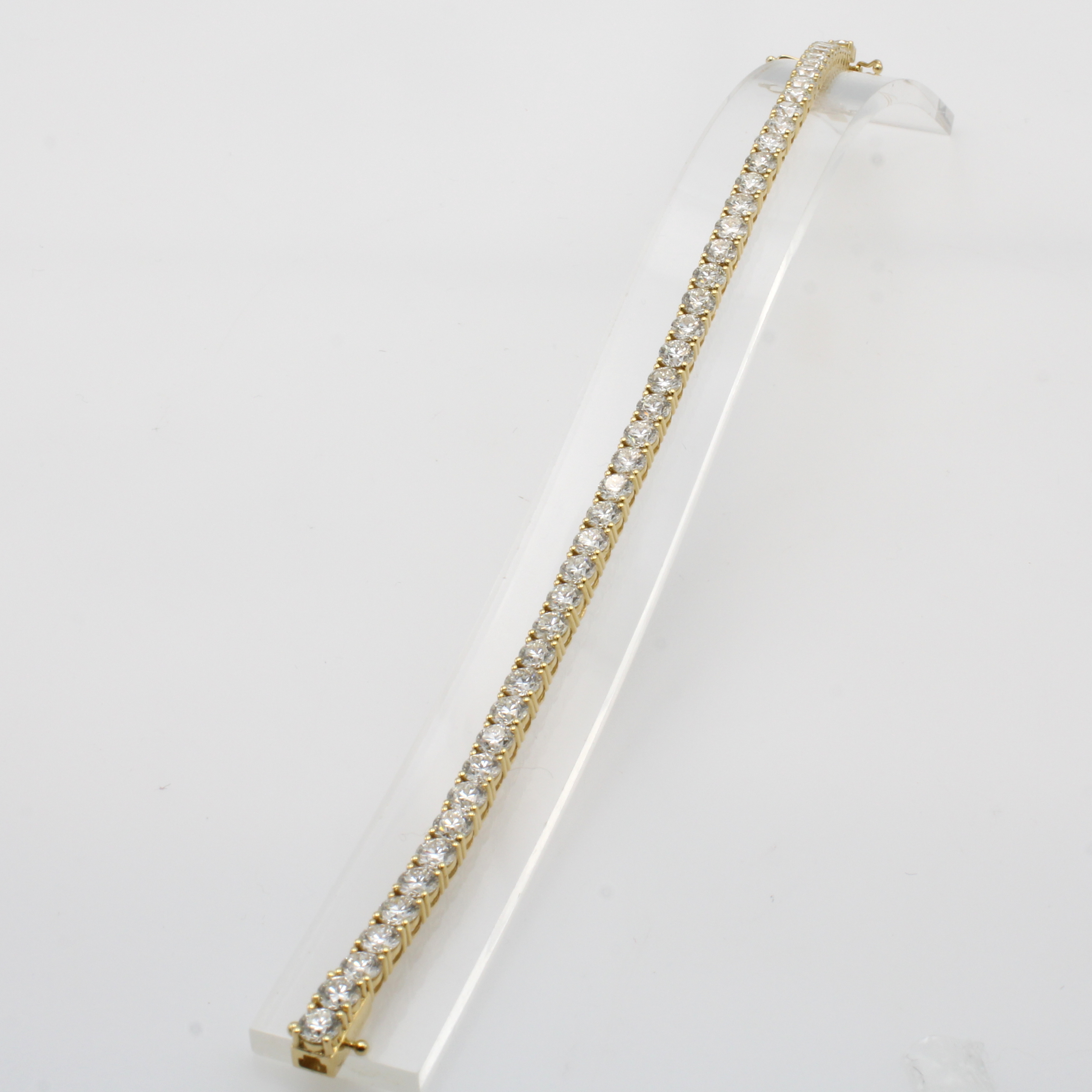 Rivierarmband mit Brillanten, GG 750/000, 50 Brill. zus. ca. 9.36 ct Weiß/si, Kasten- schl. m. Sicherheitsachten, L. ca. 18.5 cm