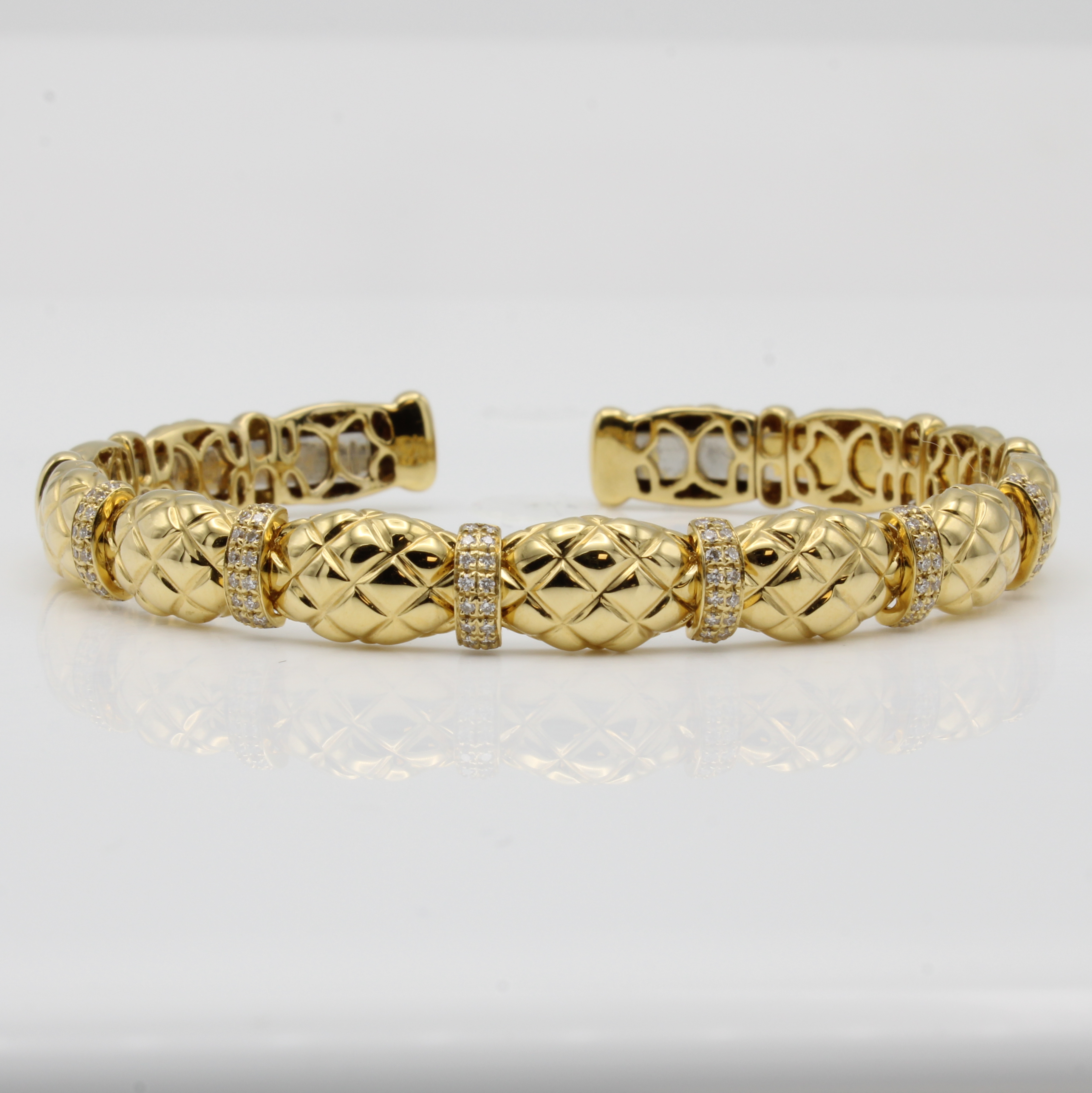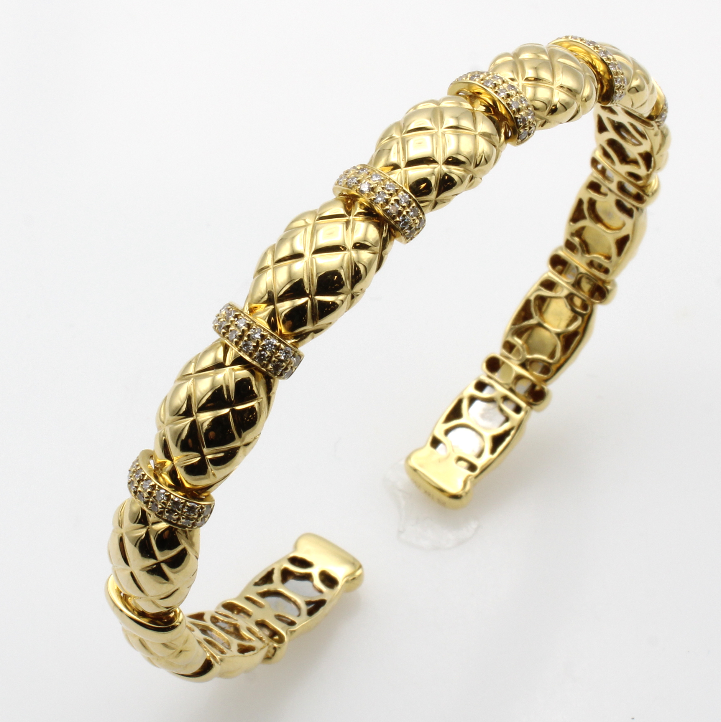 Armspange mit Brillanten, GG 750/000, Brill.zus. ca. 0.34 ct feines Weiß/si, Oberfläche in Rautenmuster, flexibel gearbeitet