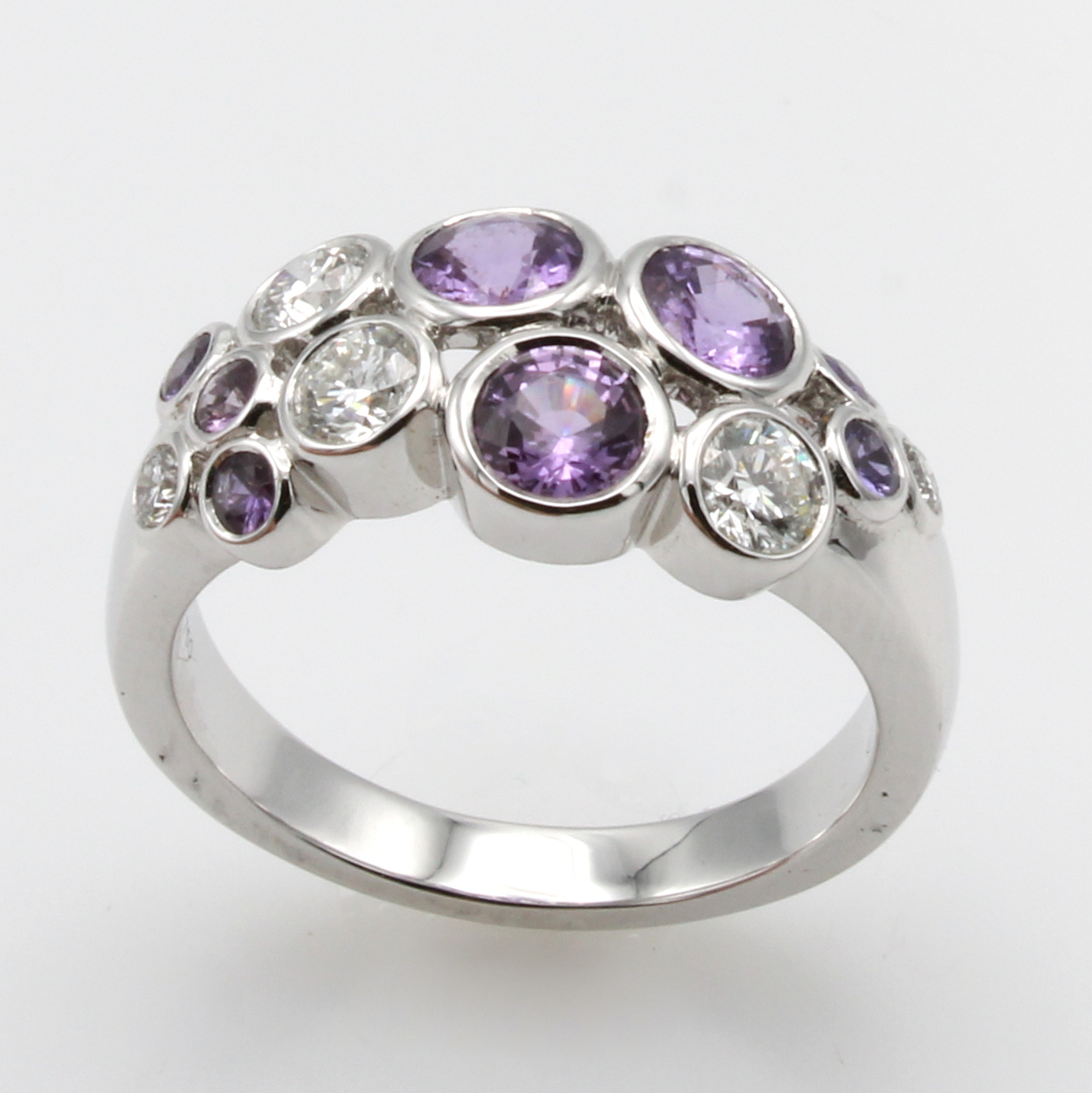 Ring mit Brillanten und Saphiren, WG 750/000, 5 Brill. zus. ca. 0.56 ct feines Weiß/vs, 8 Saphire zus. ca. 1.27 ct, RW ca. 54 Schätzpreis: 6200, - EUR