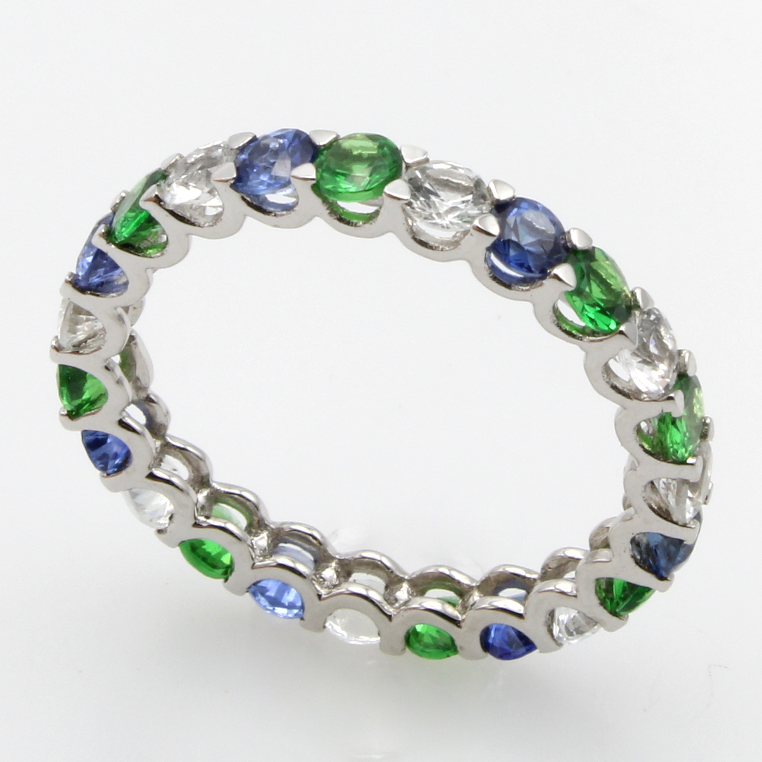 Ring mit Farbsteinen, WG 750/000, 7 blaue Saphire zus. ca. 0.92 ct, 8 weiße Saphire