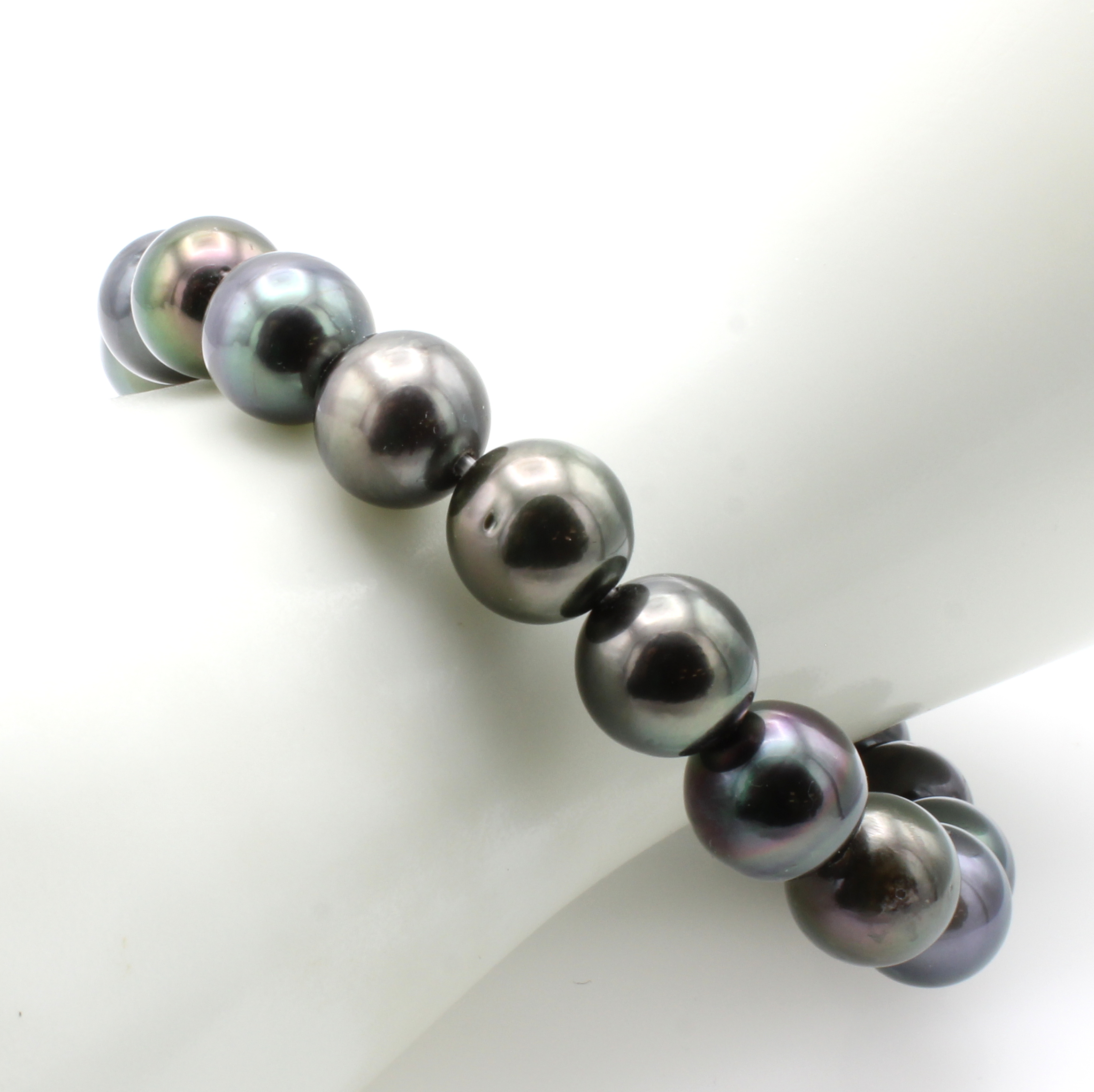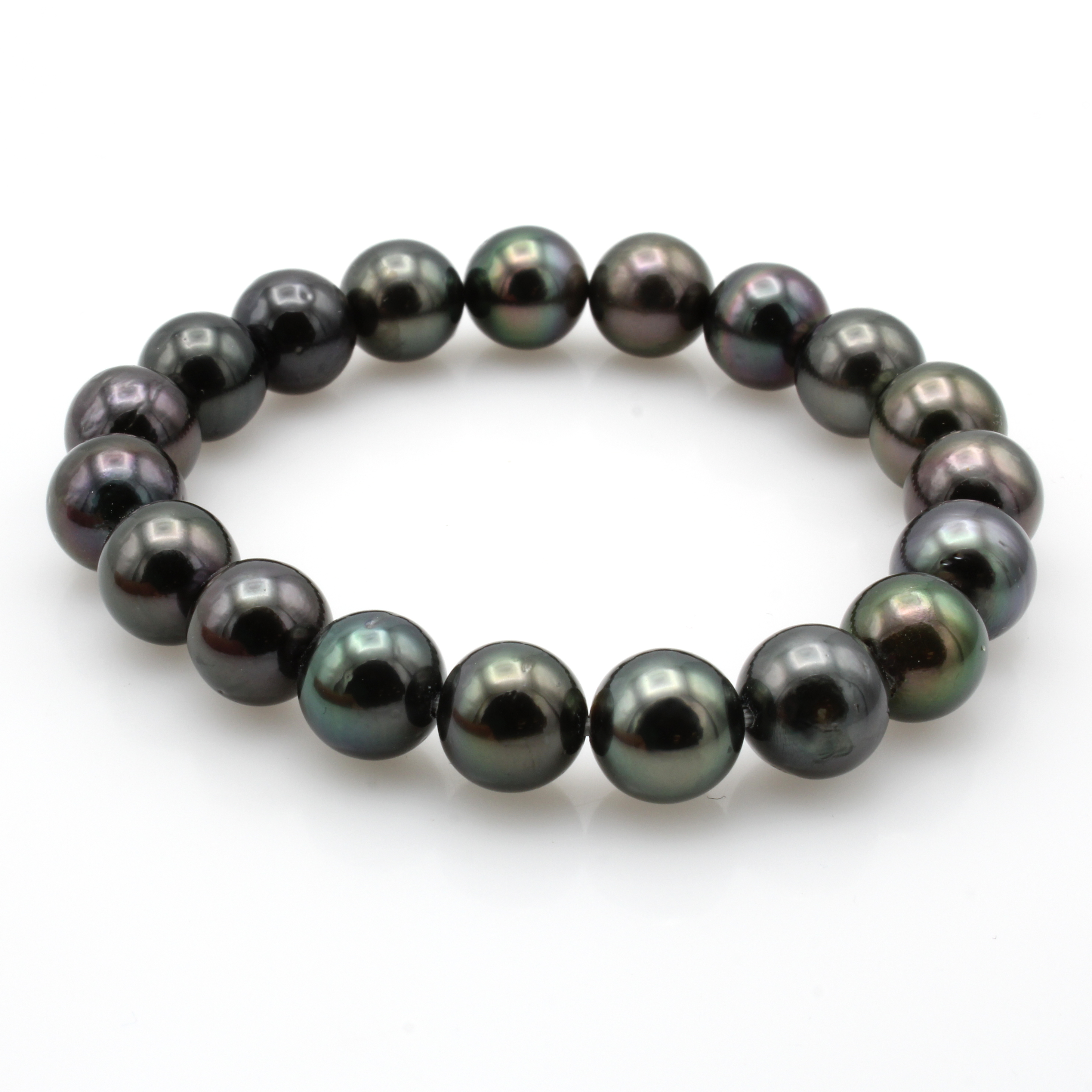 Flexibles Armband mit Tahitizuchtperlen, dunkle Perlen, D. ca. 10.5-11 mm Schätzpreis: 2100, - EUR