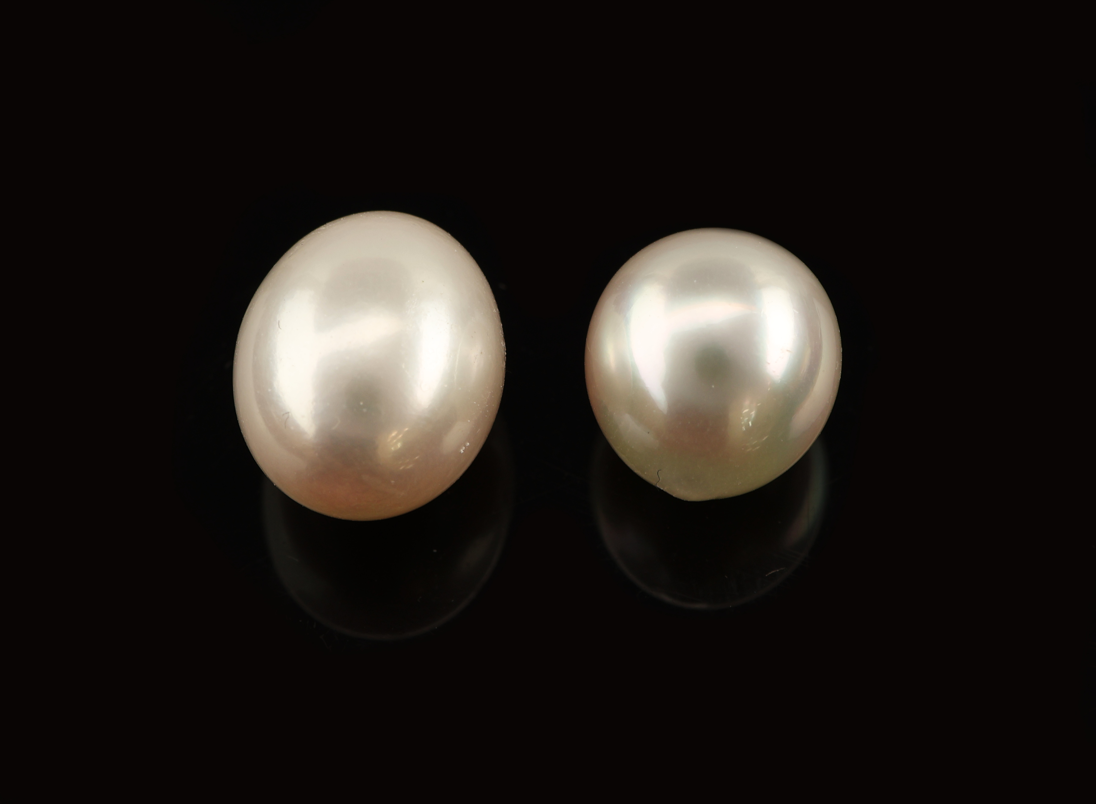 Konvolut 2 lose Südseezuchtperlen, 1 x l. unrund, schönes Lüster, D. ca. 10.4