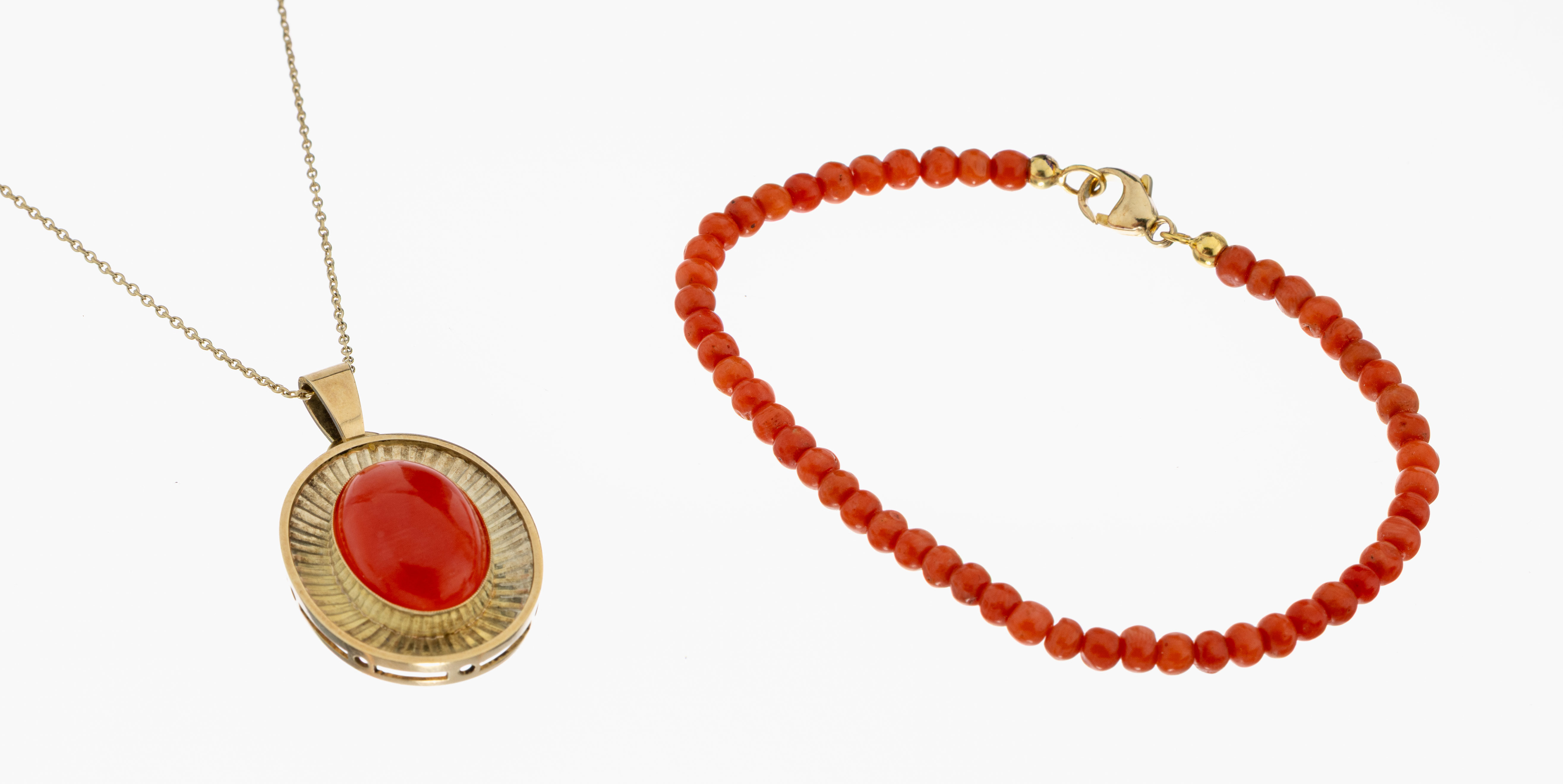 ca. 9.6 g, dazu 1 Armband, Korallen-Kugeln, D. ca. 4 mm, L. ca. 19 cm, Karabinerschließe