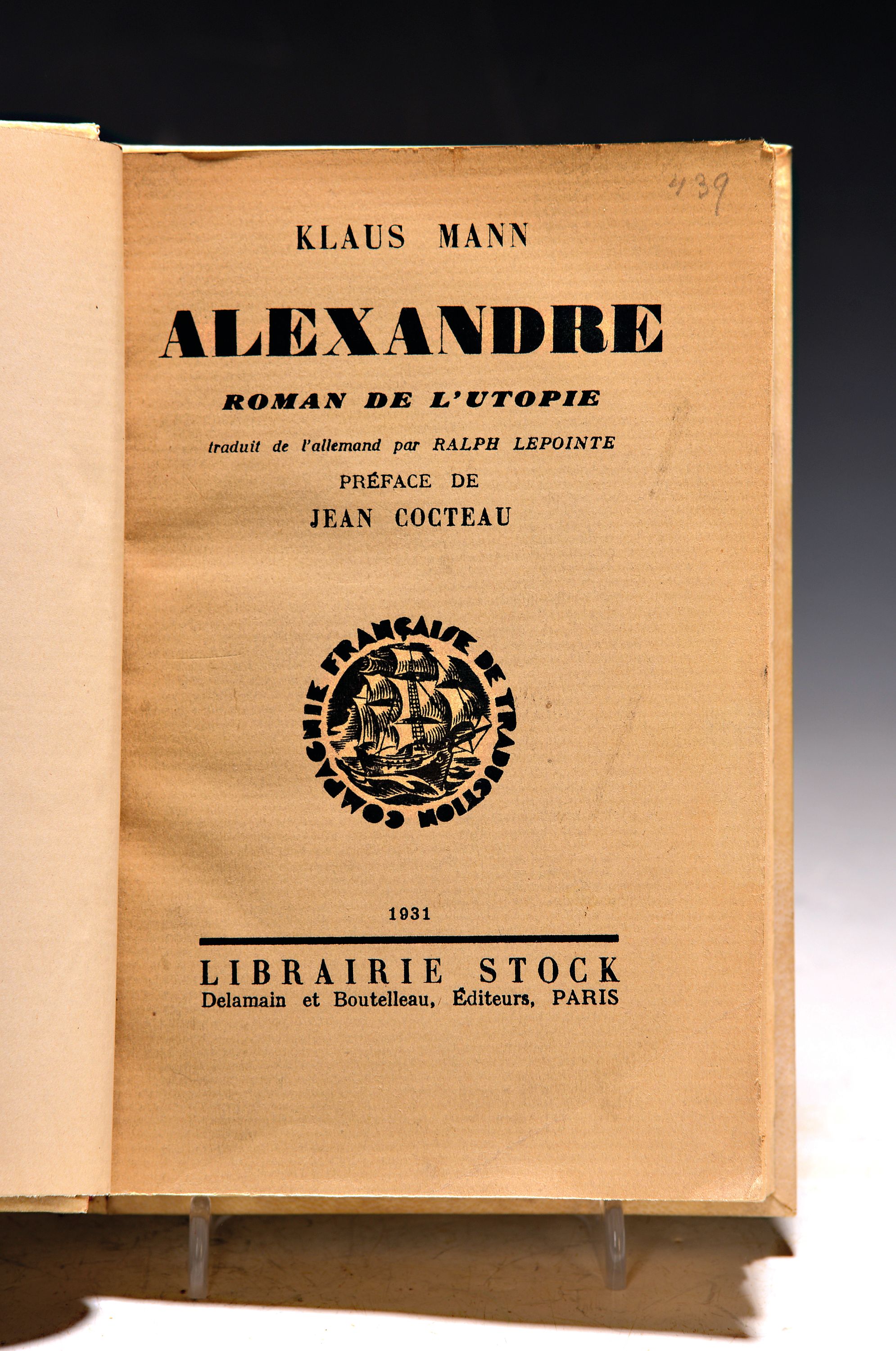 Klaus Mann (1906-1949): Alexandre. Roman de l'Utopie, Paris, Delamain & Boutelleau
