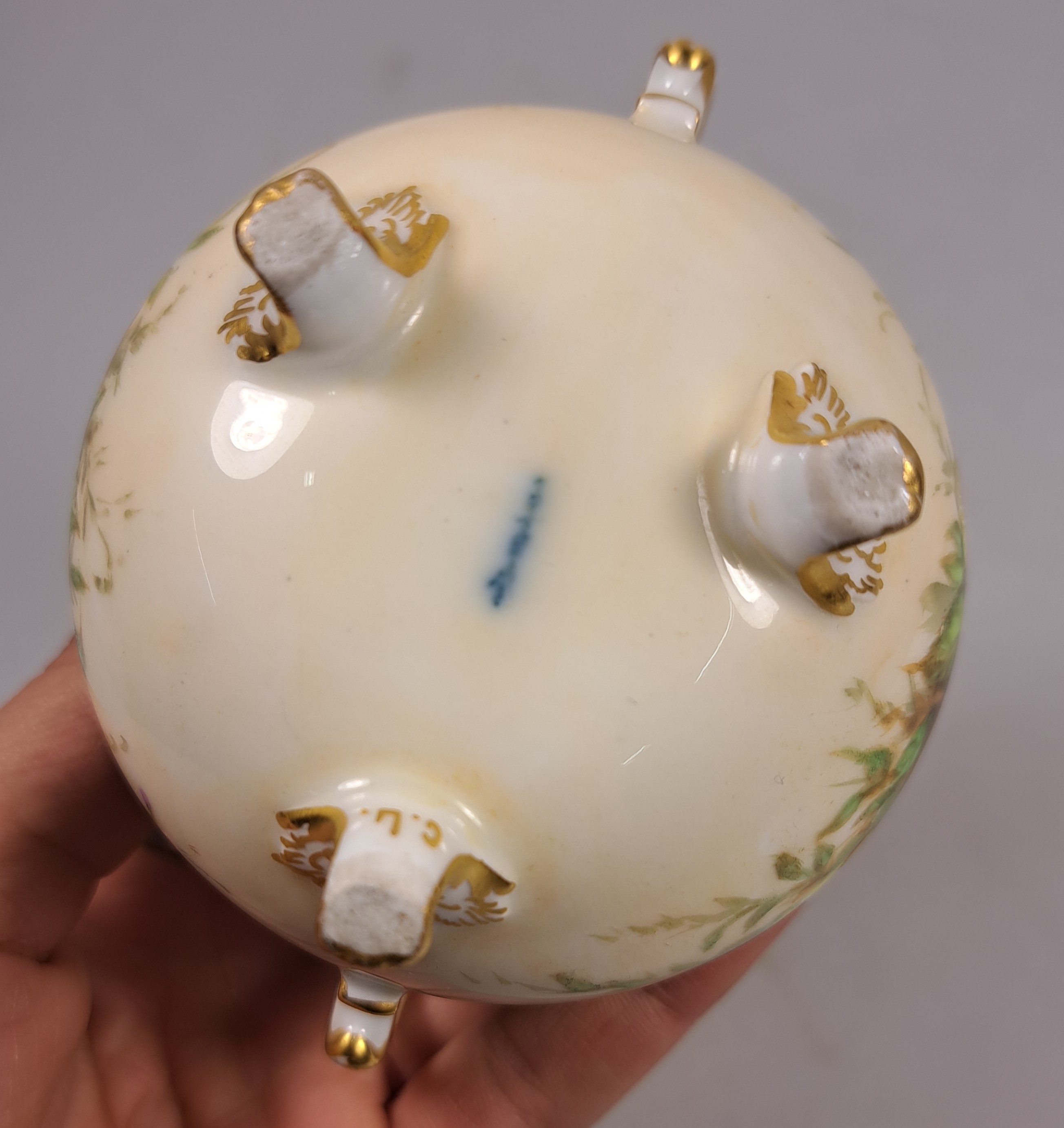 und unterglasurblauem W, wohl Malermarke C.L. in gold, Alterssp.