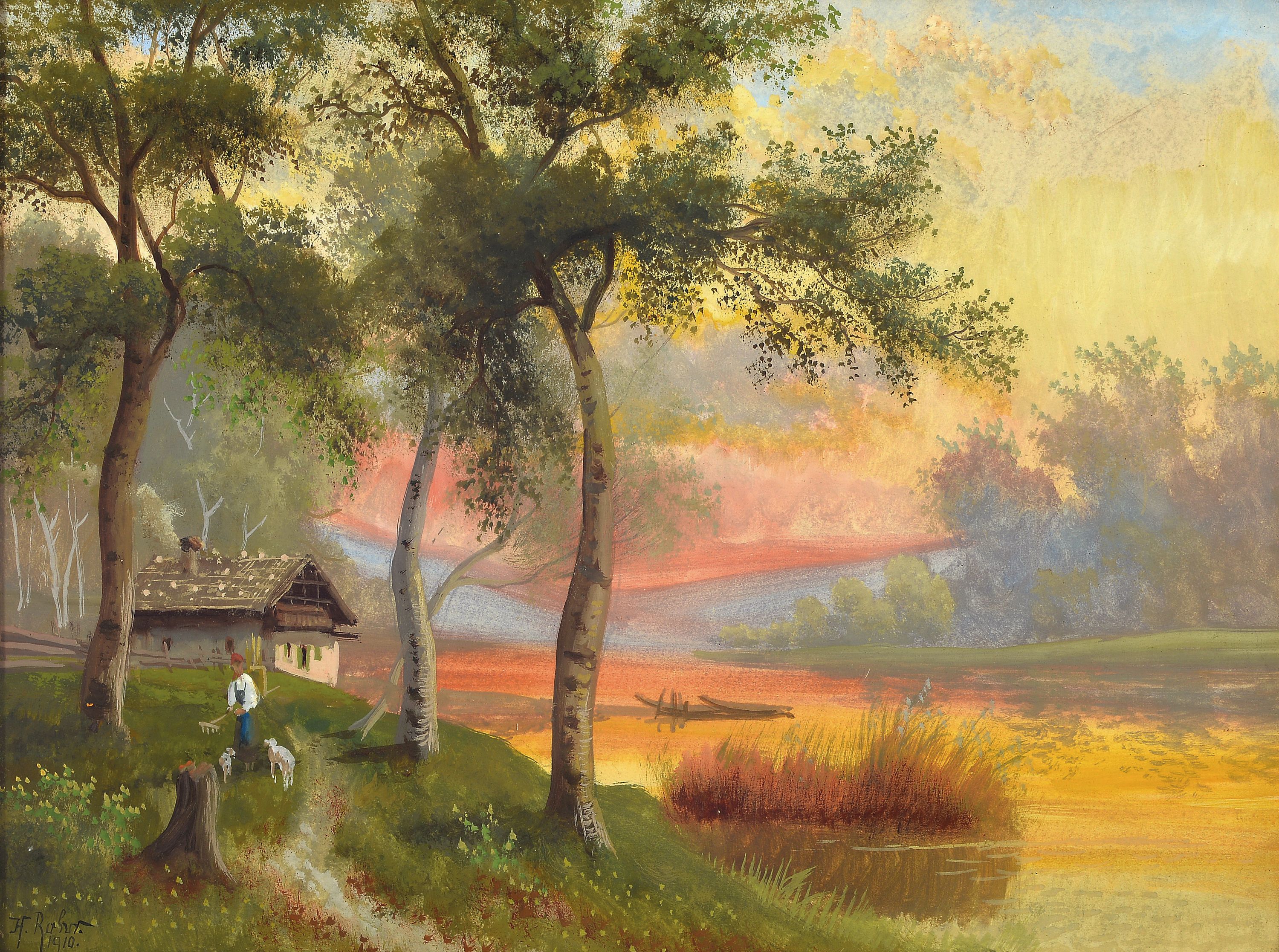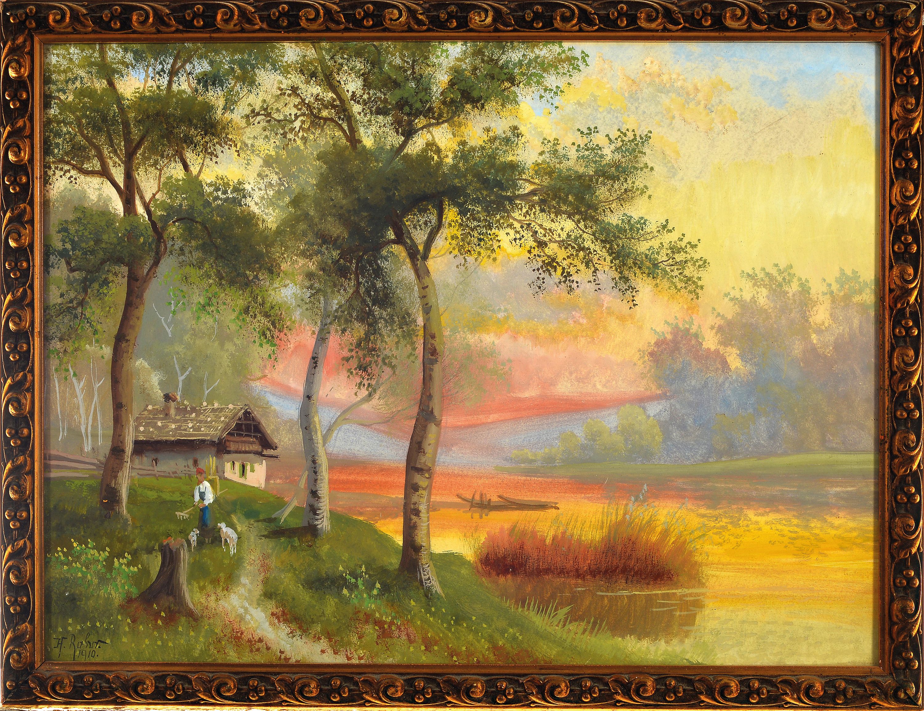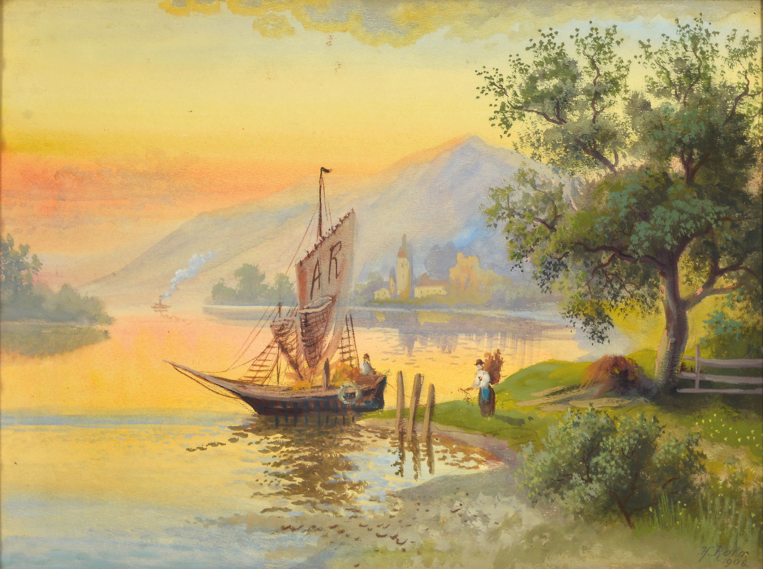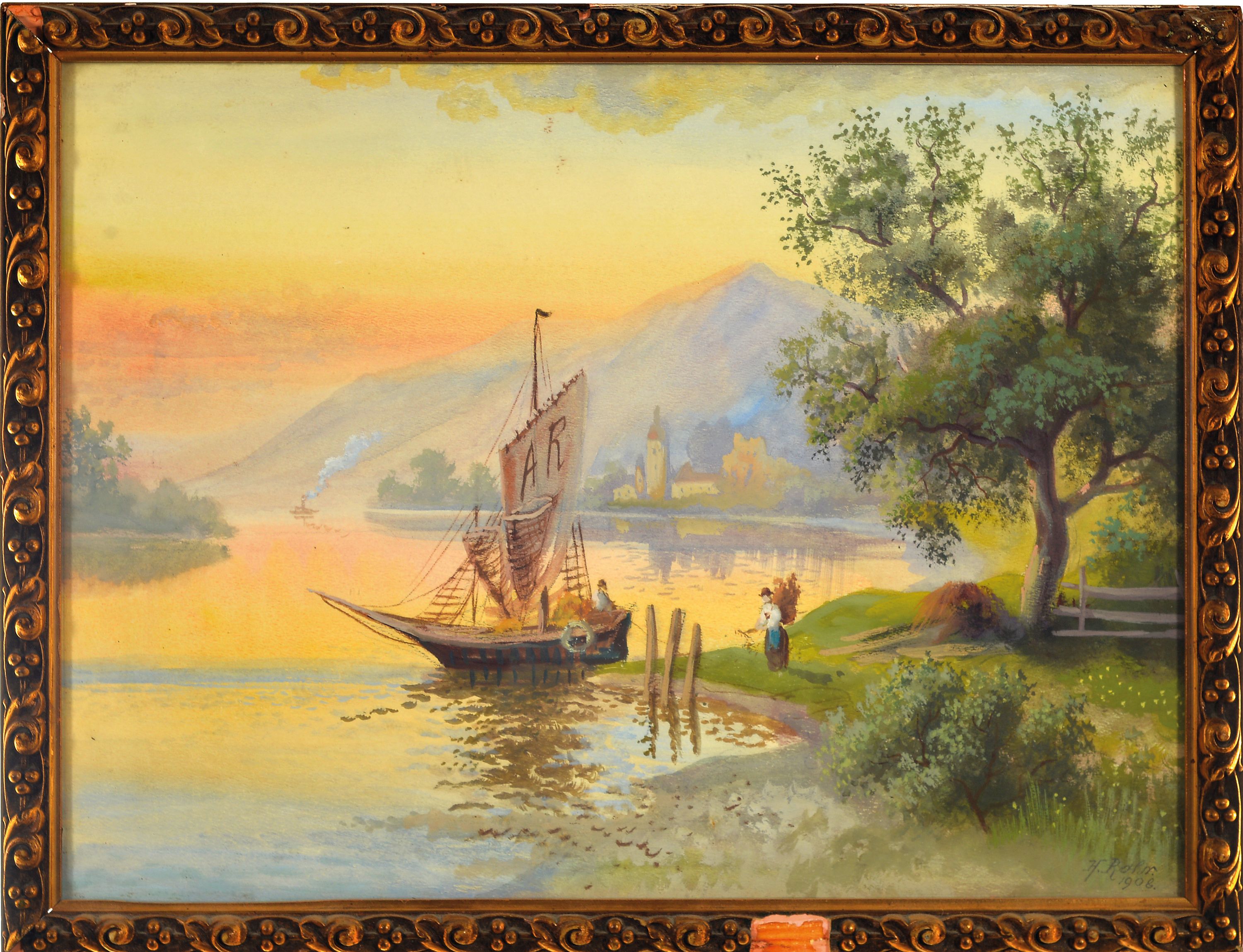 H. Rohr, Pseudonym des Karl Kaufmann, 1843 Neplachowice-1905 Wien, Paar Aquarelle, "Am Zeller See" und wohl Zürichsee, je signiert und vordatiert 1908/10, unter Glas, Jugendstilrahmen 33x42 cm