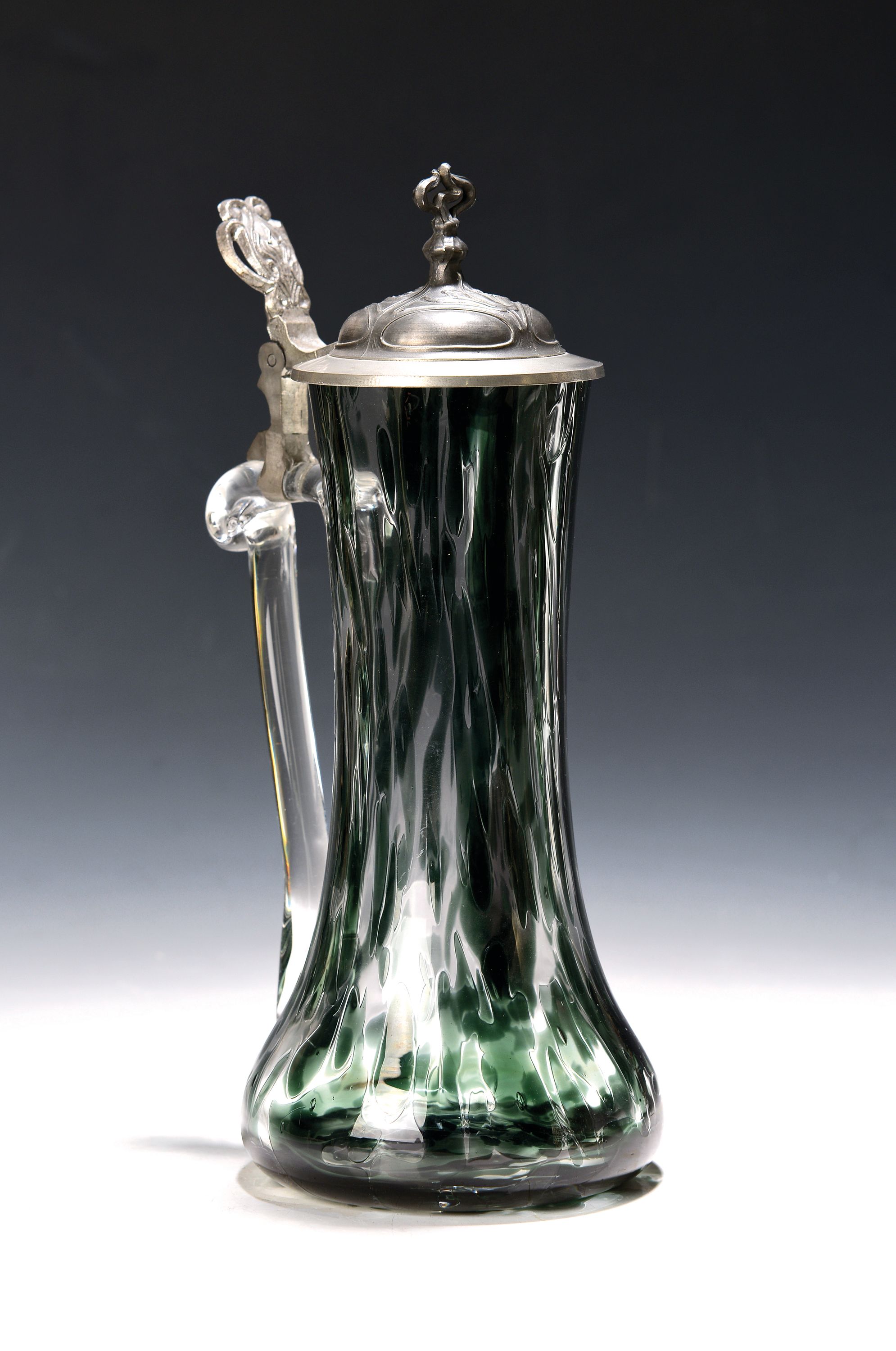 Deckelkanne, deutsch, WMF, um 1900, Jugendstil, farbloses Glas mit eingeschmolzenen