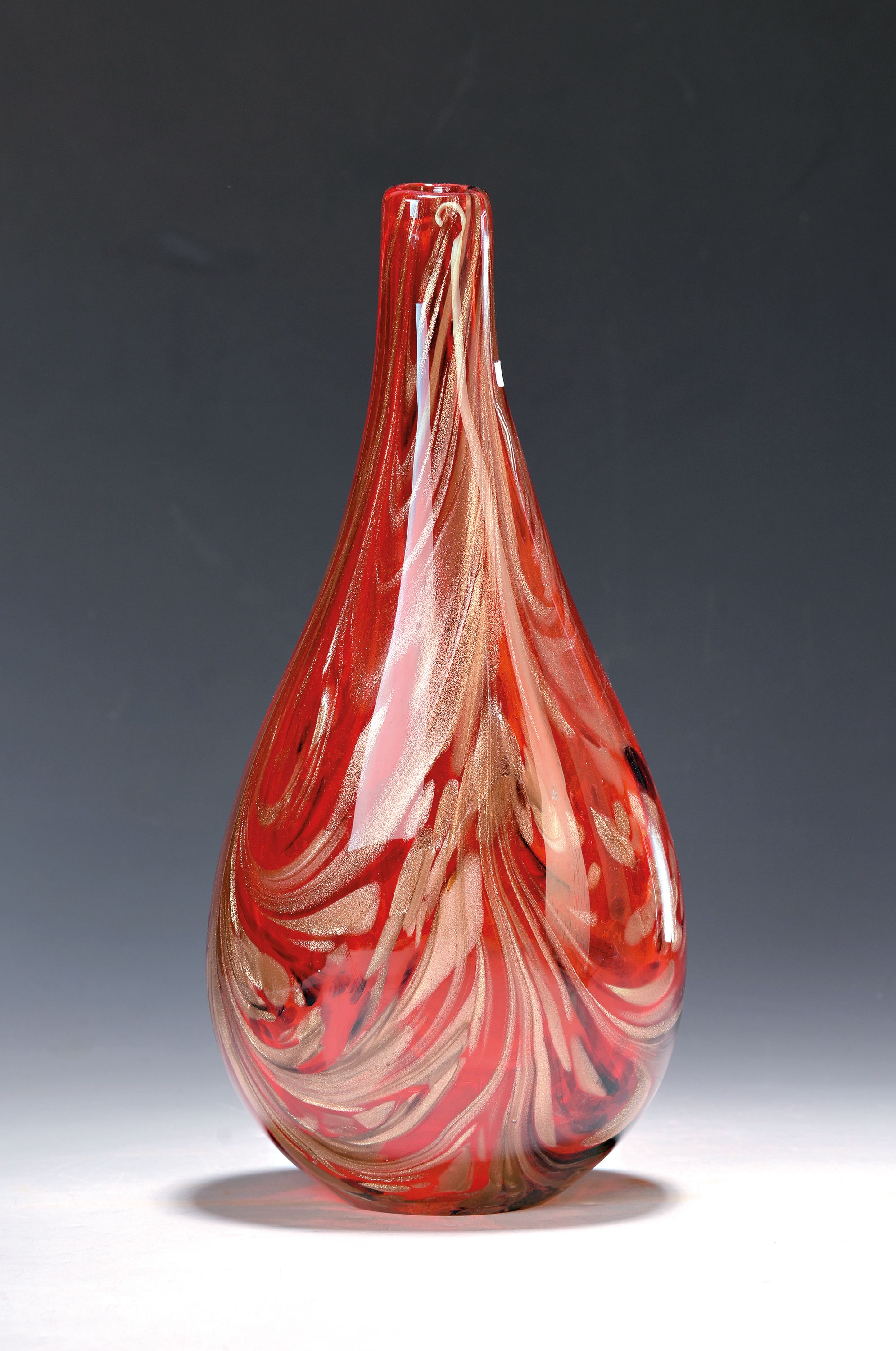 Vase, Murano Italien, 1980er Jahre, rotes mundgeblasenes Glas mit jaspisartigen Einschmelzungen,