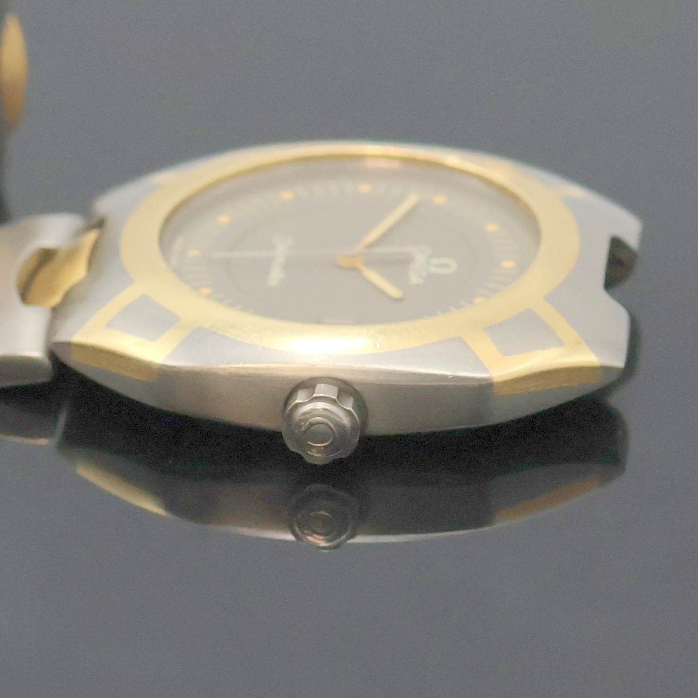 Boden aufgedr., orig. Band m. Gold-Zwischengliedern, graues Zifferbl. m. Leuchtind.,