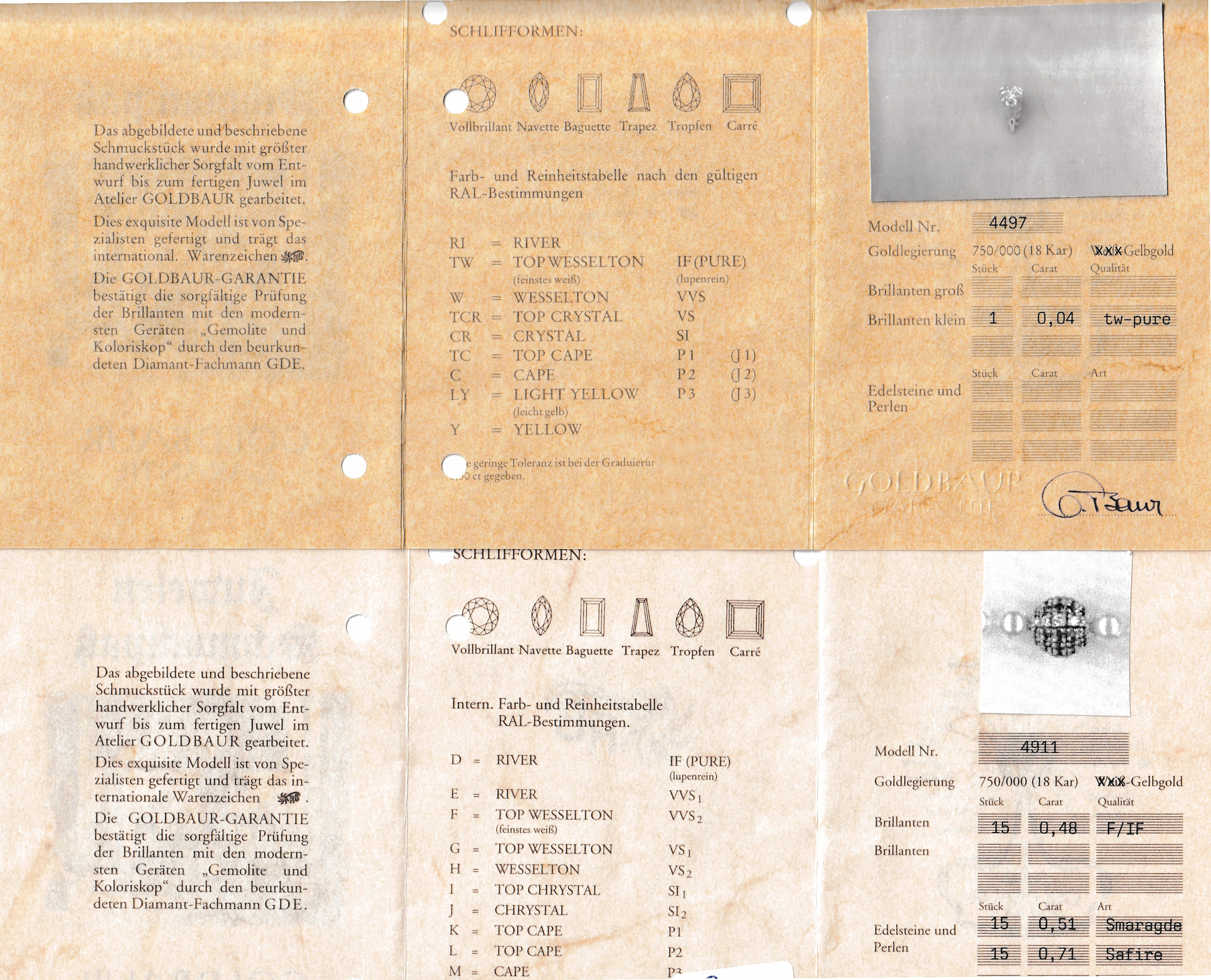 18 kt Gold GOLDBAUR Saphir-Rubin-Smaragd- Diamant-Öse/Kugelschließe, GG 750/000,
