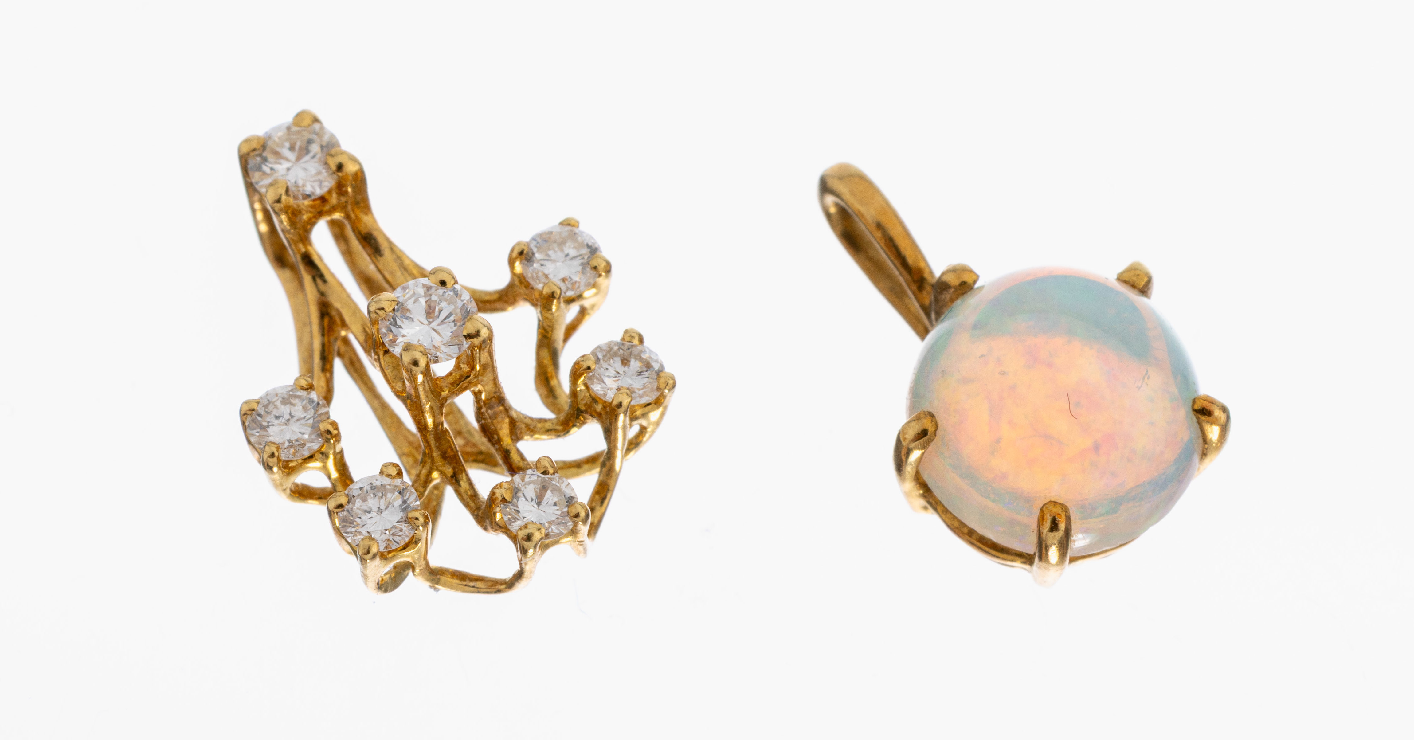 Konvolut 2 18 kt Gold Anhänger, GG 750/000,1 x runder Opalcabochon ca. 1.30 ct,