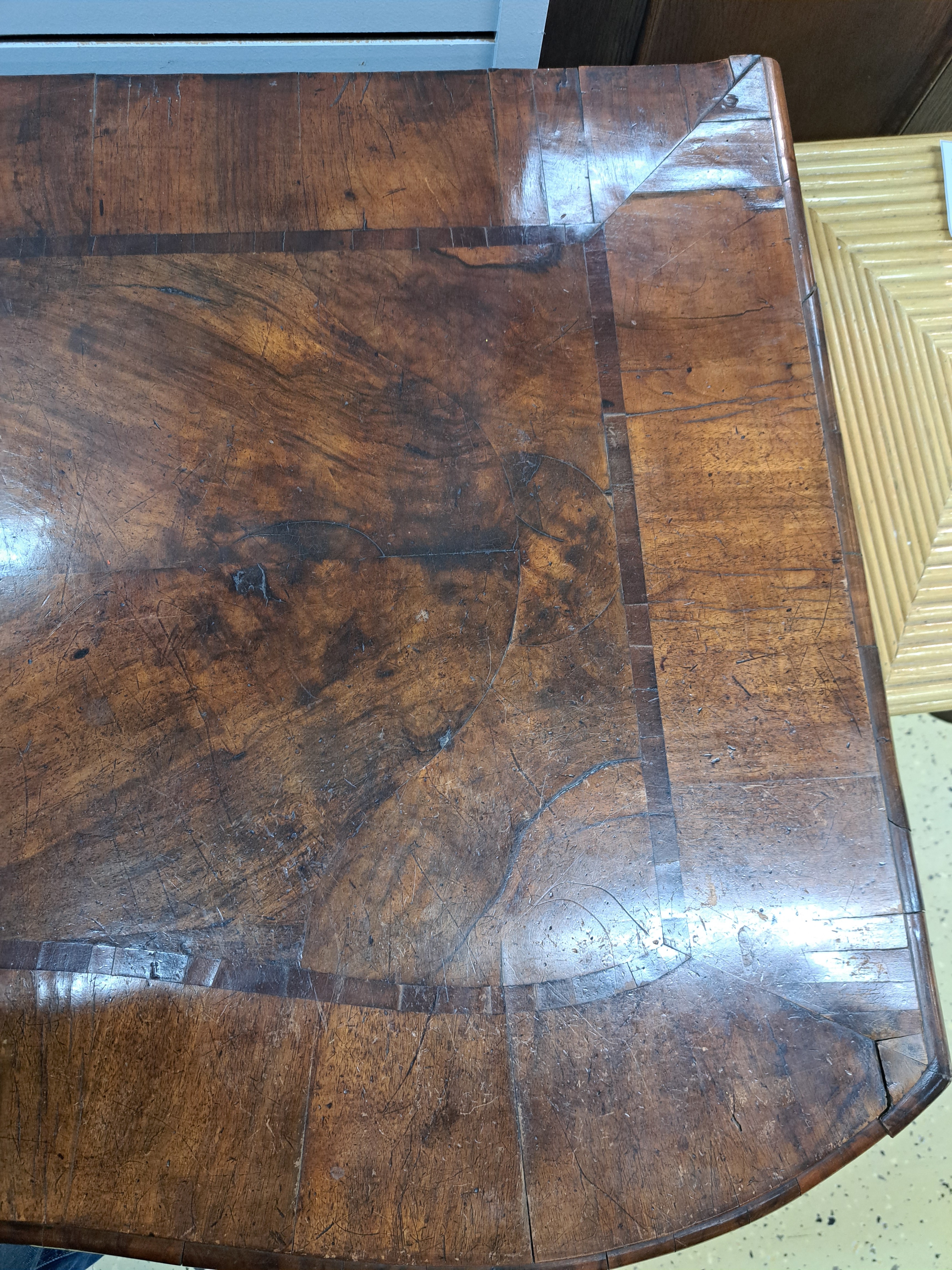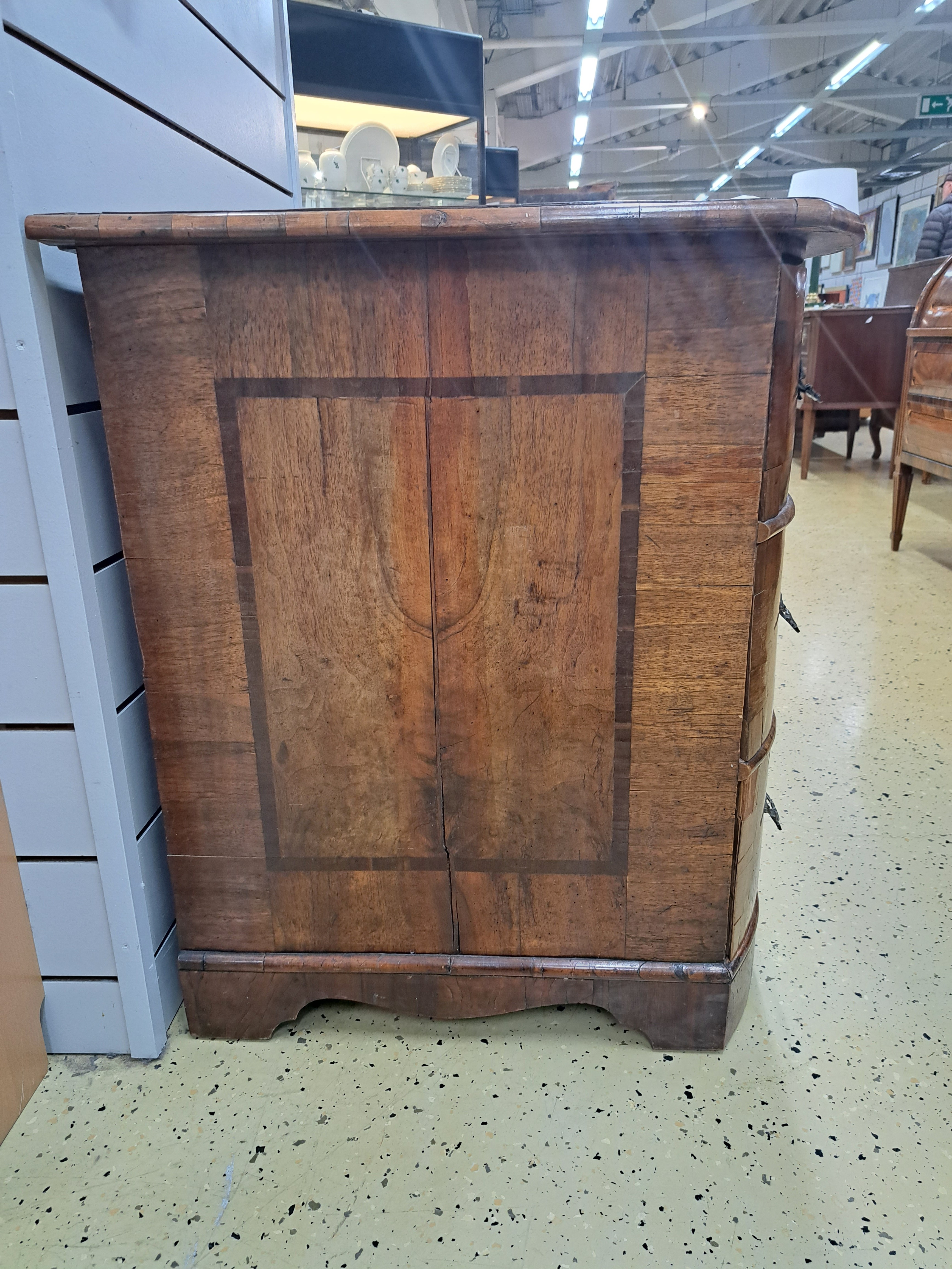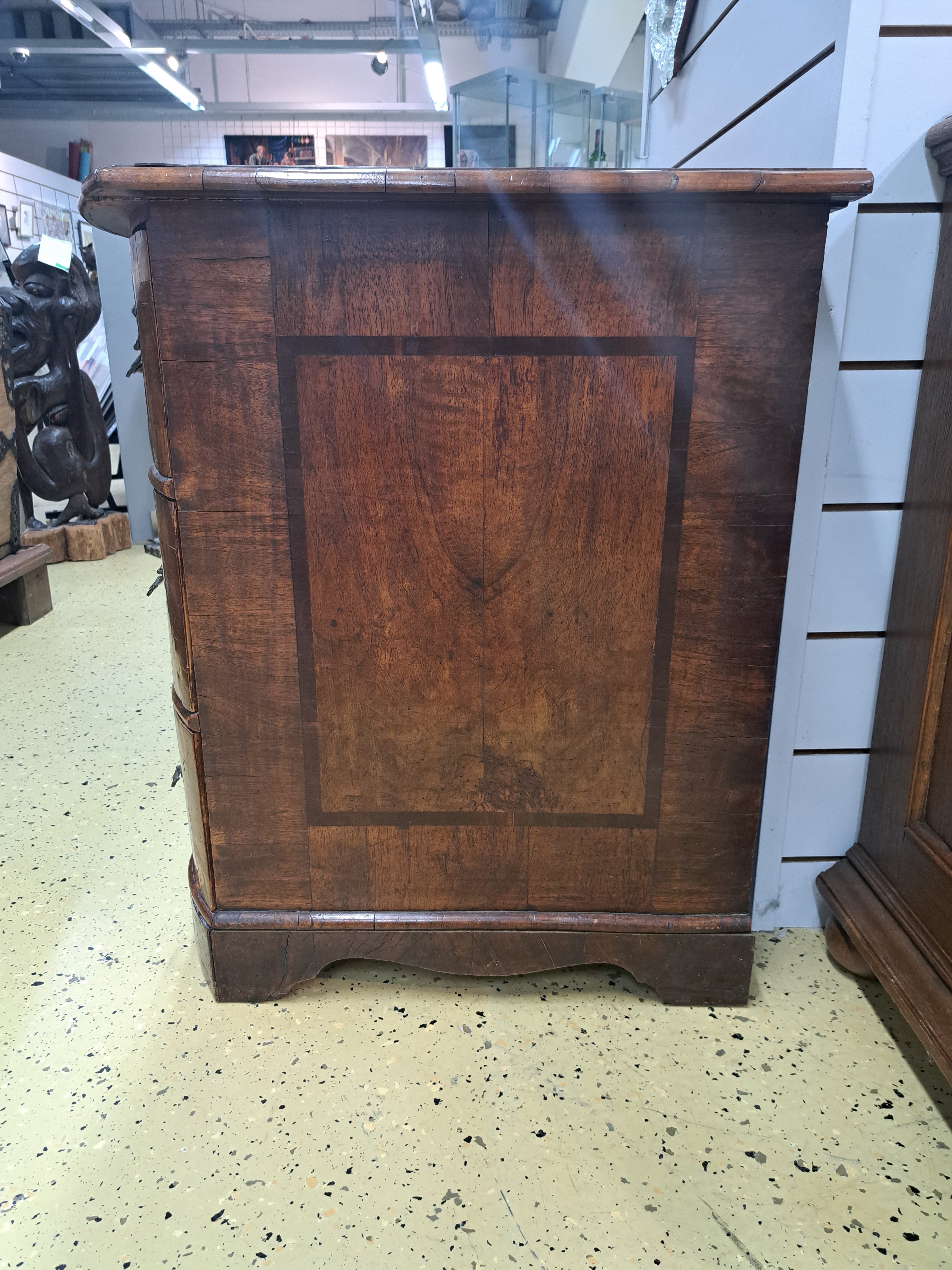 Barockkommode, um 1740/50, Nußbaumfurnier, 3 Schubladen, doppelt geschweift, Messingbeschläge, Rahmenfüllungen in Wurzelnussfurnier, ohne Schlüssel, ca. 86 x 123 x 72 cm, EZ 3