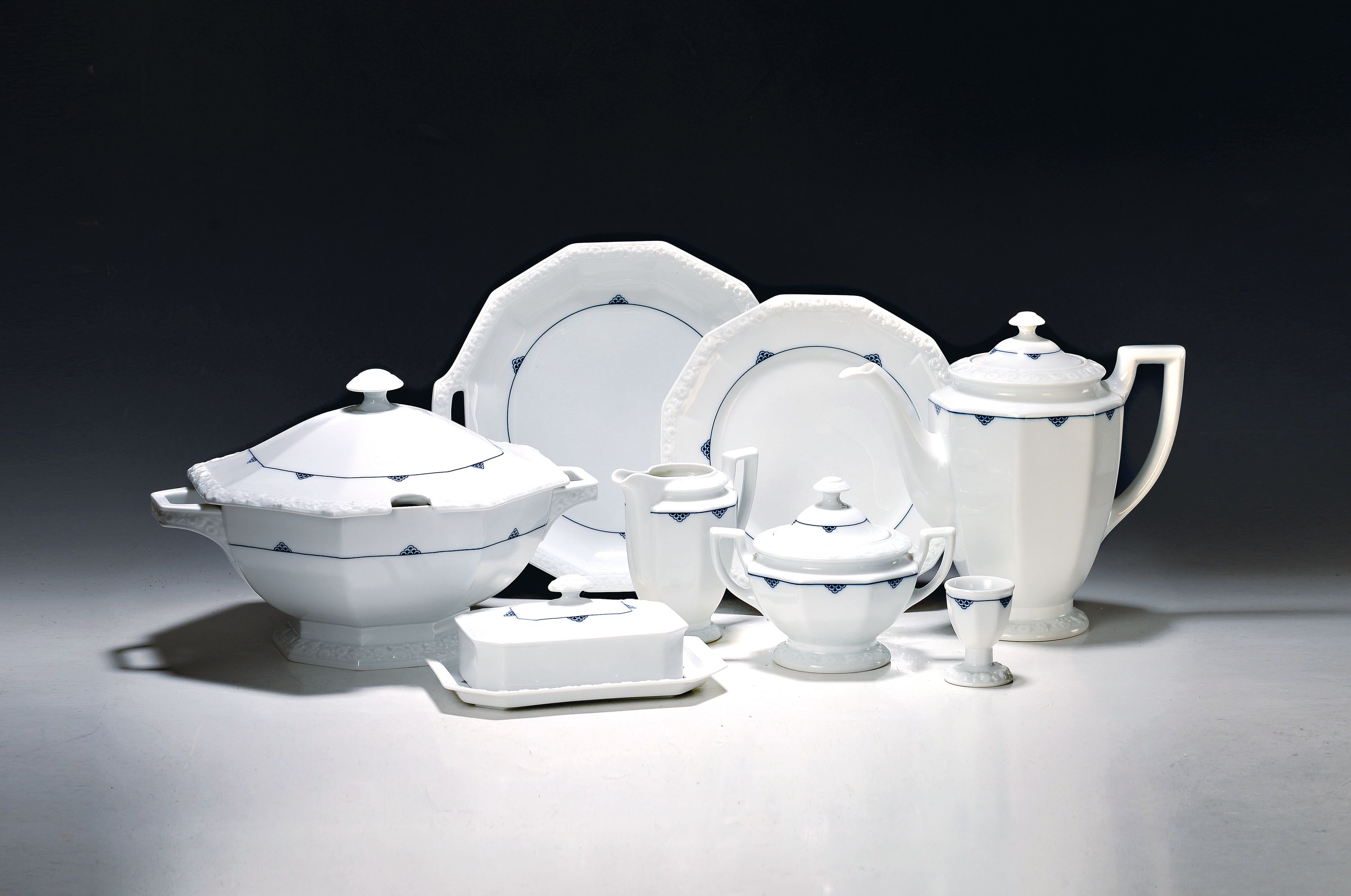 Maria dinner service with blue scale decoration, Rosenthal, 20th century, porcelain,