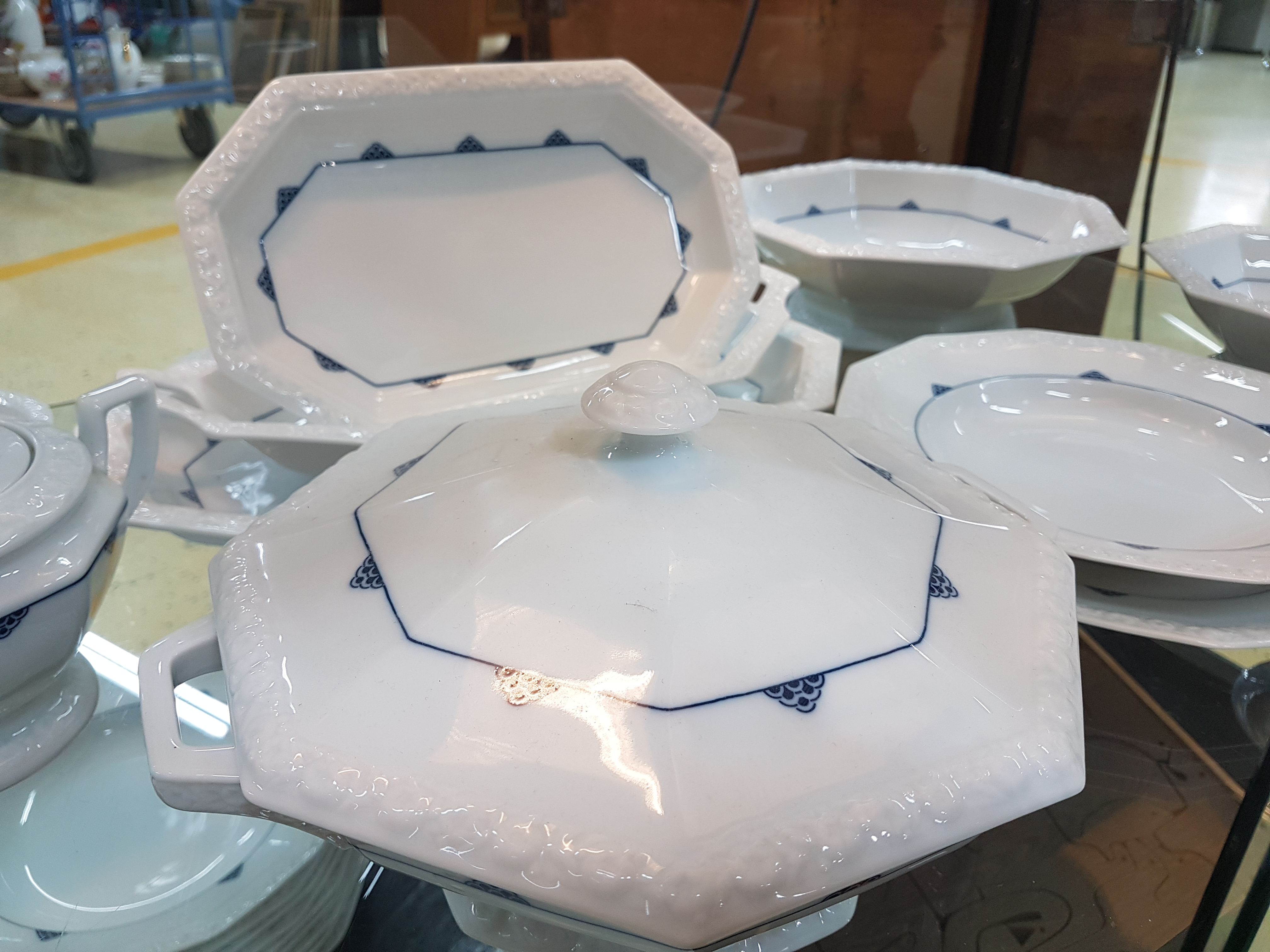 lidded tureen, lidded bowl, large and small. Side dish, 2 plates, large bowl, double