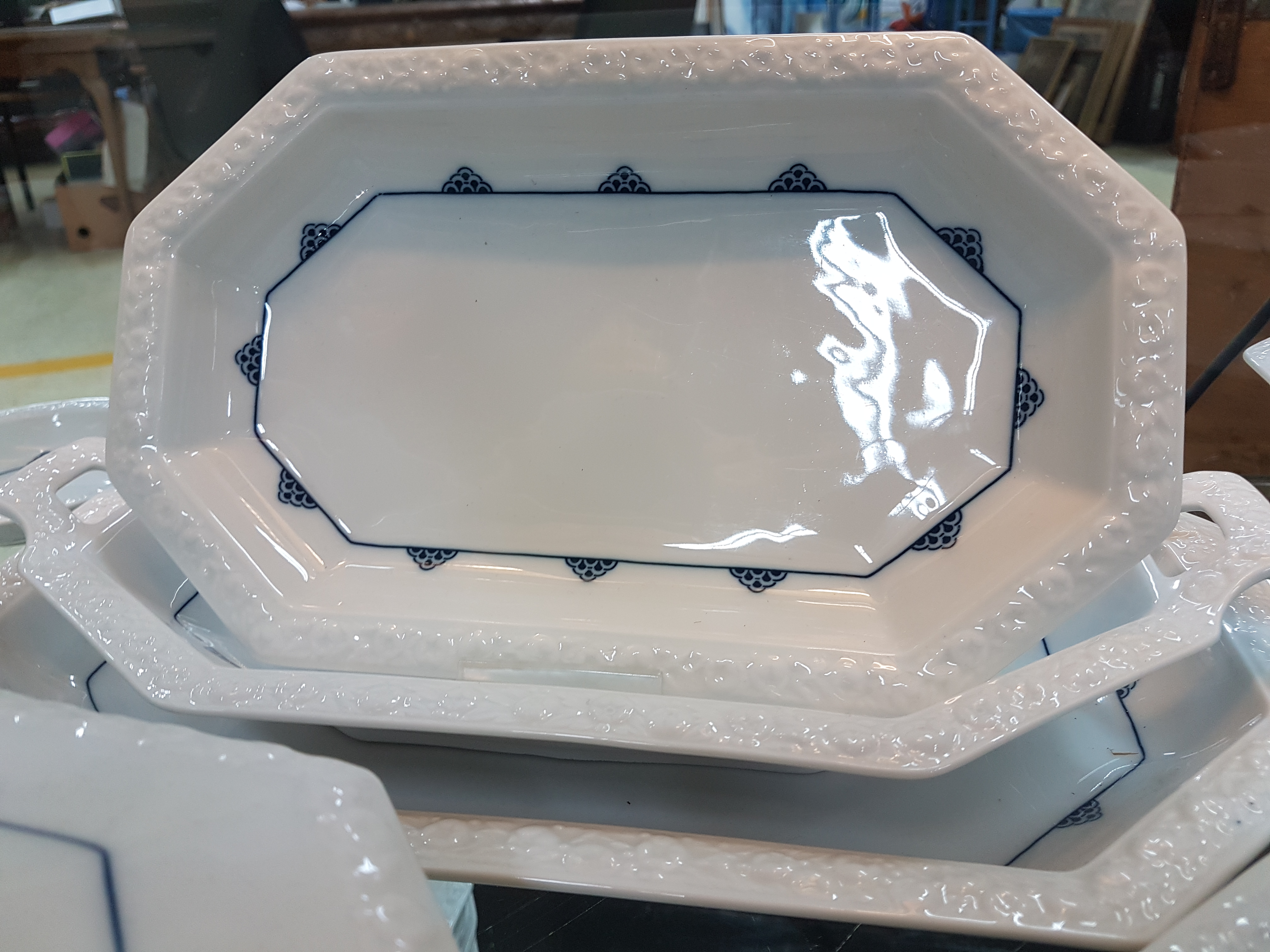 flag with relief decoration, 14 dinner plates D. 24.5cm, 10 soup plates D. 24.5cm,