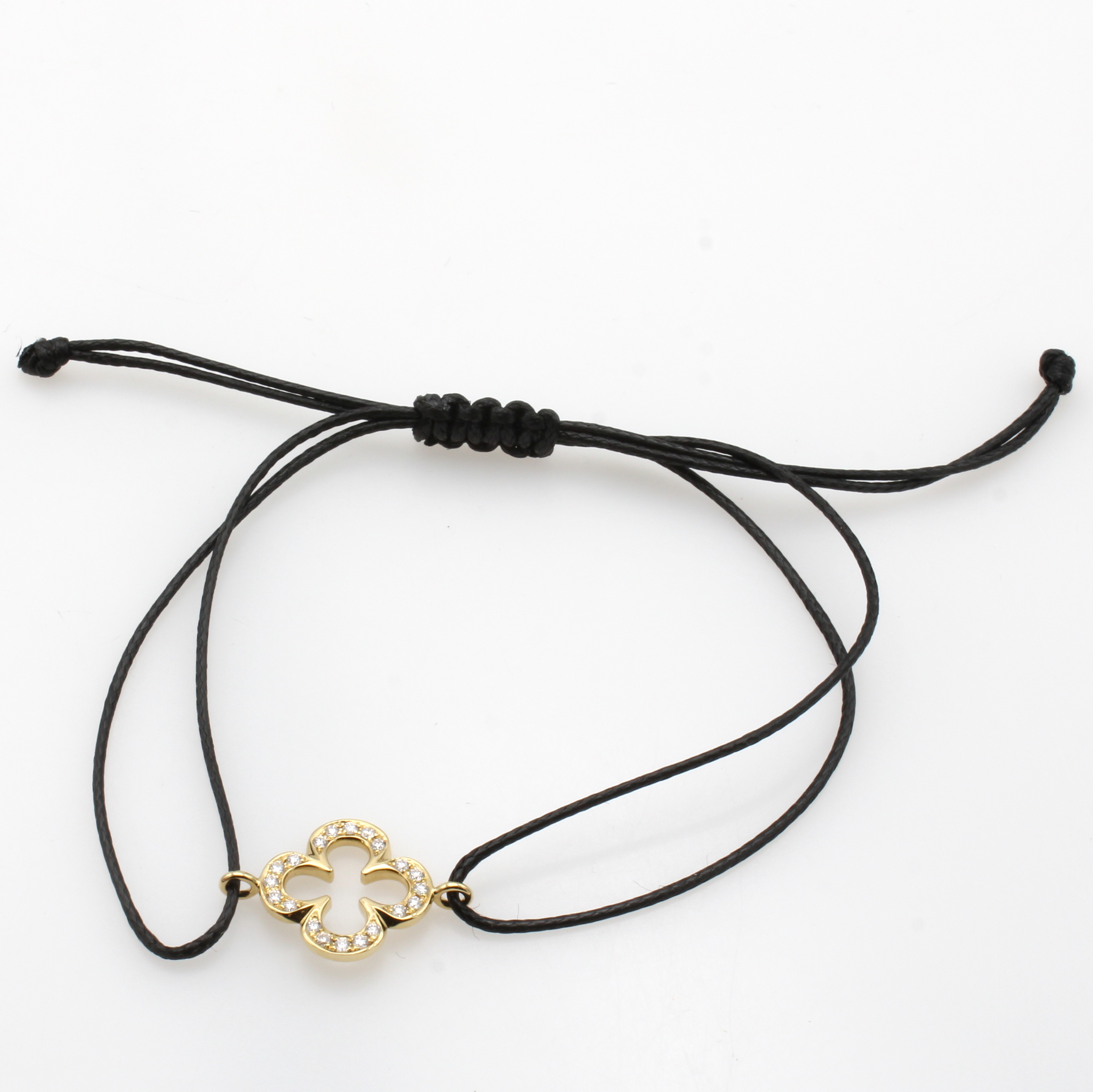 Armband aus schwarzem Stoff "Kleeblatt" mit Brillanten, GG 750/000, 20 Brill. zus. ca. 0.15 ct feines Weiß/si Schätzpreis: 1200, - EUR